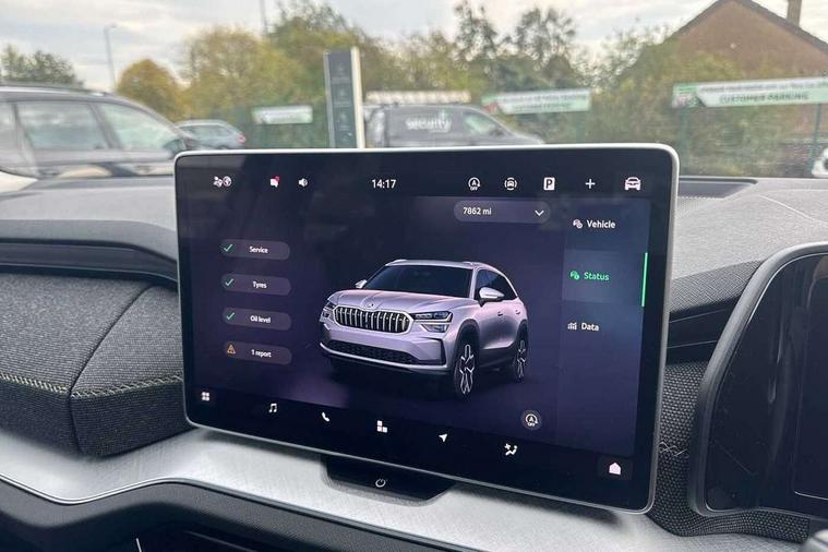 13" satellite navigation touchscreen display, Blind spot detection with door exit warning, Bluetooth system, ChatGPT functionality, Drive mode selector, Driver alert with fatigue sensor, Driver drowsiness alert system, Dry display cleaner, e call+, Front and rear parking sensors, Front cross traffic assist, Lane assist, PAS, Rear traffic assist, Rear view camera, Tailgate unlocking from outside, Traffic sign recognition, USB C Port x 2 in front centre console, Virtual Cockpit - 10.25" digital display, Voice control system, Wireless charging for two smartphones (15W) with cooling function, Wireless SmartLink for Apple CarPlay and Android Auto, Stop/start function, 2x USB-C in the rear, DAB Digital radio, Aero front windscreen wipers with intermittent function, All weather light, Auto dimming rear view mirror, Black wheel arch surrounds, Body colour bumpers, Body colour door mirrors and handles, Cornering light and poor weather light, Electric folding /adjustable/separted heated/folding door mirrors, auto dimming with boarding sports and memory function, Electric front and rear windows, Heat insulating glass in windshield, Heated rear window, Ice scraper in fuel tank cap, Invisible tailpipe, LED daytime running lights, LED rear fog light, LED third brake light in rear spoiler, Light assistant with automatic headlight control and coming home feature, Logo projection in door mirrors, Rear side wing doors, Rear spoiler, Rear window wiper, Safety reflectors on front and rear doors, Window control switches with black trim, Windscreen wipers with rain sensor, Without engine designation, 1.5l bottle holder points in all door, 12V socket in boot, 1x centre rear reading light, 2 seat bench in 3rd row, 3 configurable smart dials with 32mm coloured display, 3 seat bench in 2nd row, 4 foldable roof handles with rear coat hooks, Ambient interior lighting - Dashboard, front-door stowage compartments, front and rear door panels and footwell lighting, Automatic gear selector on steering wheel, Chrome interior door handles, Driver/front passenger reading lights, Fabric headlining, Fixed bench 40:60:40 split folding backrests, Front and rear floor mats, Front centre armrest with jumbo box storage compartment, cup holder and 12V socket, Front courtesy lights, Height adjustable front headrests, Isofix child seat fittings in outer rear seats and front passenger with top tether, Manually adjustable steering column, Pollen filter, Rear centre armrest with cupholders, Rear seat boot backrest release, Retractable luggage compartment cover, Single front passenger seat, Sliding trunk cover, Small Bags on the inner sides of the front backrests, Storage pocket including mobile phone pockets on the backs of the front seats, Sunvisors with illuminated vanity mirrors, Three rear height adjustable headrests, Ticket holder on A Pillar, Tri zone climate control, Umbrella in door panel x1 made from sustainable materials, Upper and lower glovebox with card holder and coin compartment, USB C port by rear view mirror for charging only (15W), Auto door release and activation of warning lights in the event of an accident, Driver and front passenger airbag with knee airbag and front passenger airbag deactivation, Electric child locks, Electronic parking brake, ESC (incl. ABS+EMD+MSR+ASR+EDL+HBA+DSR+RBS+ESBS+MCB+TSA+XDS), Front assist with braking reaction to vehicles, pedestrians and cyclists, Front disc brakes, Fuel cut off safety device, Height adjustable front 3 point seatbelts + pretensioners, Hill hold control, Junction assist with automatic emergency braking, Rear disc brakes, Safety vest holder in door, Seat belt reminder for all seats, Three point rear seat belts, Two tone horn, Tyre pressure monitor, Alarm with interior monitoring and tilt sensor with safe function, Anti-theft wheel bolts, Immobiliser, Remote central locking with 2 keys, Black decorative trims, Breakdown kit,