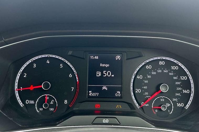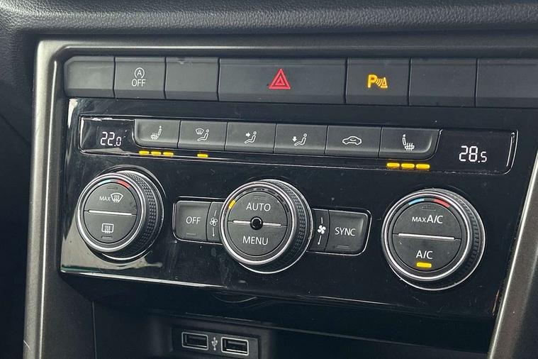 App-Connect, 'Lights On' Reminder warning buzzer, 2 USB connection charging sockets, Adaptive cruise control with front assist, radar sensor controlled distance monitoring, city emergency braking, Automatic start/stop system, Bluetooth telephone and audio connection for compatible devices, Car information display, Driver alert system with audible and visual fatigue detection system, Driver tips and journey analysis, Dusk sensor, Lane assist, Multifunction computer with visual gear change recommendation for fuel consumption, Service interval indicator, Think blue trainer driver tips and journey analysis, Warning sound and light for doors and tailgate open, Warning sound and light for front seatbelts unfastened, We Connect Go Dongle, Battery regeneration during braking, DAB Digital radio, Multi device interface (MDI) with USB connection, Music playback - MP3, WMA and AAC files, Premium USB cable in choice of either Apple or Android smartphone compatibility, SD card slot, Simultaneous pairing of 2 compatible mobile devices, SMS functionality - read, compose and send SMS messages using touch-screen display, Title and cover art display, Auto dimming interior rear view mirror, Automatic hazard lights activation under emergency braking, Black grained lower door protectors, Black grained wheel arches, Body colour door handles, Body colour sports bumpers with silver metallic underbody fascia, Body coloured door mirrors with integrated indicators, Chrome effect left and right trapezoid exhaust tailpipe fascia surround, Chrome trim on upper and lower radiator grille, Electrically foldable, adjustable and heated door mirrors with puddle lights and reverse activated kerb-view adjustment on passenger's door mirror, Front and rear electric windows, Front windscreen wiper with intermittent wipe and 4 position delay, Fully galvanised body, Heated rear window, High level 3rd brake light, LED rear number plate lights, Manual coming/automatic leaving home lighting function, Rain sensor, Rear tinted glass from B-pillar backwards approx 65% tinted, Rear wash/wipe with intermittent wipe setting, 12V socket in centre console storage area, 2 Front and rear reading lights incorporating LED technology, 3 rear head restraints, 4 load lashing points in luggage compartment, Ambient lighting in front footwell and light strips below trim in front doors, Climate control - 2 zone electronic air conditioning with automatic air recirculation and allergy filter, Drawer under drivers seat, Front centre armrest with storage compartment, longitudinal and height adjustable and two rear air vents, Front cupholders x 2, Front footwell illumination, Front seat back storage pockets, Glovebox, Height adjustable front seats, Height/reach adjust steering wheel, Illuminated vanity mirrors, Instrument lighting, white adjustable panel illumination, Interior light delay, Isofix easy fit child seat preparation for 2 outer rear seats, Load through provision with single cup holder when folded down, Luggage compartment cover, removable, Luggage compartment lighting, Split folding rear seat backrests with centre armrest, Storage compartment in left and right luggage area, Storage compartment in rear doors, Storage compartments in driver and front passenger doors, 3 rear three point seatbelts, ABS, Curtain airbags, Driver and front passenger safety-optimised head restraints, Drivers and front passengers airbags with passengers deactivation switch, Electronic parking brake with auto hold, Electronic stability control (ESC) includes ASR, EDL, EDTC and trailer stabilisation function, Front seat side impact airbags, Predictive pedestrian protection, Rigid safety cell with front and rear crumple zones, Three point height adjust front seatbelts + pretensioners, Tyre pressure loss indicator, Ventilated front and rear disc brakes, Volkswagen roadside assistance, Alarm with interior protection and deactivation via infotainment system, Electronic engine immobiliser, Remote central locking with 2 remote folding keys, Limestone grey decorative inserts in dash and door panel, Space and weight saver spare wheel,