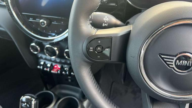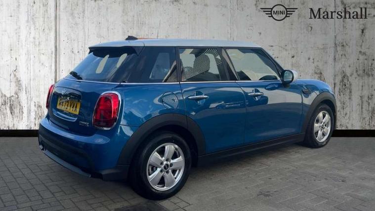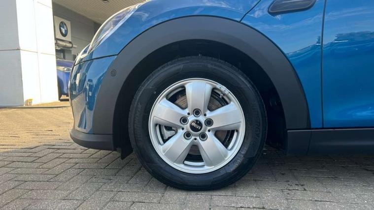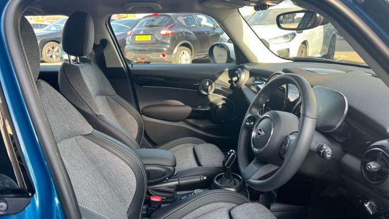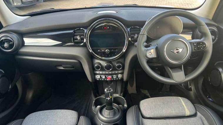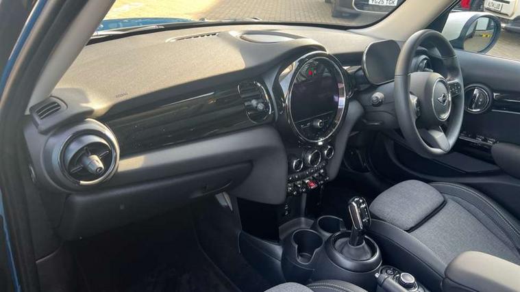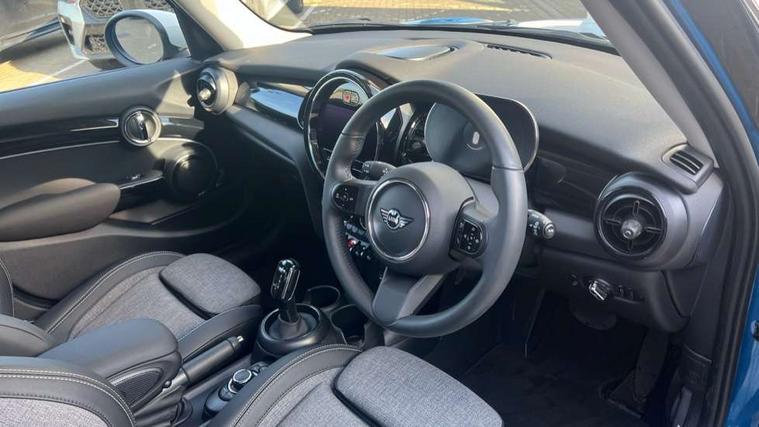 Apple CarPlay, Automatic start/stop function with brake energy recuperation, Compatible mobile phone bluetooth with audio streaming, Electro-mechanical speed dependant steering assistance, Flexible car sharing preparation, Mini E-call, MINI TeleServices, On board computer, Service interval indicator, Double Vanos system, Fully variable valve control, Gear change indicator display, High precision injection, Performance Control, Steptronic transmission with double clutch, 8.8" touchscreen with LED ring, FM tuner and DAB digital radio, 3rd brake light, Automatic headlight activation switch, Body colour fuel filler cap, Chrome border high gloss black slats radiator grille, Dynamic brake lights, Electric front+rear windows, Exhaust tailpipe on left with chrome finisher, Heated rear window, Heated windscreen washer jets, Metal door sill strips with MINI imprint, Model logo Cooper on right of tailgate, Rain sensor window wipers, Rear fog lights, Rear LED lights with union jack design, Rear side wing doors, Rear window wiper, Side scuttle panel with integrated indicator, Sun/heat protection glass, White indicator lenses, 12V Accessory socket in centre console, 3 seat bench in 2nd row, 4 lashing eyes in luggage compartment, 60/40 split folding rear seat, Ambient lighting, Carbon black colour line - Knee roll and door armrest, Chrome interior highlights, Cupholders, Front and rear head restraints, Front and rear isofix with front passenger airbag deactivation, Front and rear velour floor mats, Glove compartment, Height and length steering column adjustment, Interior lighting with 12 different colours across the dashboard, underneath door bezel with illuminated laser-engraved design on central display, Leatherette gearshift lever and handbrake gaiters, LED reading lights, vanity mirror lights, front foot well light and spotlight on front seats, Mechanical seat adjustment - forward/back & backrest for front seats and driver seat height adjust, Multifunction steering wheel, Satellite grey headlining including grab handles and clothes hooks, Single front passenger seat, Sport leather steering wheel with speed limiter and audio/communication controls, Storage compartments in doors, Sunvisors with vanity mirrors, 3 point seatbelts on all five seats, 6 Airbags - front, side, head and seat belt tensioners, Anti-lock braking system (ABS), Child locks on rear doors, DSC - Dynamic Stability Control, Front and rear disc brakes, Hill start assist, Single tone fanfare horn, Tyre pressure monitoring system, Alarm system with tilt sensor, monitoring doors, bonnet interior and tailgate, Electronic vehicle immobiliser, Start/stop toggle with keyless go, Piano black interior trim, Tool kit, Tyre repair kit,