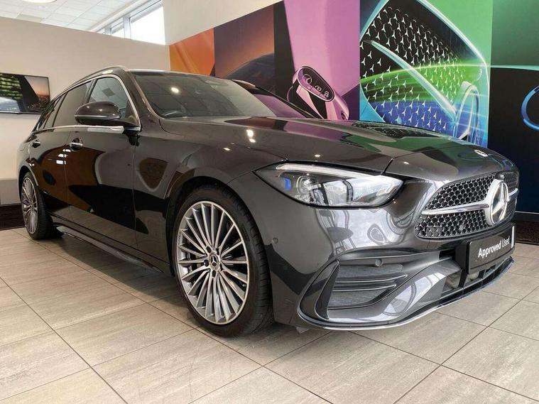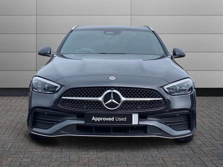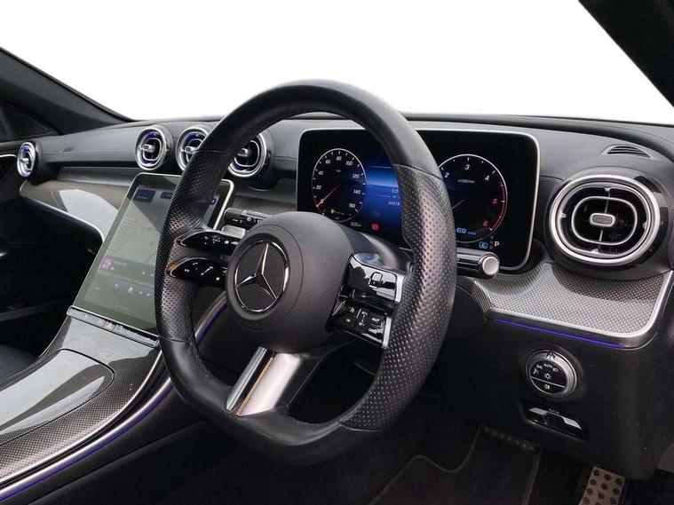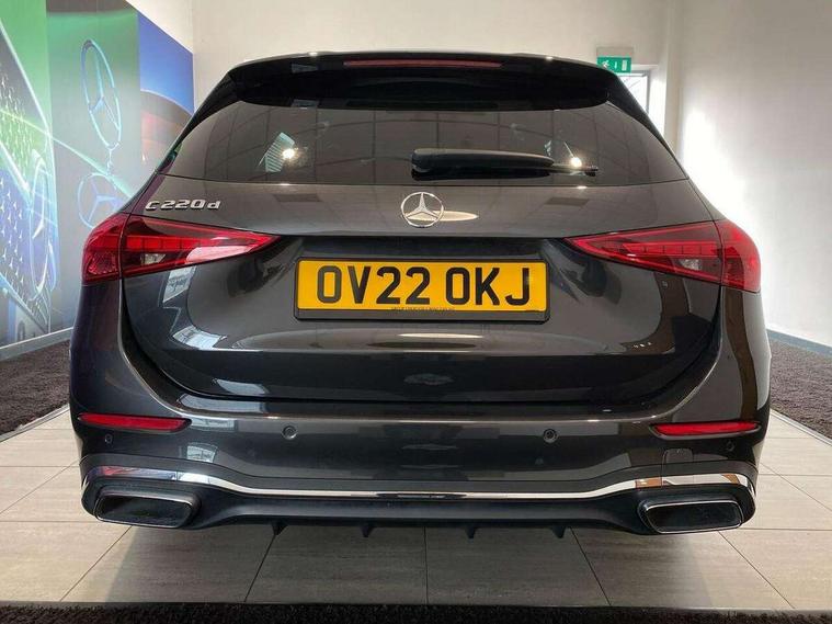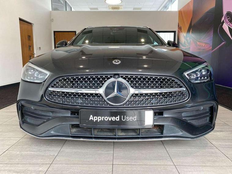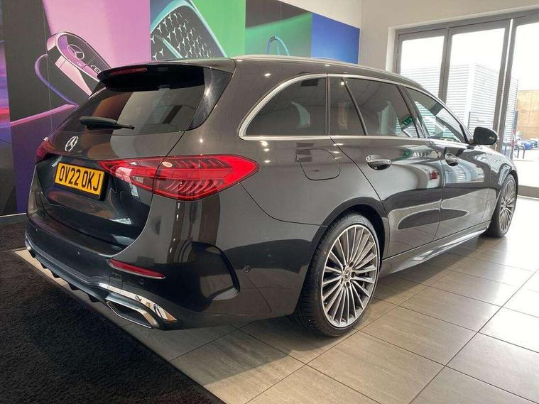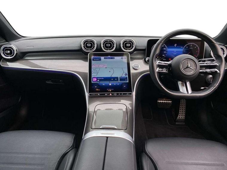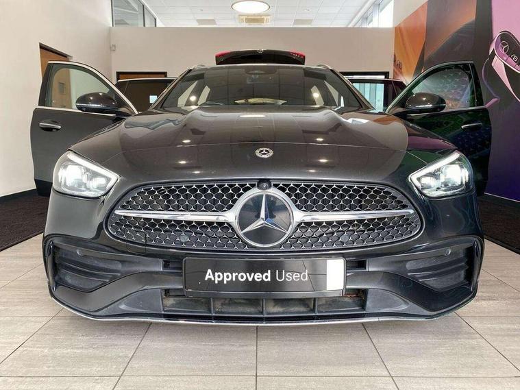 11.9" high resolution multimedia colour display, 12.3" digital instrument cluster display, Active blind spot assist, Active brake assist plus, Active lane keeping assist, AMG DYNAMIC SELECT with a choice of driving modes (Slippery, Comfort, Sport, Sport+, Individual), Attention assist, Cruise control with speedtronic variable speed limiter, E-call, Easy pack automatic powered tailgate, Extended MBUX functions, Finger print sensor, Fluorescent jacket for driver, MBUX augmented reality for navigation, MBUX navigation premium, MBUX voice control activated by keywords "Hey Mercedes", Mercedes connect me, Mercedes me remote services, Outside temperature gauge, Pre-installation for digital key transfer, Remote boot release, Service indicator (ASSYST), Smartphone integration, Sports direct steer speed sensitive steering, Status display for rear seat belts in instrument cluster, 66l fuel tank with increased capacity, 9G TRONIC 9 speed automatic transmission, Agility control sports suspension and lowered by 15 mm, Diesel particulate filter, DAB Digital radio, MBUX multimedia system, Adaptive brake lights, Adaptive high beam assist plus, AMG body styling front apron, rear apron and side skirts, AMG front bumper with sporty air intakes and chrome elements, AMG rear bumper with high gloss chrome elements, AMG side skirts in vehicle colour, B-pillar trim in glossy black, Body coloured bumpers, Body coloured door mirrors, Chrome beltline trim, Chrome roof rails, Daytime running lights, Digital light LED headlamps, Electric windows with one touch opening/closing and obstruction sensors, Electrically adjustable and heated door mirrors, Green tinted glass, LED Indicators, LED tail lights, LED third brake light, Powerdomes on bonnet, Privacy glass, Radiator diamond grille with integrated Mercedes Benz star and louvre silver with chrome pins, Radio aerial integrated into rear window, Rain sensor with automatic windscreen wiper activation, Rear side wing doors, Rear wiper, Two visible exhaust pipes integrated into rear bumper, 3 spoke flattened bottom AMG multifunction steering wheel in black nappa leather with chrome inserts and perforated leather in grip area, 40:20:40 split folding rear bench seat, AMG Leather upholstery, AMG sports seats, Audio and onboard settings control on multifunction steering wheel, Auto Mercedes-Benz child seat recognition sensor, Black air vents with silver chrome elements, Black floor mats with AMG lettering, Black roof liner, Door trim elements high gloss black with silver chrome surroundings and switches, Double cupholder in centre console, Electrically height/reach adjustable steering column, Folding rear seat backrest, Front and rear head restraints, Front centre armrest with storage compartment, Gearshift paddles on steering wheel, Heated front seats, Illuminated door sills with Mercedes Benz lettering, Illuminated glove compartment stowage, Interior lighting - 64 colour Ambient lighting, Load compartment cover, Overhead control unit in high gloss black, Rear top tether child seat ISOFIX attachment, Single front passenger seat, Sports pedals with stainless steel surfaces and rubber studs, Sunvisors with illuminated vanity mirrors, THERMATIC 2 zone automatic climate control, Interior lighting package - C Class, Memory package - C Class, Mirror pack - C Class, Parking package with 360 degree camera - C Class, Seat comfort pack - C Class, Stowage space pack - C Class, USB package - C Class, 3 rear 3 point seatbelts, Active bonnet pedestrian safety measure which detects an impact and raises bonnet, Adaptive brake system with HOLD function and brake drying in the wet, Anti-lock braking system (ABS), Black seat belts, Brake calipers with Mercedes-Benz lettering + perforated front brake discs, Child proof door locks, Drivers knee airbag, Drivers pelvis airbag, Dual stage driver/passenger airbags, Electric parking brake, Electronic Stability Programme (ESP), Front centre airbag between driver and front passenger seats, Front side airbags, Larger brake discs on front axle, Rear passenger airbag, Rear seatbelt warning indicator, Sports braking system with perforated front disc brakes, Tyre pressure monitoring system, Warning triangle and first aid kit, Window airbags, Central locking with interior switch, automatic locking and crash sensor with emergency opening function, Chrome surround electric key, Keyless Go, URBAN GUARD vehicle protection (Thatcham Category 1) consisting of break-in, anti-theft alarm system (ATA), interior monitoring and tow-away protection, Artico man-made leather dashboard with contrast stitching, Centre console trim in metal weave, 19" AMG multi spoke design alloy wheels painted in black with high sheen finish, Summer tyres, TIREFIT with tyre inflation compressor,