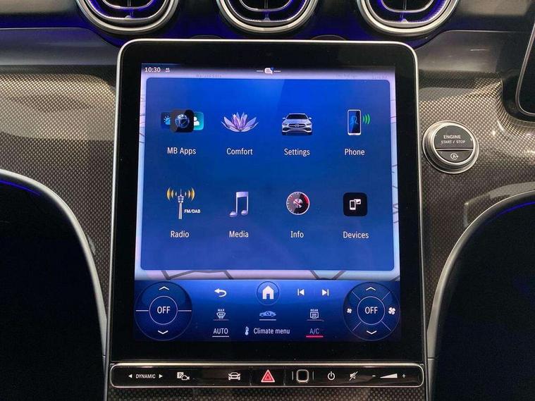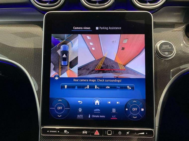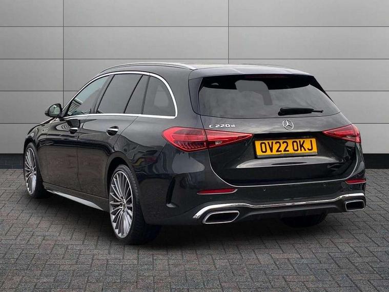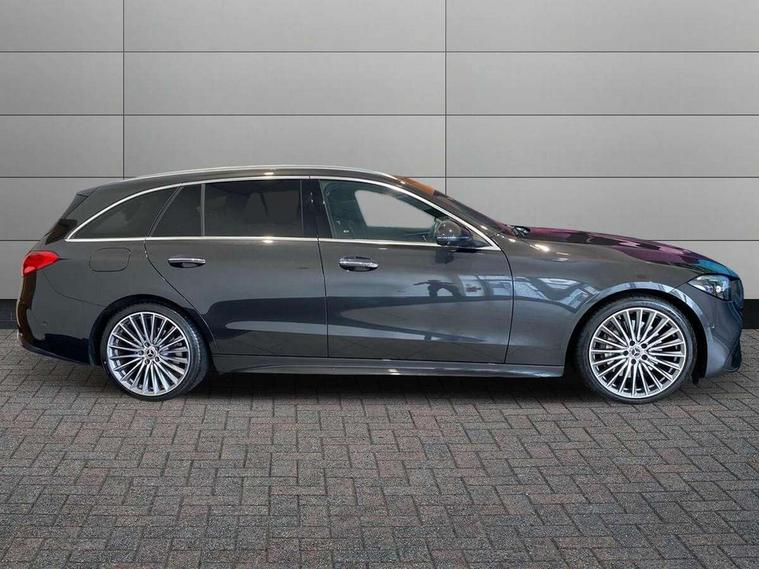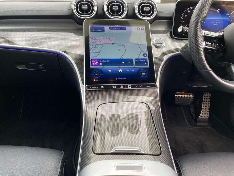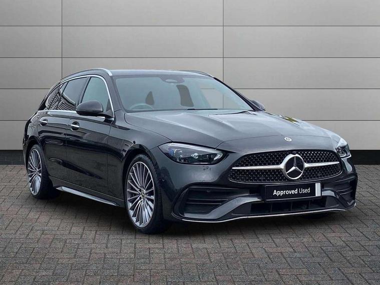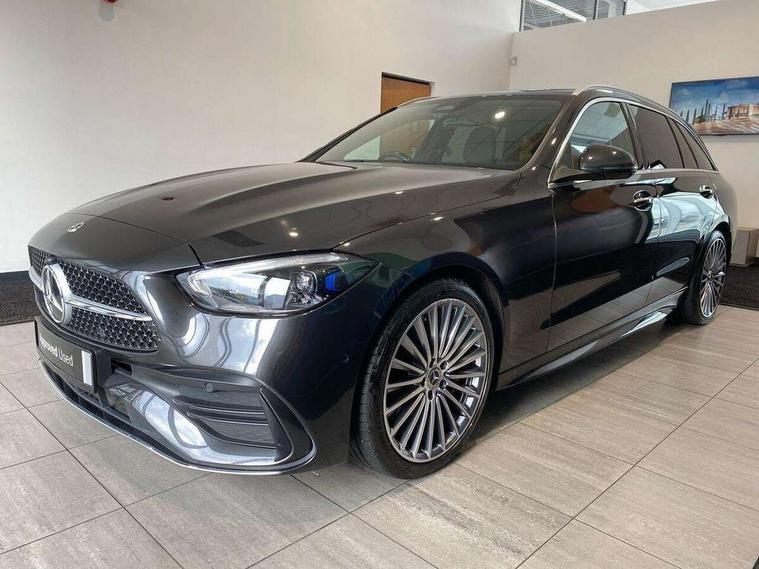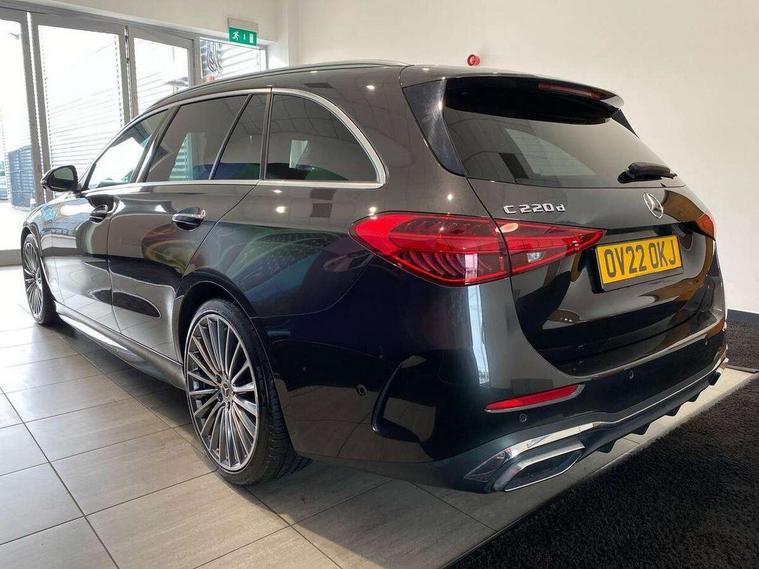 11.9" high resolution multimedia colour display, 12.3" digital instrument cluster display, Active blind spot assist, Active brake assist plus, Active lane keeping assist, AMG DYNAMIC SELECT with a choice of driving modes (Slippery, Comfort, Sport, Sport+, Individual), Attention assist, Cruise control with speedtronic variable speed limiter, E-call, Easy pack automatic powered tailgate, Extended MBUX functions, Finger print sensor, Fluorescent jacket for driver, MBUX augmented reality for navigation, MBUX navigation premium, MBUX voice control activated by keywords "Hey Mercedes", Mercedes connect me, Mercedes me remote services, Outside temperature gauge, Pre-installation for digital key transfer, Remote boot release, Service indicator (ASSYST), Smartphone integration, Sports direct steer speed sensitive steering, Status display for rear seat belts in instrument cluster, 66l fuel tank with increased capacity, 9G TRONIC 9 speed automatic transmission, Agility control sports suspension and lowered by 15 mm, Diesel particulate filter, DAB Digital radio, MBUX multimedia system, Adaptive brake lights, Adaptive high beam assist plus, AMG body styling front apron, rear apron and side skirts, AMG front bumper with sporty air intakes and chrome elements, AMG rear bumper with high gloss chrome elements, AMG side skirts in vehicle colour, B-pillar trim in glossy black, Body coloured bumpers, Body coloured door mirrors, Chrome beltline trim, Chrome roof rails, Daytime running lights, Digital light LED headlamps, Electric windows with one touch opening/closing and obstruction sensors, Electrically adjustable and heated door mirrors, Green tinted glass, LED Indicators, LED tail lights, LED third brake light, Powerdomes on bonnet, Privacy glass, Radiator diamond grille with integrated Mercedes Benz star and louvre silver with chrome pins, Radio aerial integrated into rear window, Rain sensor with automatic windscreen wiper activation, Rear side wing doors, Rear wiper, Two visible exhaust pipes integrated into rear bumper, 3 spoke flattened bottom AMG multifunction steering wheel in black nappa leather with chrome inserts and perforated leather in grip area, 40:20:40 split folding rear bench seat, AMG Leather upholstery, AMG sports seats, Audio and onboard settings control on multifunction steering wheel, Auto Mercedes-Benz child seat recognition sensor, Black air vents with silver chrome elements, Black floor mats with AMG lettering, Black roof liner, Door trim elements high gloss black with silver chrome surroundings and switches, Double cupholder in centre console, Electrically height/reach adjustable steering column, Folding rear seat backrest, Front and rear head restraints, Front centre armrest with storage compartment, Gearshift paddles on steering wheel, Heated front seats, Illuminated door sills with Mercedes Benz lettering, Illuminated glove compartment stowage, Interior lighting - 64 colour Ambient lighting, Load compartment cover, Overhead control unit in high gloss black, Rear top tether child seat ISOFIX attachment, Single front passenger seat, Sports pedals with stainless steel surfaces and rubber studs, Sunvisors with illuminated vanity mirrors, THERMATIC 2 zone automatic climate control, Interior lighting package - C Class, Memory package - C Class, Mirror pack - C Class, Parking package with 360 degree camera - C Class, Seat comfort pack - C Class, Stowage space pack - C Class, USB package - C Class, 3 rear 3 point seatbelts, Active bonnet pedestrian safety measure which detects an impact and raises bonnet, Adaptive brake system with HOLD function and brake drying in the wet, Anti-lock braking system (ABS), Black seat belts, Brake calipers with Mercedes-Benz lettering + perforated front brake discs, Child proof door locks, Drivers knee airbag, Drivers pelvis airbag, Dual stage driver/passenger airbags, Electric parking brake, Electronic Stability Programme (ESP), Front centre airbag between driver and front passenger seats, Front side airbags, Larger brake discs on front axle, Rear passenger airbag, Rear seatbelt warning indicator, Sports braking system with perforated front disc brakes, Tyre pressure monitoring system, Warning triangle and first aid kit, Window airbags, Central locking with interior switch, automatic locking and crash sensor with emergency opening function, Chrome surround electric key, Keyless Go, URBAN GUARD vehicle protection (Thatcham Category 1) consisting of break-in, anti-theft alarm system (ATA), interior monitoring and tow-away protection, Artico man-made leather dashboard with contrast stitching, Centre console trim in metal weave, 19" AMG multi spoke design alloy wheels painted in black with high sheen finish, Summer tyres, TIREFIT with tyre inflation compressor,