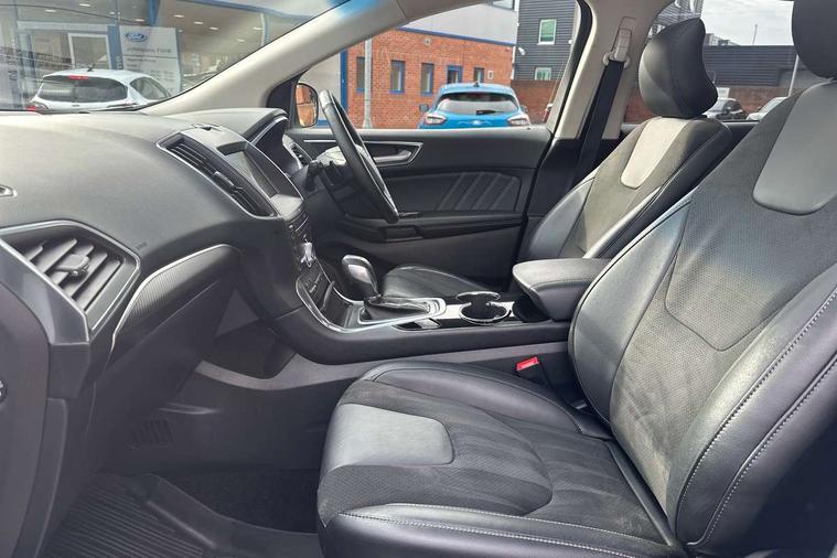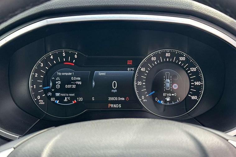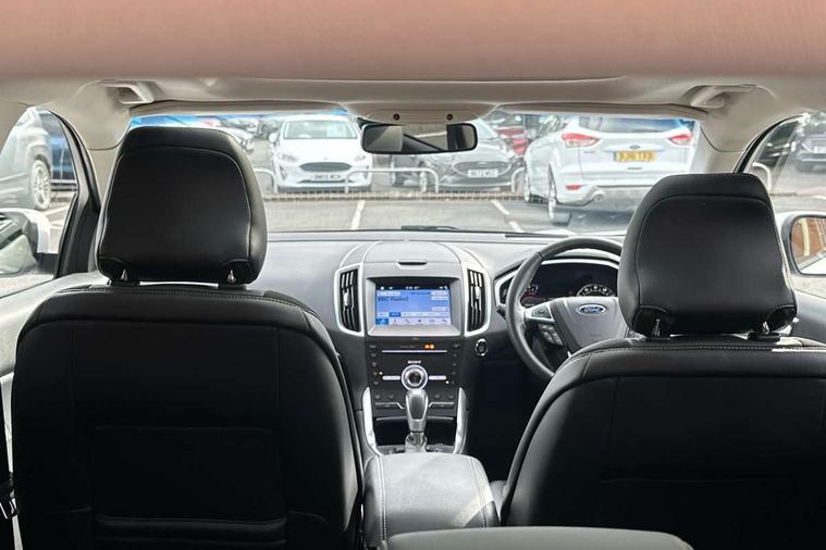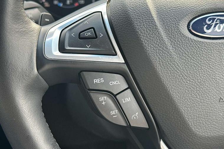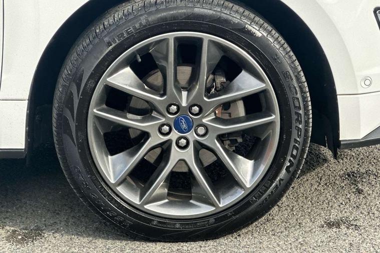 Adaptive steering, Bluetooth connectivity with voice control, Easy fuel capless refuelling system, Ford SYNC 3 with 8" colour touch screen, Front and rear parking sensors, Intelligent speed assist, Lane keep assist, PAS, Rear view camera, Service indicator, Sony DAB Audio and navigation system with 12 speakers, SYNC Emergency Assistance, TFT cluster screen, Traffic sign recognition, Trip computer, Sports suspension, Auxiliary input socket, USB/iPod connection, Acoustic laminated side glass, Auto dimming rear view mirror, Auto high beam, Automatic front windscreen wipers, Automatic headlights, Automatic low beam headlights, Body colour lower mouldings, Body styling kit, Chrome grille trim, Dark tinted rear privacy glass, Electric door mirrors + memory, Electric folding door mirrors with puddle lamps, Electric front windows, Front fog lights, LED rear lights, Power windows with global open/close, Quickclear heated windscreen, Rain sensor windscreen wipers, Rear spoiler, Rear wiper, 10 way driver/8 way passenger electrically power adjustable seats with driver memory, 220v power socket, Air conditioning + Dual Electronic Automatic Temperature Control, Alloy pedals, Ambient lighting, Centre console with armrest/storage box + cupholder, Folding rear seats, Front and rear velour floor mats, Heated front sports seats, Height/reach adjust steering wheel, Illuminated scuff plates, Isofix child seat attachment, Leather steering wheel and gear knob, Leather/Dinamica upholstery, LED reading lights, Lumbar support, Rear headrests, 3x3 point rear seatbelts, ABS, Active city stop, Curtain Airbag, Driver airbag, Electronic parking brake, ESP, Front passenger airbag, Rear airbags, Side airbags, Traction control, Tyre pressure monitoring system, Immobiliser, Keyless entry system with handsfree boot opening + electric power tailgate, Keyless Start, Thatcham Cat.1 alarm, 20" Platinum Grey Alloy wheels, Mini steel spare wheel,