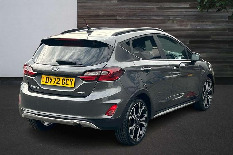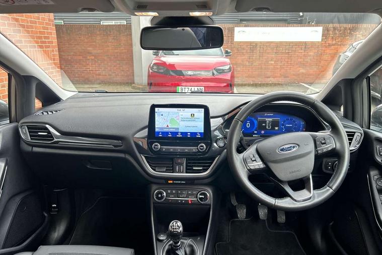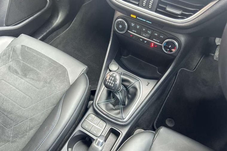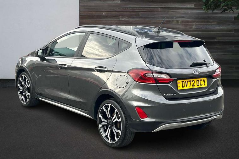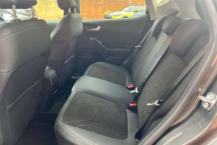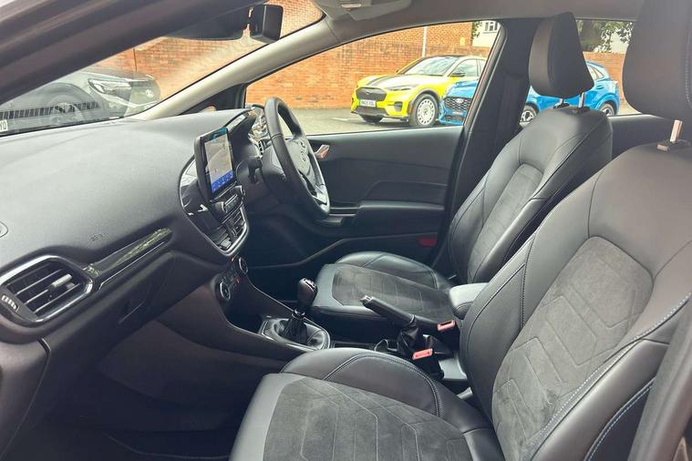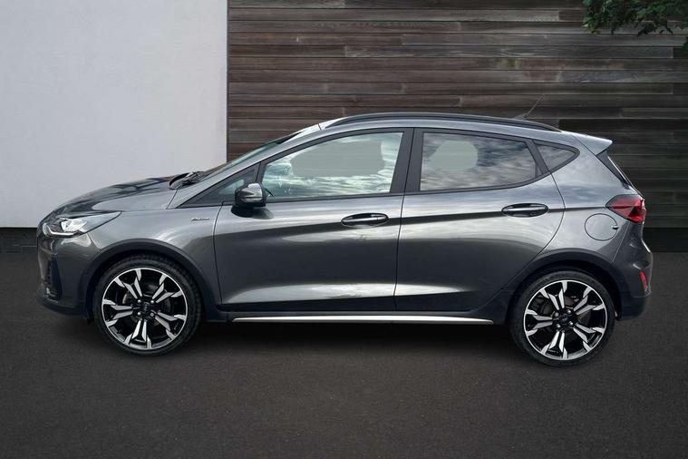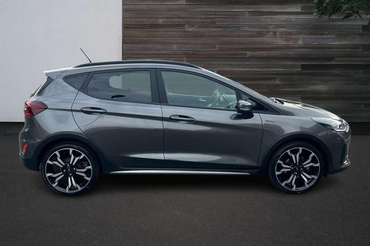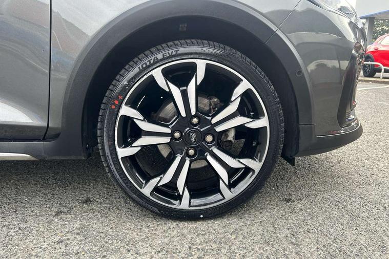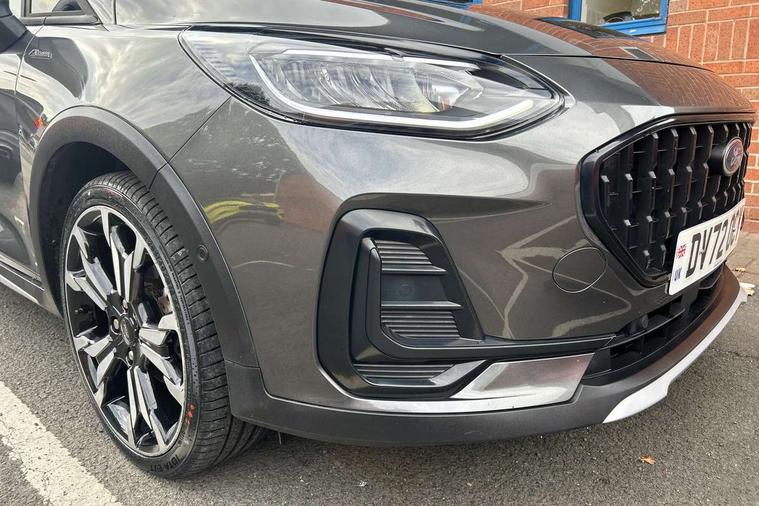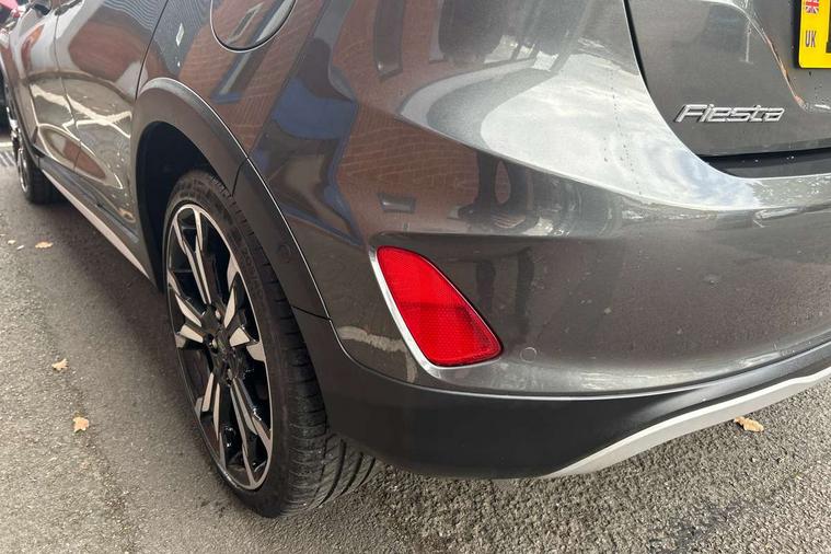 4.2" TFT instrument cluster screen, Bluetooth system, Electric power steering, Extra selectable drive modes ( Trail, Slippery), Ford easy fuel, Rear parking distance sensors, Selectable drive modes (Normal, Sport, Track), Traffic sign recognition, Trip computer, Rough road suspension with increased ride height adjust, 2 USB ports, Auxiliary input socket, B&O Premium audio system with 8" touchscreen, 10 speakers, 360 degree sound system, Ford SYNC 3 navigation system and Ford pass connect, DAB Digital radio, Steering wheel mounted controls, Auto high beam, Body colour bumpers, Body colour door handles, Body colour rear spoiler, Chrome beltline trim, Cornering front fog lights, Electric front windows/one touch facility, Electric rear windows, LED Night signature to rear lights, Mesh design front grille with chrome surround, Power foldable door mirrors with puddle lights, Quickclear heated windscreen, Rain sensing wipers and auto dimming rear view mirror, Rear privacy glass, Rear wiper, Rugged body styling kit with active front wing badges, 3 spoke leather trimmed steering wheel with audio control, 60/40 split folding rear seat, Adjustable head restraints, Boot carpet, Centre console with opening armrest, 2x cupholders, 12v and USB, Chrome inner door handles, Drivers and Passenger lumbar support, EATC - Electronic Auto Temperature control, Footwell illumination, Front floor mats in velour, Front map reading lights, Front seat and rear pockets, Height adjustable passenger seat, Illuminated glovebox, Leather gaiter, LED ambient lighting, Load area light, Manual 4-way driver seat adjust, Overhead console with sunglasses holder, Pollen filter, Rake/reach adjustable steering wheel, Sensico partial premium upholstery, Sensico wrapped steering wheel, NCAP Pack - Fiesta, 3 point seatbelts on all rear seats, ABS+EBA, Curtain airbags, Driver and passenger airbags, Drivers knee airbag, Electronic stability control with hill start assist, Front passenger airbag deactivation, Front side airbags, Seatbelt warning, Two tone horn, Tyre pressure monitoring system, Ford keyfree system with Keyless entry and keyless start, MyKey system, Remote central locking & engine immobiliser, Thatcham Cat.1 alarm, 18" 5 spoke alloy wheels with shadow black machined finish,
