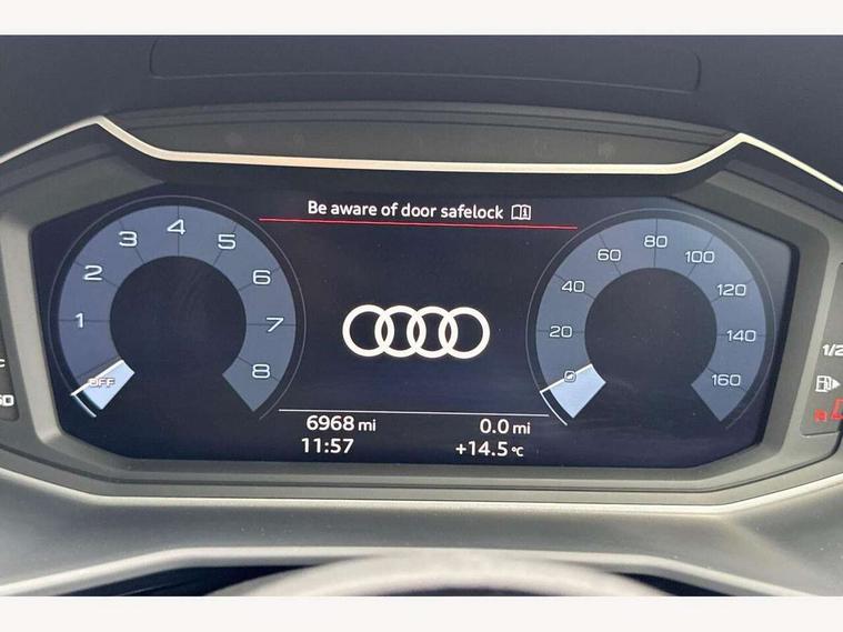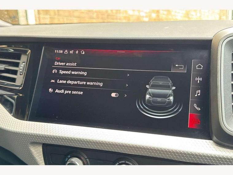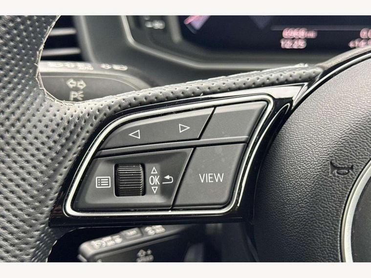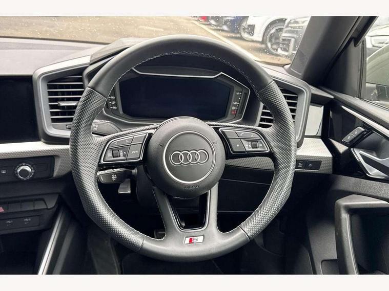 10.25" Digital instrument cluster display classis style instrument dials + speed, odometer, time, outside temperature, telephone menu + fuel level warning, Advanced driver attention and drowsiness monitor, Audi remote connect and control, Audi smartphone interface, Bluetooth interface, Camera based traffic sign recognition, Cruise control, Driver's information system, Electromechanical power steering, Emergency e-call, Lane departure warning system, Rear parking sensor, Service interval indicator, Speed limiter, Start stop system with recuperation, Voice control system, Washer fluid level indicator, Sports suspension, 2 x USB type C connection points, 6 loudspeakers, DAB Digital radio, MMI radio plus with 10.1" colour MMI display screen and MMI touch, Auto dimming rear view mirror, Body coloured door mirrors, Door sill trims with aluminium inlays and S line logo in front, Electric front and rear windows, Electrically adjustable, heated, folding door mirrors with integrated LED side indicator, Front side air inlets in grained matt black and C frame in anthracite black, Headlight cleaning system, Heat insulating glass windscreen and side windows, Heated rear windscreen, High level LED brake light, LED daytime running lights, LED headlights with range control LED rear lights + dynamic rear indicators, Privacy glass, Radiator grille and rear diffuser in matt anthracite black, Radiator protective grille frame in matt aluminium silver, Rain and light sensors, Rear fog lights, Rear side wing doors, Rear wiper, S line badges on front wings, Side front spoiler lips in grained matt black, 12V socket in centre console with two cup holders, 3 rear seats with headrests, 3 seat bench in 2nd row, 3 spoke leather multi-function plus steering wheel features S badging and grips in perforated leather with contrast stitching, 40:60 Split folding rear seat or fully collapsed, Black cloth headlining, Black velour floor mats, Front and rear velour black floor mats with contrast stitching in fine silver, Front head restraints, Front passenger seat, Height and reach adjustable steering wheel, Interior lighting includes roof module, front and rear reading lights and right luggage compartment lighting, ISOFIX child seat mounting for front passenger and outer rear seats including top tether attachment point of outer rear seats, Leather gear knob with aluminium trim, Leather handbrake grip, Manual air conditioning, Manual height adjustable for driver and front passenger seat, Manually adjustable lumbar support in front seats, Stainless steel pedals, Ambient lighting package - A1, Luggage compartment pack - A1, S line exterior styling pack - A1 Sportback, 3x3 point rear seatbelts, Audi pre-sense front with pedestrain and cyclist recognition, Brake assist function, Driver and front passenger airbag with front side and head airbags, Electronic Stability Control including ABS, EBD, ASR and EDL, Front passenger airbag deactivation switch, Hill hold assist, Manual rear child locks, Seatbelt height adjustment for front seats, Seatbelt monitoring, Tyre pressure loss indicator, Warning triangle and first aid kit, Anti theft alarm, Anti theft wheel bolts, Immobiliser, Remote control key with safelock, Aluminium trim for control switches, air vents and digital instrument cluster, Black dashboard, Silver grey inlays polygon structure in diamond paint finish, Structured grey accent surfaces insert of air vents, interior door handle recesses and centre console in quartz paint finish,