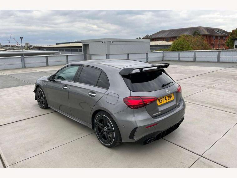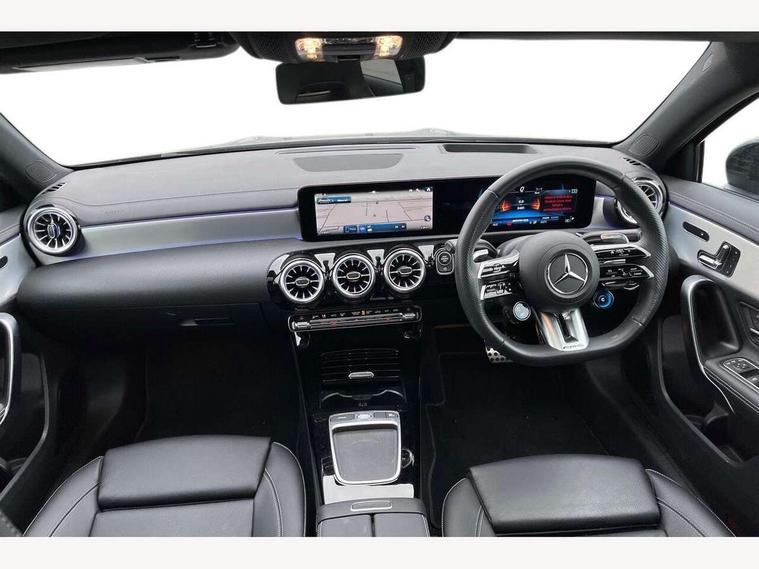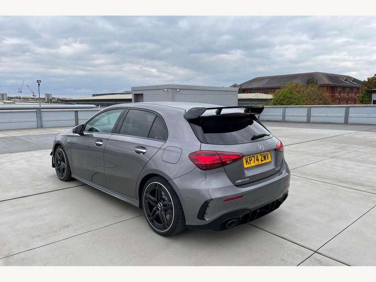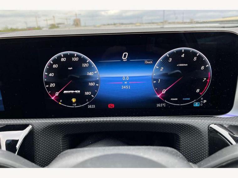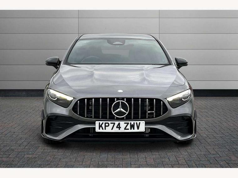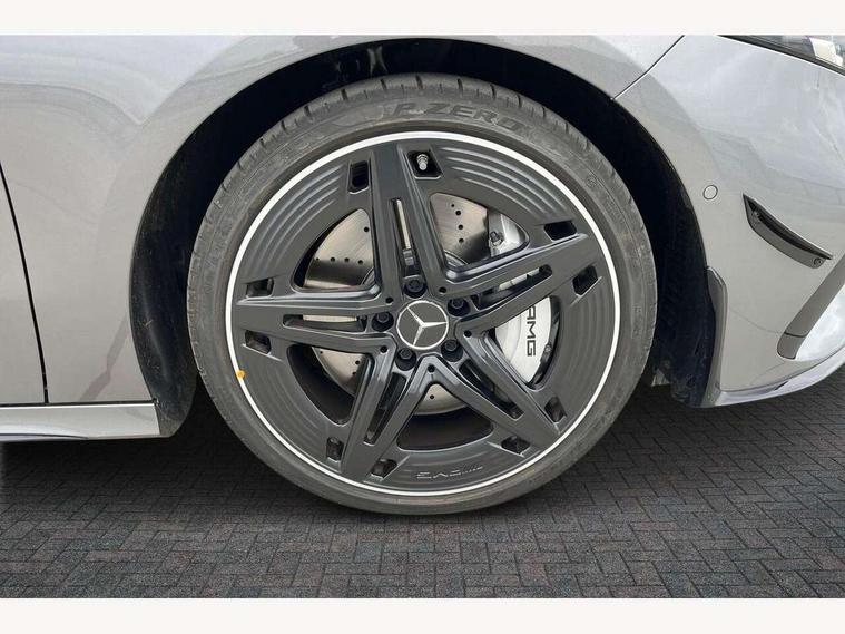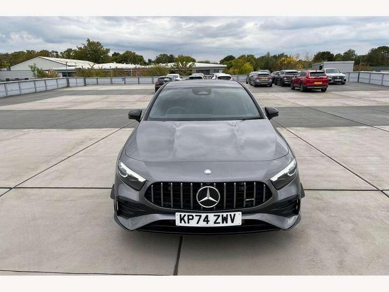 10.25 inch touchscreen central media display, 10.25" Digital instrument cluster display screen, Attention assist, Brake pad wear indicator warning light, Car wash mode, Direct steering, Direction indicators with lane change function, Dual bluetooth interfaces, DYNAMIC SELECT with driving programs (Slippery, Comfort, Sport, Sport+ and Individual), Easy pack tailgate hands-free access, ECO start/stop function, Engine start/stop button, Fingerprint scanner, Fluid level warning indicator for fuel, oil, coolant and washer fluid, Fluorescent jacket for driver, Hard-disk navigation, Head up Display, Hey Mercedes Voice activation, Lamp failure indicator, MBUX augmented reality for navigation, MBUX Interior assistant, Mercedes me connect including emergency call system, accident recovery, breakdown and maintenance management, Mercedes me remote services, Outside temperature gauge, Owners manual in English, Pre-installation of private car share, Preinstallation for Mercedes Benz link, Remote boot closing, Service indicator (ASSYST), Smartphone integration with Apple CarPlay and Android auto, Speed sensitive power steering, Tailgate, Traffic sign assist, Trip computer in multifunction display with current consumption indicator, Wireless charging, AMG suspension, Suspension with adaptive damping system, DAB Digital radio, MBUX multimedia system, Mercedes Benz advanced sound system (225 W) with 10 speakers, 1 central speaker, speakers on doors, a tweeter on door, one sub woofer + boost amplifier, 4 Electric Front and Rear windows, Adaptive brake lights, AMG body styling - AMG front apron with front splitter and AMG rear apron and visible exhaust tailpipe trim elements, AMG Front apron with flics as air deflector elements on the outer air intakes, AMG radiator grille with twin blade lamella and AMG Lettering, AMG Rear apron with specific diffuser look with four vertical fins and two round chrome plated tailpipe trim elements with a diameter of 90 mm, AMG spoiler lip on roof, Beltline strips in High gloss Black, Body colour bumpers, Body colour door handles with chrome inserts, Body colour side skirt, Electric adjustable and heated door mirrors with integrated LED side indicators, Front splitter and trim elements on the louvres in the outer air inlets, Front wings wheel arches with TURBO 4MATIC lettering, Headlamp assist automatic headlamp activation, Heat insulating dark tinted rear and rear side windows, Heated glass rear windscreen + timer control, LED daytime running lights, LED High level third brake light, LED tail lamp, Multibeam LED headlamps with adaptive highbeam assist and cornering function, Panoramic sliding sunroof, Privacy glass, Radio aerial, Rain sensing windscreen wipers with two sensitivity settings, Rear fog lights, Rear side wing doors, Rear windscreen wiper, Surround lighting with logo projection, Wider wheel arches for AMG wheels, Window line trim strip in black, 3 seat bench in 2nd row, 40:20:40 split folding rear seats, Air conditioning - Two zone thermotronic luxury automatic climate control with display, AMG floor mats, AMG Performance steering wheel in nappa leather, Automatic child seat recognition sensor, Black air vents with surround in silver chrome, Black roof lining, Brushed stainless steel sports pedals with rubber studs, Electrically adjustable front memory seats including lumbar support and backrest inclination, Front centre armrest with stowage, Front seat backs luggage nets, Height/reach adjustable steering column, Illuminated AMG front door sills with changeable cover, Interior lighting - 64 colour Ambient lighting, Interior mirror with reading lamps in black and frameless, Rear armrest with 2 cupholders, Seat occupancy sensor for front passenger seat, Silver coloured aluminium gear shift paddles on steering wheel, Single front passenger seat, Sports seats with integrated headrests, Stowage compartment in centre console with retractable cover, Sunvisors with illuminated vanity mirrors, Twin front cupholders, Aerodynamic pack - A Class, AMG night pack - A Class, Light and sight package - A Class, Mirror package - A Class, Parking pack with 360 degree camera - A Class, Seat comfort pack - A Class, USB pack plus - A Class, Winter pack - A Class, 3 rear 3 point seatbelts, ABS with Brake Assist, Active bonnet, Adaptive brake assist with hold function and hill start assist, Black seatbelts, Bonnet with power domes, Childproof locks manually operated for rear doors and electrically operated for rear power windows, Crash responsive emergency lighting, Driver and passenger head and side airbags, Drivers knee airbag, Dual stage driver/passenger airbags, Electronic parking brake, ESP curve dynamic assist, ESP with ASR, Exit warning, Front and rear seatbelt reminder, Front brake calipers with AMG lettering, ISOFIX and top tether child seat fixing points in two outer rear seats, Tyre pressure monitoring system, Warning triangle and first aid kit, Window airbags, Alarm system/interior protection/immobiliser, Guard 360 degree vehicle protection, Keyless entry lock/unlock, Keyless Go, Remote central locking and crash sensor with emergency opening function, Light longitudinal grain aluminium trim, 19" AMG 5 twin spoke light alloy wheels aerodynamically optimised painted in matt black with high sheen rim flange, Summer tyres, Tirefit sealant kit,