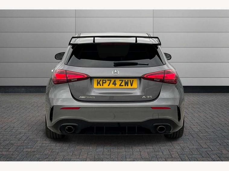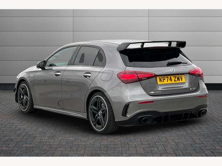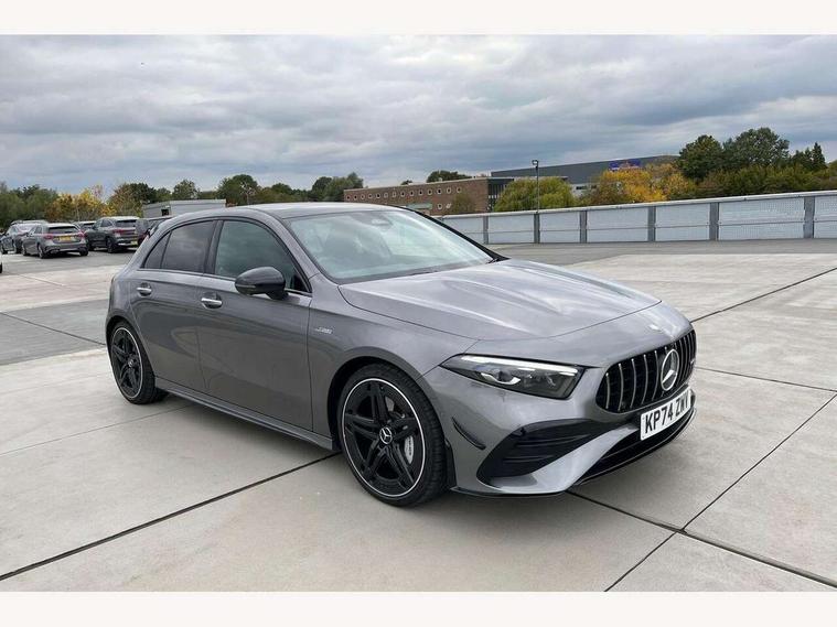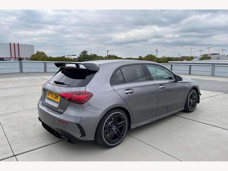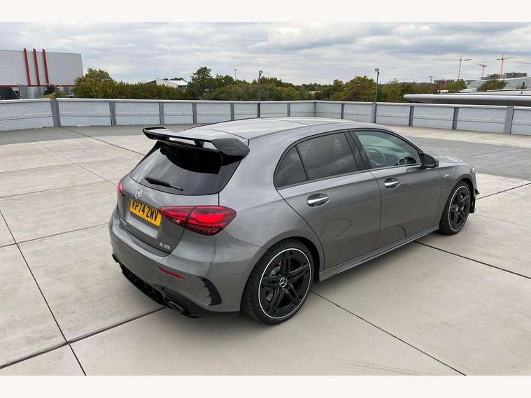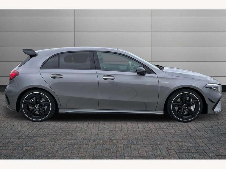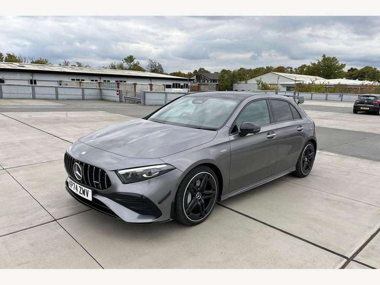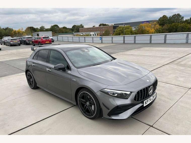 10.25 inch touchscreen central media display, 10.25" Digital instrument cluster display screen, Attention assist, Brake pad wear indicator warning light, Car wash mode, Direct steering, Direction indicators with lane change function, Dual bluetooth interfaces, DYNAMIC SELECT with driving programs (Slippery, Comfort, Sport, Sport+ and Individual), Easy pack tailgate hands-free access, ECO start/stop function, Engine start/stop button, Fingerprint scanner, Fluid level warning indicator for fuel, oil, coolant and washer fluid, Fluorescent jacket for driver, Hard-disk navigation, Head up Display, Hey Mercedes Voice activation, Lamp failure indicator, MBUX augmented reality for navigation, MBUX Interior assistant, Mercedes me connect including emergency call system, accident recovery, breakdown and maintenance management, Mercedes me remote services, Outside temperature gauge, Owners manual in English, Pre-installation of private car share, Preinstallation for Mercedes Benz link, Remote boot closing, Service indicator (ASSYST), Smartphone integration with Apple CarPlay and Android auto, Speed sensitive power steering, Tailgate, Traffic sign assist, Trip computer in multifunction display with current consumption indicator, Wireless charging, AMG suspension, Suspension with adaptive damping system, DAB Digital radio, MBUX multimedia system, Mercedes Benz advanced sound system (225 W) with 10 speakers, 1 central speaker, speakers on doors, a tweeter on door, one sub woofer + boost amplifier, 4 Electric Front and Rear windows, Adaptive brake lights, AMG body styling - AMG front apron with front splitter and AMG rear apron and visible exhaust tailpipe trim elements, AMG Front apron with flics as air deflector elements on the outer air intakes, AMG radiator grille with twin blade lamella and AMG Lettering, AMG Rear apron with specific diffuser look with four vertical fins and two round chrome plated tailpipe trim elements with a diameter of 90 mm, AMG spoiler lip on roof, Beltline strips in High gloss Black, Body colour bumpers, Body colour door handles with chrome inserts, Body colour side skirt, Electric adjustable and heated door mirrors with integrated LED side indicators, Front splitter and trim elements on the louvres in the outer air inlets, Front wings wheel arches with TURBO 4MATIC lettering, Headlamp assist automatic headlamp activation, Heat insulating dark tinted rear and rear side windows, Heated glass rear windscreen + timer control, LED daytime running lights, LED High level third brake light, LED tail lamp, Multibeam LED headlamps with adaptive highbeam assist and cornering function, Panoramic sliding sunroof, Privacy glass, Radio aerial, Rain sensing windscreen wipers with two sensitivity settings, Rear fog lights, Rear side wing doors, Rear windscreen wiper, Surround lighting with logo projection, Wider wheel arches for AMG wheels, Window line trim strip in black, 3 seat bench in 2nd row, 40:20:40 split folding rear seats, Air conditioning - Two zone thermotronic luxury automatic climate control with display, AMG floor mats, AMG Performance steering wheel in nappa leather, Automatic child seat recognition sensor, Black air vents with surround in silver chrome, Black roof lining, Brushed stainless steel sports pedals with rubber studs, Electrically adjustable front memory seats including lumbar support and backrest inclination, Front centre armrest with stowage, Front seat backs luggage nets, Height/reach adjustable steering column, Illuminated AMG front door sills with changeable cover, Interior lighting - 64 colour Ambient lighting, Interior mirror with reading lamps in black and frameless, Rear armrest with 2 cupholders, Seat occupancy sensor for front passenger seat, Silver coloured aluminium gear shift paddles on steering wheel, Single front passenger seat, Sports seats with integrated headrests, Stowage compartment in centre console with retractable cover, Sunvisors with illuminated vanity mirrors, Twin front cupholders, Aerodynamic pack - A Class, AMG night pack - A Class, Light and sight package - A Class, Mirror package - A Class, Parking pack with 360 degree camera - A Class, Seat comfort pack - A Class, USB pack plus - A Class, Winter pack - A Class, 3 rear 3 point seatbelts, ABS with Brake Assist, Active bonnet, Adaptive brake assist with hold function and hill start assist, Black seatbelts, Bonnet with power domes, Childproof locks manually operated for rear doors and electrically operated for rear power windows, Crash responsive emergency lighting, Driver and passenger head and side airbags, Drivers knee airbag, Dual stage driver/passenger airbags, Electronic parking brake, ESP curve dynamic assist, ESP with ASR, Exit warning, Front and rear seatbelt reminder, Front brake calipers with AMG lettering, ISOFIX and top tether child seat fixing points in two outer rear seats, Tyre pressure monitoring system, Warning triangle and first aid kit, Window airbags, Alarm system/interior protection/immobiliser, Guard 360 degree vehicle protection, Keyless entry lock/unlock, Keyless Go, Remote central locking and crash sensor with emergency opening function, Light longitudinal grain aluminium trim, 19" AMG 5 twin spoke light alloy wheels aerodynamically optimised painted in matt black with high sheen rim flange, Summer tyres, Tirefit sealant kit,