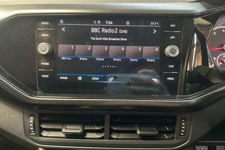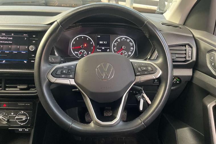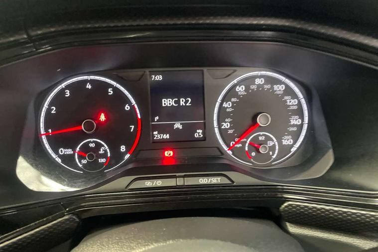 'Lights On' Reminder warning buzzer, Adaptive cruise control including front assist, forward collision warning, autonomous emergency braking, speed limiter, Blind spot monitoring, Bluetooth telephone and audio connection for compatible devices, Car information display, Digital cockpit, Driver alert system, eCall emergency call system, Lane assist, Low washer fluid warning light, Multifunction computer with visual gear change recommendation for fuel consumption, Operating permit alteration, Power assisted speed sensitive steering, Speedo, rev counter, electronic odometer, trip, service interval display, exterior temperature and fuel gauge, Stop/start system, Warning sound and light for doors and tailgate open, Warning sound and light for front seatbelts unfastened, We Connect Go Dongle, Wireless Car net app connect with Apple CarPlay, combined functionality of Apple CarPlay/Android Auto and MirrorLink, Battery regeneration during braking, Misfuel prevention device, 2x USB connection with USB charging sockets and in rear centre console, DAB Digital radio receiver, Diversity antenna for FM reception, Multi device interface (MDI) with USB connection, Music playback - MP3, WMA and AAC files, Premium USB cable for Apple or Android smartphone compatibility, Simultaneous pairing of 2 compatible mobile devices, Title and cover art display, Automatic hazard lights activation under emergency braking, Black roof rails, Body colour door handles, Body colour door mirrors with integrated indicators, Body coloured bumpers, Dusk sensor + automatic driving lights, Electrically foldable, adjustable and heated door mirrors with reverse activated kerb view adjustment on passenger's side, Front and rear electric windows, Front fog lights with static cornering function, Galvanised body, Heated rear window, LED third brake light, Lower door sills and door pillars in black, Radiator grille with high gloss surface and chrome strip, Rear fog light on one side, reversing light on both sides, Rear lights incorporating LED technology, Rear side wing doors, Rear window aerial, Rear windscreen washer and wiper with interval delay, Reflectors in all doors, Tailgate with integrated roof spoiler, Windscreen wipers/ intermittent wipe + 4 position delay, 12V Accessory socket in centre console, 3 rear head restraints and 3 rear three point seat belts with ECE label, 3 seat bench in 2nd row, 60/40 split folding rear seat backrest, Drawer under drivers seat, Driver and front passenger sunvisor with vanity mirror, Driver's sunvisor with ticket holder, Dust and pollen filter, Front and rear reading lights X 2, Front centre armrest with storage compartment, Front seat back storage pockets, Front seats with adjustable lumbar support, Glovebox, Heating and fresh air system with 4 stage blower, Height/reach adjust steering wheel, Instrument lighting white adjustable panel illumination, Interior light with delay, Isofix child seat preparation for 2 rear child seats, Luggage compartment cover, Luggage compartment lighting, Manual air conditioning, Manual front seats with height adjustment, Moveable and foldable Rear bench seat, Storage compartment in drivers and front passengers door, Three spoke multi-function leather trimmed steering wheel and gearknob, Triangle ties/pearl cloth upholstery, Variable boot floor, Anti-lock Braking System (ABS) with Hydraulic Brake Assist (HBA), Automatic post collision braking system, Driver and front passenger safety-optimised head restraints, Drivers and Front Passengers airbags with front passengers airbag deactivation switch, ESC with EDL, ASR, EDTC and trailer stabilisation function, Front and rear curtain airbags, Front seat side impact airbags, Height-adjustable front three-point seat belts with tensioners, Hill start assist, Pre crash preventive occupant protection, Rear door child safety locks, Rigid safety cell with front and rear crumple zones, Single torn horn, Tyre pressure loss indicator, Volkswagen roadside assistance, Alarm with interior protection and deactivation via infotainment system, Child security locks in rear doors, Electronic engine immobiliser, Remote tailgate unlocking using key fob, Pineapple decorative inserts in dash and doors, 17" Clayton alloy wheels + anti theft wheel bolts, Breakdown kit,