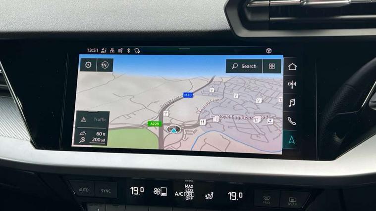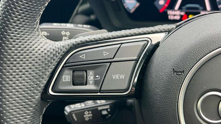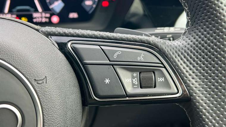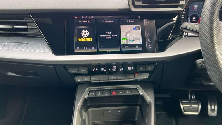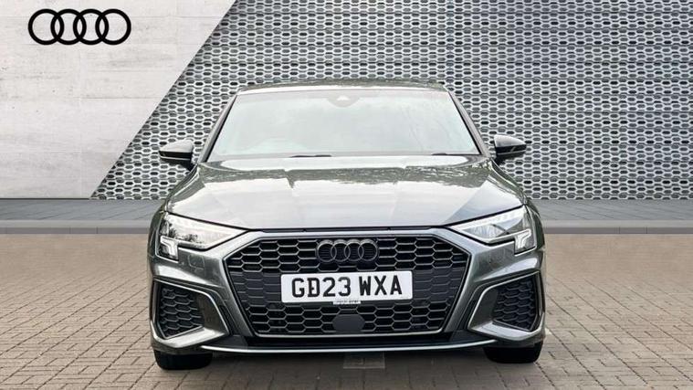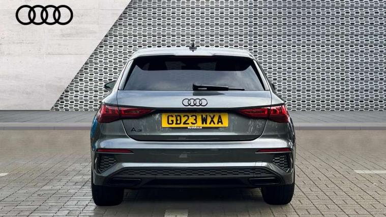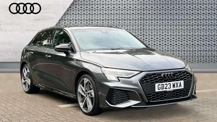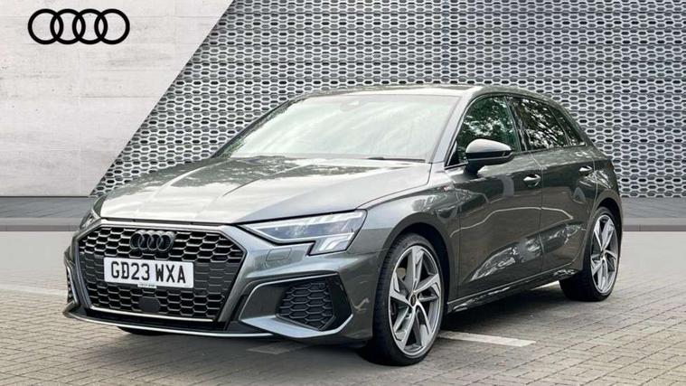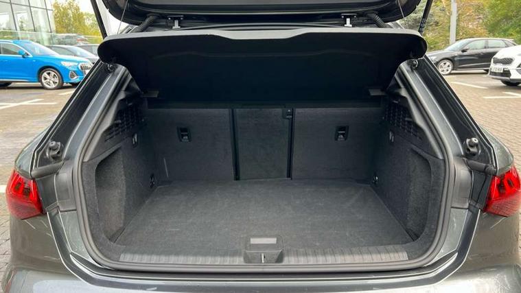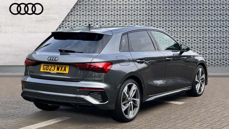 Audi drive select (Auto, Comfort, Dynamic, Efficiency and Individual), Audi smartphone interface, Audi Virtual Cockpit - 10.25" digital and colour instrument cluster, Automatic start/stop system with recuperation, Bluetooth interface, Camera based traffic sign recognition, Collision avoidance assistant, e-Call (emergency call), Electromechanical power speed sensitive steering, Lane departure warning system, MMI Navigation Plus with high resolution 10.1" colour touch screen display, Service indicator, Trip computer, Voice control system with natural language interaction, Sports suspension, 2xUSB-C connection with data and charging functions, 6 passive loudspeakers, DAB Digital radio, 3rd brake light, Acoustic glass windscreen, Audi beam uses LEDs to project the Audi logo onto the ground as you exit your A3, Auto dimming frameless rear view mirror, Electrically adjustable/heated/folding/auto dimming door mirrors with integrated LED indications + kerb view function for passenger side, Front electric windows, Illuminated door sills with aluminium inserts at the front with S logo, LED daytime running lights, LED headlights with LED rear lights and dynamic rear indicators, Light and rain sensors, Privacy glass - dark tinted rear window, rear door and side windows, Rear electric windows, Rear side air outlets in grained matt black, Rear side wing doors, Rear wiper, S roof spoiler, 12V socket and storage compartment in front centre console, 3 seat bench in 2nd row, 4 way electrically adjustable lumbar support for driver and front passenger, 60/40 split folding rear seat bench, Black cloth headlining, Dual zone electronic climate control, Front and rear centre armrest in artificial leather, Front and rear headrests, Front/rear floor mats, Height and reach adjustable steering wheel, Interior lighting - glove compartment light and right hand side, Luggage compartment floor covering, Manual boot compartment lid, Seat side bolsters, Single front passenger seat, Stainless steel pedals and front footrest in black, Twin leather upholstery with front sports seats S embossed logo, Aluminium interior elements pack - A3 Sportback, Black styling pack - A3 Sportback/Black edition, LED interior lighting pack - A3 Sportback, 3x3 point rear seat belts, Driver and front passenger airbag with passenger airbag deactivation, Electronic Stabilisation Control (ESC) including ABS, ASR and EDL, First aid kit with warning triangle and 2 safety vests, Front side airbags with head airbags and interaction airbag, Pre-sense front with pedestrian and cyclist detection, Seatbelt monitoring, Tyre pressure loss indicator, Anti theft alarm, Anti-theft wheel bolts, Electronically operated child locks, Immobiliser, Remote control central locking, Dark spectrum aluminium inlays, accent surfaces in the dashboard and centre console in platinum grey silk effect paint finish, 19" 5 arm trapezoid design alloy wheels in matt grey with diamond cut finish,