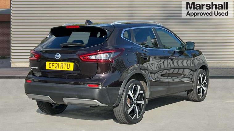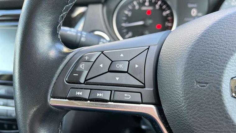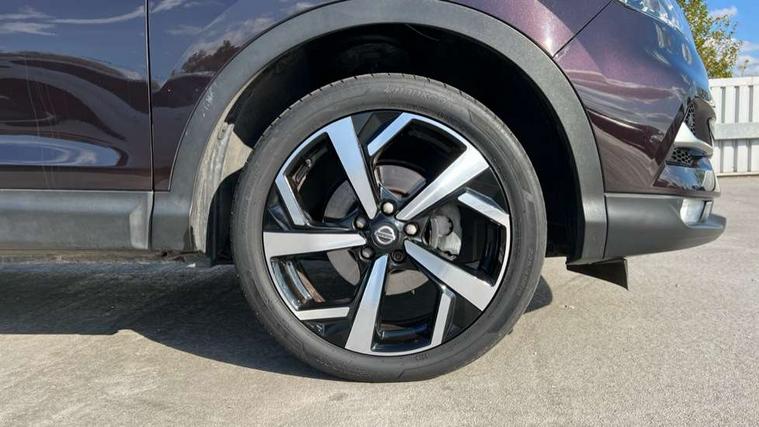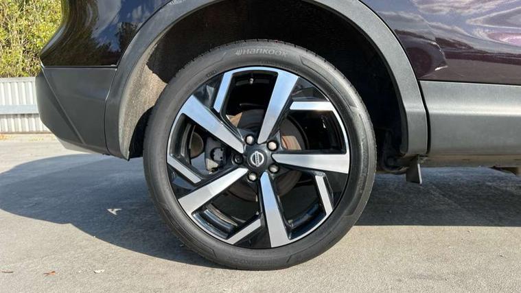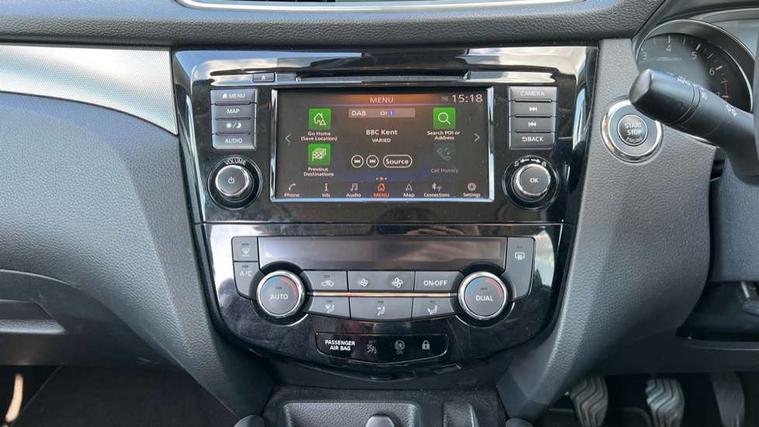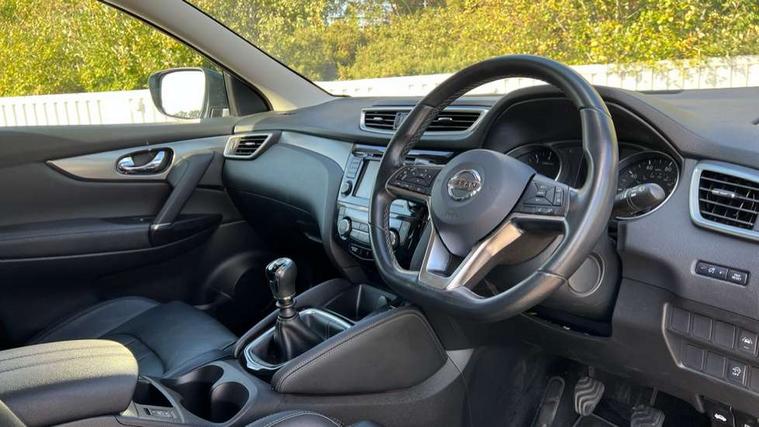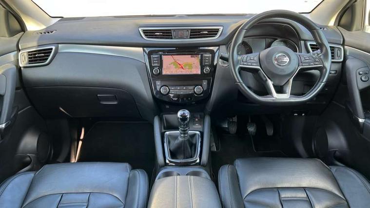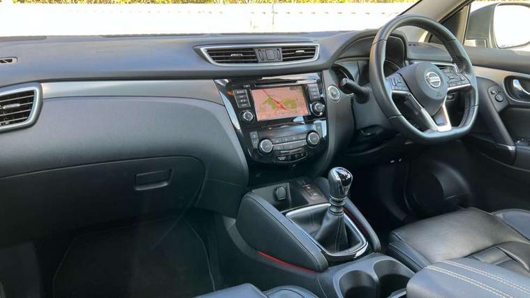 360 degree Intelligent around view monitor, Advanced drive assist display 5'' TFT coloured screen, Apple car play/Android Auto, Bluetooth connectivity, Cruise control + speed limiter, Electric speed sensitive power steering, Front parking sensors, Idle stop/start system, Intelligent park assist, Lane departure warning system, Nissan connect evo 7" touchscreen navigation and entertainment system, Normal or sport selectable steering, Outside temperature sensor, Premium Tomtom connected services, Push button starter, Rear parking sensors, Service interval indicator, Smartphone integration, Traffic sign recognition, Trip computer, Voice control system, Nissan chassis control (intelligent ride control, intelligent trace control), 6 speakers, AM/FM radio, CD audio system, Aux-in socket, DAB Digital radio, Steering wheel mounted audio controls, USB port, Anti dazzle rear view mirror, Auto wipers, Body colour bumpers, Body coloured door handles, Body coloured door mirrors, Chrome window surround, Daytime running lights dip function when turn signal applied, Electric adjustable heated door mirrors with memory, Electric folding door mirrors, Electric front and rear windows with one touch illuminated window controls, Front fog lights, High beam assist, Intelligent auto headlights, LED indicators in door mirrors, Matt silver roof rails, Privacy glass, Rear roof spoiler, Rear wiper with reverse link, Shark fin antenna, Silver rear styling plate, Underbody vortex generators, 2 X front 12v power sockets, 3 height adjustable rear headrests, 60/40 split folding rear seat, Ambient interior lighting, Ambient lighting around centre console, Boot lighting, Centre console storage box/armrest, Chrome interior door handles, Dual zone climate control, Electric 4-way lumbar support for drivers seat, Electrically adjustable driver seat with memory, Electrically adjustable passenger seat, Front and rear door pockets with bottle holders, Front and rear seat belt pre-tensioners with load limiters, Height adjustable front headrests, Individual rear seat reading lights, ISOFIX restraints on outer rear seats x2, Leather D shaped steering wheel, Leather gear lever, Leather knee pad, Luggage board system, Luxury floor mats, Manual height adjustable passenger seat, Manual lumbar support on passenger seat, Monoform front sport seats with plastic backboard, Nappa leather upholstery with 3D quilted, Parcel shelf stow function under luggage board, Pollen filter, Rear armrest with 2 cupholders, Synthetic leather wrapped door handle with contrasting stitching, Tilt/telescopic adjustable steering wheel, Glass roof pack - Qashqai, Heat package - Qashqai, LED pack - Qashqai, 6 airbags - Driver, front passenger, curtain and side airbags, ABS, ESP, EBD and brake assist, Auto hold function, Child locks on rear doors, Electronic parking brake, Front and rear seat belt warning, Height adjustable front seatbelts, Hill start assist, Intelligent emergency braking with pedestrian recognition, Passenger airbag deactivation system, Three 3 point rear seatbelts, Tyre pressure monitoring system, Anti-theft immobiliser, Intelligent Key, Remote central locking, Thatcham Cat.1 alarm, Carbon graphite dash trim, 19" Alloy wheels,