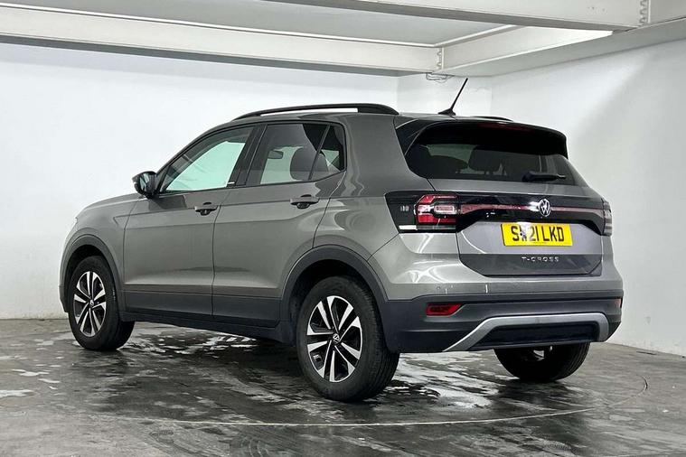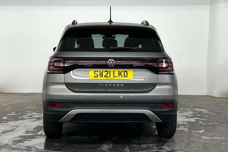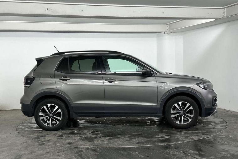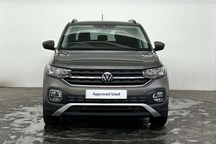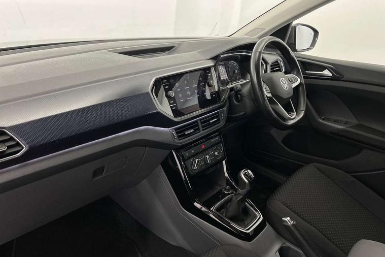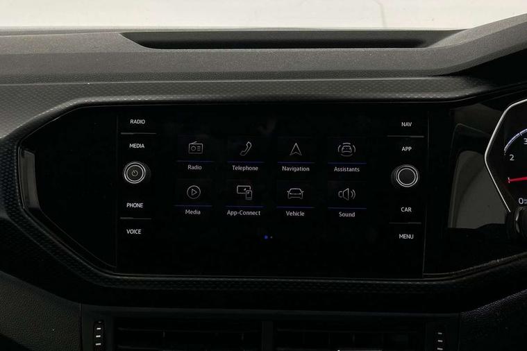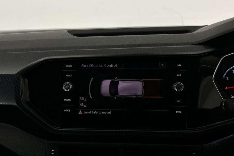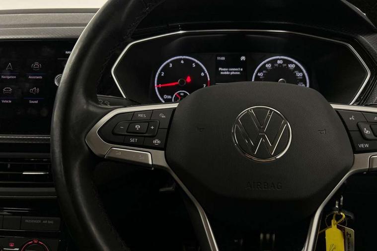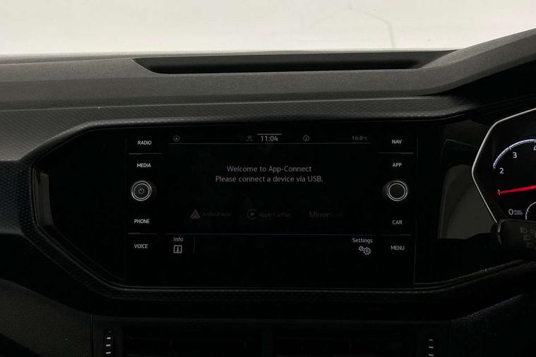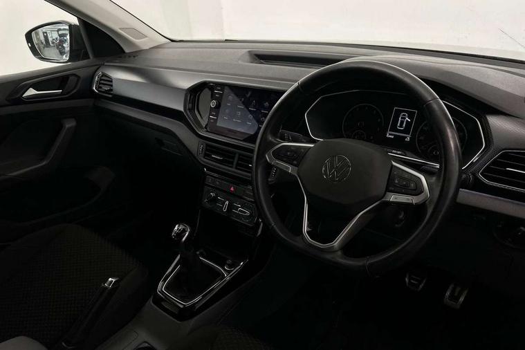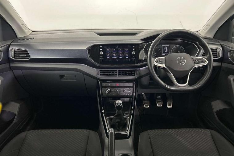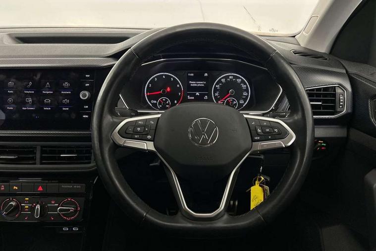 'Lights On' Reminder warning buzzer, Adaptive cruise control including front assist, forward collision warning, autonomous emergency braking, speed limiter, Blind spot monitoring, Bluetooth telephone and audio connection for compatible devices, Car information display, Driver alert system, eCall emergency call system, Lane assist, Low washer fluid warning light, Multifunction computer with visual gear change recommendation for fuel consumption, Operating permit alteration, Power assisted speed sensitive steering, Speedo, rev counter, electronic odometer, trip, service interval display, exterior temperature and fuel gauge, Stop/start system, Warning sound and light for doors and tailgate open, Warning sound and light for front seatbelts unfastened, We Connect Go Dongle, Wireless Car net app connect with Apple CarPlay, combined functionality of Apple CarPlay/Android Auto and MirrorLink, Battery regeneration during braking, Misfuel prevention device, 2x USB connection with USB charging sockets and in rear centre console, DAB Digital radio receiver, Diversity antenna for FM reception, Multi device interface (MDI) with USB connection, Music playback - MP3, WMA and AAC files, Premium USB cable for Apple or Android smartphone compatibility, Simultaneous pairing of 2 compatible mobile devices, Title and cover art display, 3D active badge on B-pillar, Active door sills, Active sill panel trims, Automatic hazard lights activation under emergency braking, Black roof rails, Body colour door handles, Body coloured bumpers, Dusk sensor + automatic driving lights, Electrically foldable, adjustable and heated door mirrors with reverse activated kerb view adjustment on passenger's side, Front and rear electric windows, Front fog lights with static cornering function, Galvanised body, Heated rear window, High level 3rd brake light, Lower door sills and door pillars in black, Radiator grille with high gloss surface and chrome strip, Rear fog light on one side, reversing light on both sides, Rear lights incorporating LED technology, Rear tinted glass 65% approx light absorbing from B pillar backwards, Rear window aerial, Rear windscreen washer and wiper with interval delay, Reflectors in all doors, Tailgate with integrated roof spoiler, Windscreen wipers/ intermittent wipe + 4 position delay, 12V Accessory socket in centre console, 3 rear head restraints and 3 rear three point seat belts, 60/40 split folding rear seat backrest, Ambient lighting and sourround lighting, Brushed stainless steel pedals, Drawer under drivers seat, Driver and front passenger sunvisor with vanity mirror, Driver's sunvisor with ticket holder, Dust and pollen filter, Front + rear carpet mats, Front and rear reading lights X 2, Front centre armrest with storage compartment, Front seat back storage pockets, Front seats with adj lumbar support, Glovebox, Heating and fresh air system with 4 stage blower, Height/reach adjust steering wheel, Instrument lighting white adjustable panel illumination, Interior light with delay, Isofix child seat preparation for 2 rear child seats, Luggage compartment cover, Luggage compartment lighting, Moveable and foldable Rear bench seat, Storage compartment in drivers and front passengers door, Three spoke multi-function leather trimmed steering wheel and gearknob, Trapeze cloth upholstery, Variable boot floor, Winter pack - T-cross, Anti-lock Braking System (ABS) with Hydraulic Brake Assist (HBA), Automatic post collision braking system, Driver and front passenger safety-optimised head restraints, Drivers and Front Passengers airbags with front passengers airbag deactivation switch, ESC with EDL, ASR, EDTC and trailer stabilisation function, Extended and proactive pedestrian protection, Front and rear curtain airbags, Front disc brakes and rear drum brakes, Front seat side impact airbags, Height adjustable 3 point automatic front seatbelts with pretensioners, Hill start assist, Pre crash preventive occupant protection, Rigid safety cell with front and rear crumple zones, Single torn horn, Tyre pressure loss indicator, Volkswagen roadside assistance, Alarm with interior protection and deactivation via infotainment system, Child security locks in rear doors, Electronic engine immobiliser, Remote tailgate unlocking using key fob, Decorative strips in doors in matt silver/ center console, 17" Clayton alloy wheels + anti theft wheel bolts, Breakdown kit,