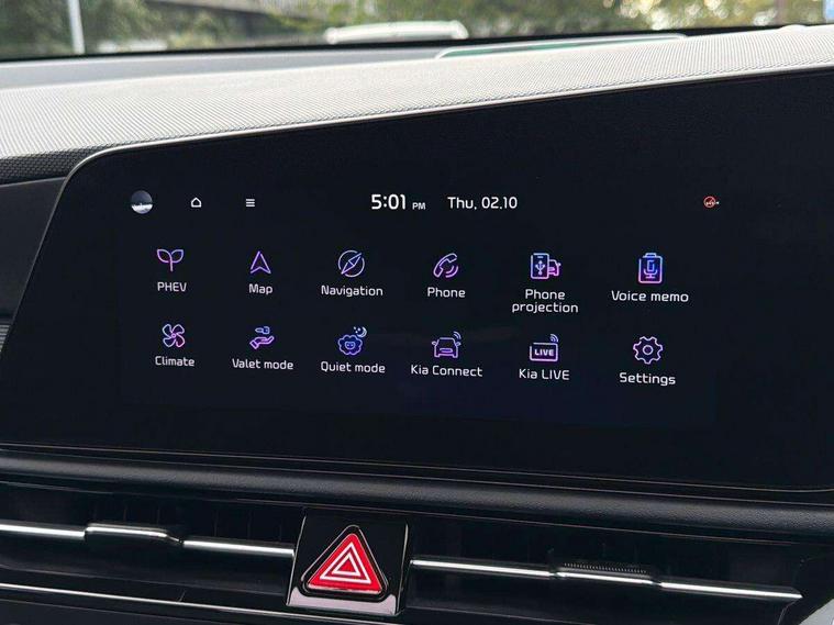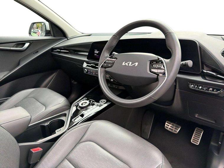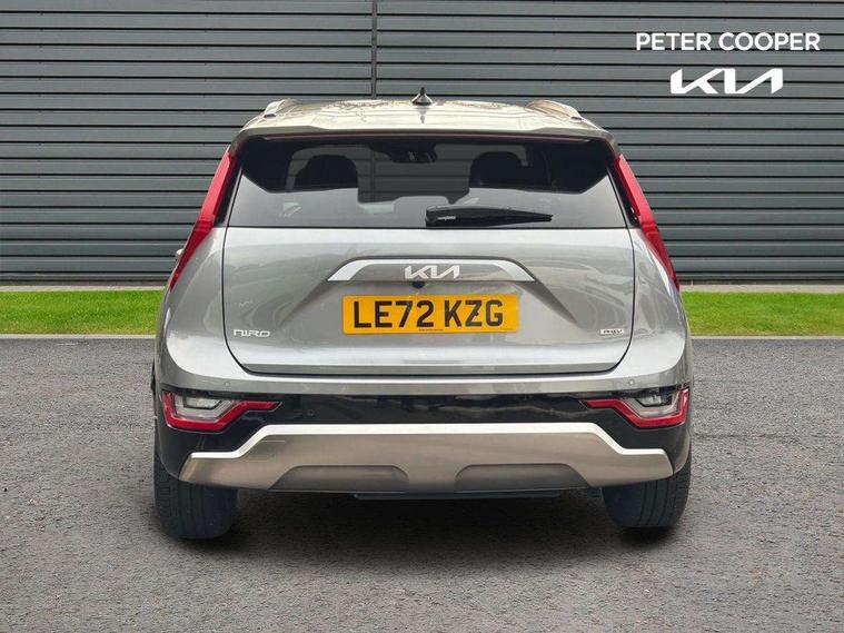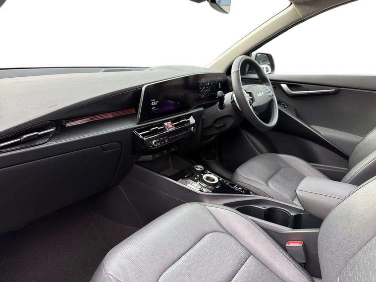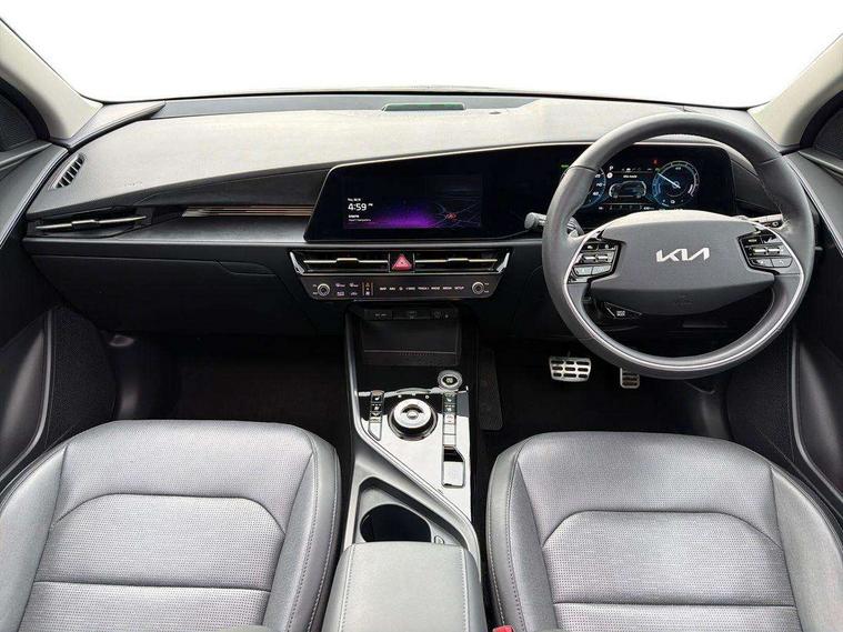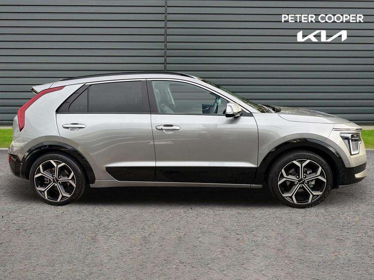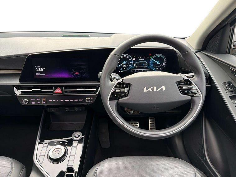 10.25" Supervision colour cluster display, 10.25" touchscreen satellite navigation, Adaptive smart cruise control function (SCC) with stop and go, Apple car play/Android Auto with voice control, Blind spot collision avoidance assist, Drive mode select (Eco, sport), E-call, Emergency stop signalling system, Forward Collision-Avoidance Assist (FCA) - City/Pedestrian/Cyclist/Junction turning, Front parking sensors, Head up Display, Highway Driving Assist (HDA), Kia Connect (UVO), Lane Following Assist (LFA), Lane keep assist, Motor driven power steering, Parking collision avoidance assist (PCA), Power opening/closing tailgate, Rear cross traffic alert, Rear parking sensors, Remote smart parking assist, Reversing camera with dynamic guide lines, Safe exit warning (SEW), Speed limit assist, Trip computer with distance/fuel consumption/average speed, Wireless Smartphone charger, 220v AC Inverter, 'Shark fin' mobile antenna, 2 type C USB ports on front seats, 2 USB ports in centre console including 1 type C, 6 speakers, Bluetooth with music streaming, DAB Digital radio, Steering wheel mounted controls, Acoustic windshield, All round electric windows with drivers and front passenger auto up/down and safety function, Auto dimming rear view mirror, Automatic defog system, Automatic headlight control system, Black grille with chrome surround, Body colour bumpers, Body colour exterior door handles, Deluxe door scuff plates, Dual LED headlights (low and high projection), Electric heated door mirrors, Electrically folding door mirrors, Front and rear skid plate - chrome, Front fog lights, Heated rear window with timer, High gloss black cladding, High gloss black door mirrors, LED daytime running lights, LED rear combination lights, LED third brake light, One touch single tilting/sliding power sunroof, Privacy glass - Rear windows and tailgate, Rain sensing front wipers, Rear fog lights, Rear side wing doors, Rear spoiler, Rear wiper, Roof rails, Solar glass windscreen, Welcome and follow-me home light functionality, Windscreen Washer Level Warning, 12v socket in front, 12V socket in luggage compartment, 3 seat bench in 2nd row, 60:40 split remote folding rear seats, All-round height adjustable headrests, Aluminium pedals, Artificial leather centre console storage box, Artificial leather steering wheel, Centre console cupholder, Chrome coating interior door handles, Driver and front passenger power adjusted seat, Driver power adjusted memory seat, Driver/passenger sunvisors with illuminated vanity mirrors, Drivers seat power lumbar support, Dual zone automatic air conditioning, Front and rear door storage, Heated front seats, Heated outer rear seats, Heated steering wheel, Illuminated glovebox, Interior door lock/unlock function, ISOFIX Child seat top tethers and anchor fixings, LED overhead console, 2nd row and luggage lamp, Luggage area load cover, Luggage board, Paddle shifts, Passenger premium relaxation seat, Power adjustable lumbar support on front passenger seat, Rear armrest, Seatback pocket - driver, Seatback pocket - front passenger, Shift by wire SBW, Single front passenger seat, Tilt/telescopic adjustable steering wheel, Vegan leather upholstery, Ventilated front seats, Ventiliation ducts to rear compartment, Towing pack - Niro, 3 point seatbelts on all seats, ABS, Automatic unlocking of doors in case of impact, Centre side front airbags, Curtain and side airbags, Drivers knee airbag, Dual shell horn, Electric parking brake with auto hold function, Electronic stability control, Front passenger airbag deactivation, Height adjustable front seatbelts, Hill start assist control (HAC), Manual rear child locks, Rear seat alert system, Traction control, Tyre pressure monitoring system, Alarm system and engine immobiliser, Deadlocks, Engine Start/Stop Button with Smart Entry System, Locking wheel nuts, Visible vehicle identification number, Warranty - 7 Years/ 100, 000 miles, Centre fascia chopped carbon, 18" alloy wheels, Tyre mobility kit,