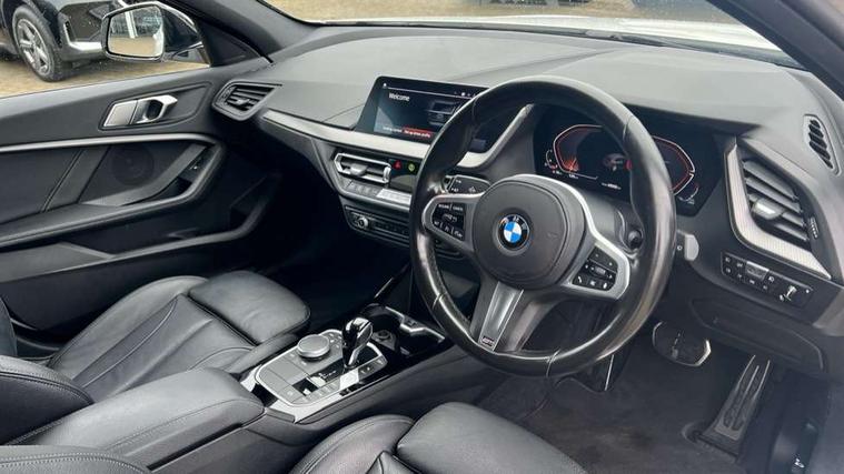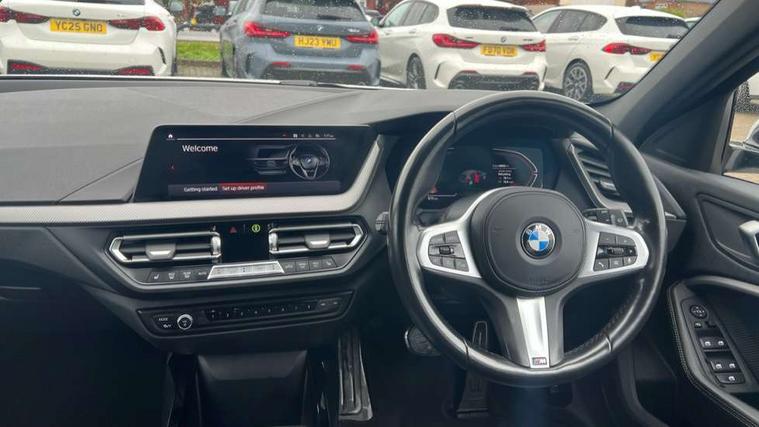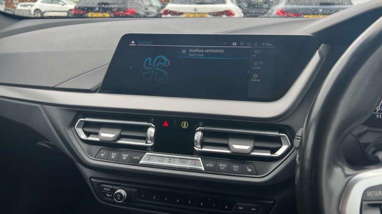 Active guard plus, Attentiveness assist, BMW Online services, BMW Teleservices, Check Control warning system for monitoring of lights and door/luggage compartment open warning, Connected eDrive Services, Eco pro mode, Integrated owners handbook, Oil sensor for level and grade, On board computer, Optimum shift indicator, Personal Profile, Pull away assistant, Speed limiter, Aluminium lightweight construction, Anti roll bar front and rear, Balancer shaft, Double VANOS, Drive Performance Control, Electronic differential lock, High precision injection, M sport suspension, Petrol Particulate Filter, VALVETRONIC engine management, Bluetooth audio streaming, DAB Digital radio, Auto dimming rear view mirror, Automatic headlight beam throw control, Automatic windscreen wipers and automatic headlight, Body colour door handles, Body colour mirror caps, Chrome 'M' logo side designation, Chrome exhaust tailpipe in single, round (Exhaust tailpipe, stainless steel - single, round), Chrome kidney grille frame with Satin Aluminium struts, Direction indicator side lights in exterior mirrors, Electric folding and anti dazzle exterior mirrors, Fading support, Follow me home headlights, Front and rear bumper system with replaceable deformation elements, Front and rear electric windows with open and close fingertip control, anti trap facility and comfort closing, Front door sill finishers in black plastic with M designation in metallic look, Green tinted heat protection glazing, Heated, electrically adjustable exterior mirror aspheric on driver side, convex on passenger side, High gloss shadowline window frame, Recess cover mirror frames and B/C pillar embelisher trim, High level third brake light, LED daytime running lights, LED eyebrow turn indicators, LED front fog lights, Lightweight engineering, Matt black air guide grilles, Model designation on right side of tailgate, Nearside reverse light in rear light cluster, Preparation for high beam assistant, Rain sensor including auto headlights activation, Rear fog lights, Rear window wiper, Shark fin antenna, Visible VIN plate, Welcome lighting, 12V power socket in centre console, 3 rear seat head restraints, 3 spoke M sports design leather steering wheel finished in nappa leather with specific M badge, Anthracite headlining, Anthracite Velour floor mats, Child seat ISOFIX attachment for two outer rear seats and front passenger seat with anchorage points, Conditioned based service, Dakota leather upholstery with perforation and contrast stitching, Driver and front passenger seat heating, Folding rear clothes hook, Four grab handles integrated in roof lining, Front and rear door pockets, Front and rear door pockets with bottle holders, Front and rear side armrest integrated into door trim, Front armrest foldable with integrated storage compartment, Front sports seats with electric side bolster adjustment, Glove compartment, Height adjustable front head restraints, Manual adjust steering wheel, Multi-function controls for steering wheel, Storage compartment in centre console, Sun visors with vanity mirrors and insert tab, Two zone automatic air conditioning, Additional interior lighting pack - 1 Series, Connected pack professional - 1 Series, Extended storage pack - 1 Series, Interior lights pack - 1 Series, Luggage compartment pack - 1 Series, M Sport exterior styling aerodynamics pack - 1 Series, 2 tone horn, 3 point seatbelts on all seats, front pyrotechnic belt tensioners, stopper and belt force limiters, rear coded belt buckles, Airbags - front driver/passenger, front & rear curtain, front side, Anti lock braking system (ABS) with brake assist, BMW emergency call, Brake drying, Braking readiness, Crash sensor activating central locking release, hazard warning lights, fuel cut off, interior lighting + activation of safety battery terminal clamp, Driver and front passenger seat belt security check, Dynamic stability control + (DSC+), Dynamic Traction Control - DTC, Electrically operated hand brake, Front and rear disc brakes, Front passenger manual airbag deactivation, Seatbelt warning, Side impact protection, Tyre pressure monitoring system, Warning triangle and first aid kit, Automatic drive away locking facility, Central locking switch for all doors, fuel filler cap and luggage compartment, Deadlocking function system to all doors, Locking wheel bolts, Remote control with integrated key with High-gloss Black inlay and M designation and 1 button for open/ close lock, window, open luggage compartment, Start/stop button with comfort go keyless engine start and auto start stop deactivation button, Thatcham Cat.1 alarm and immobiliser, Contrast stitching on instrument panel, Reduced rolling resistance tyres,