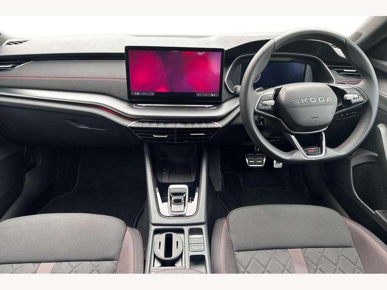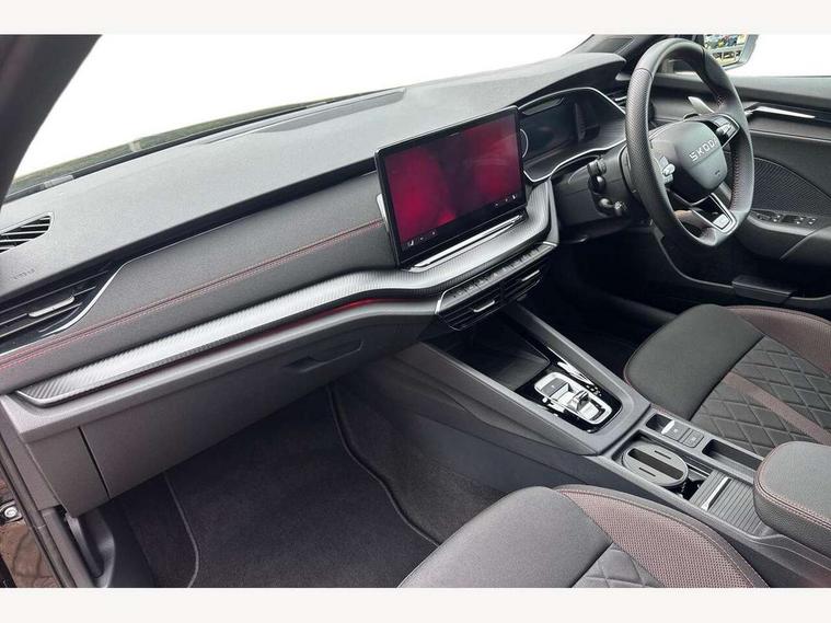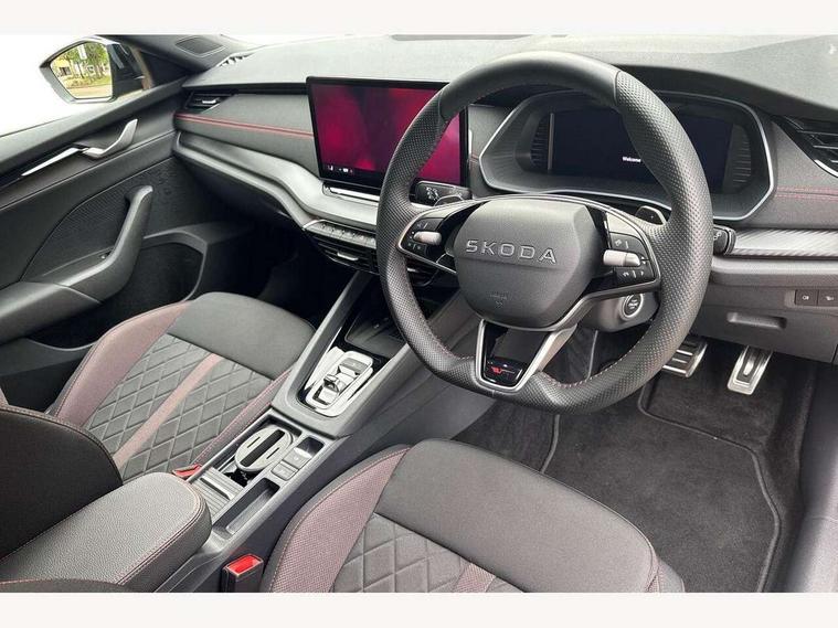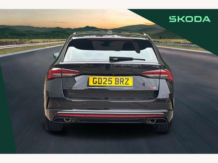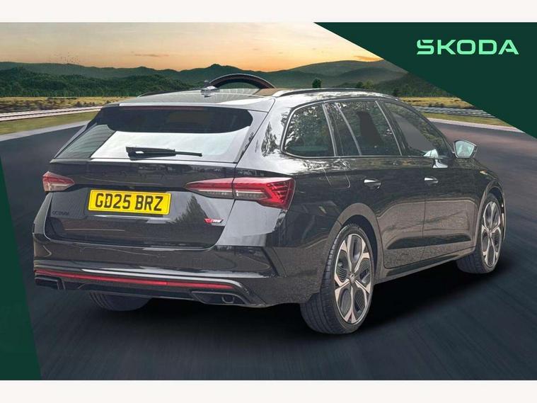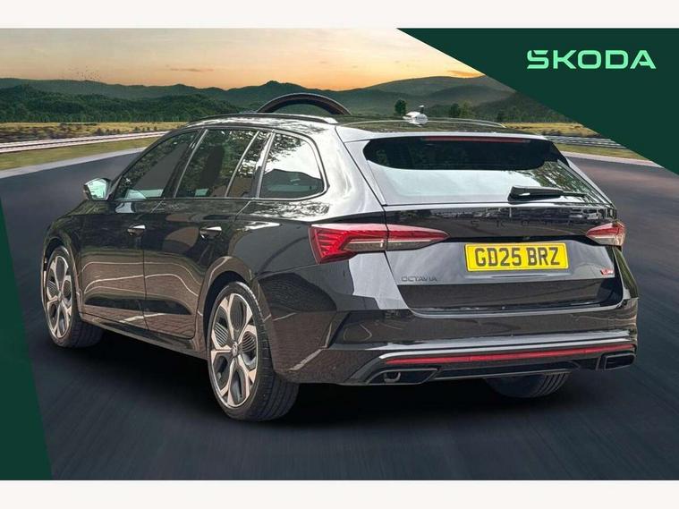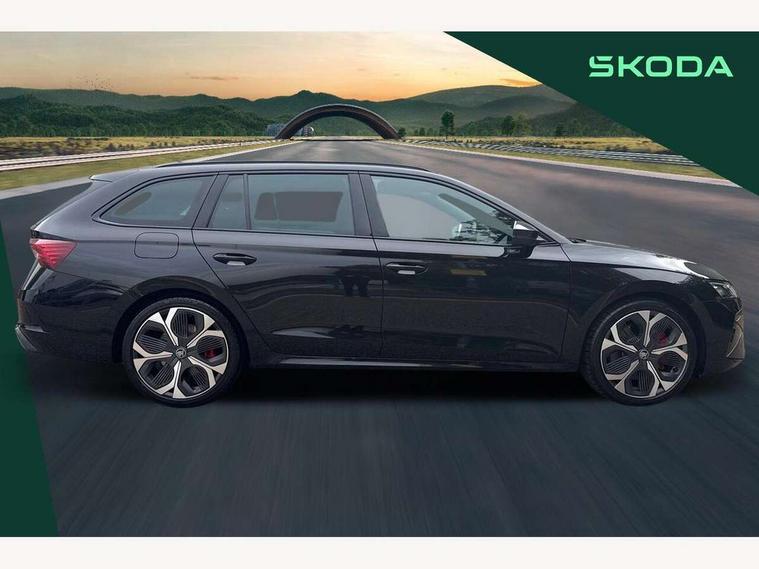 1x USB Typc C port in rear view mirror, 4x USB Type C ports - 2x in front centre console and 2x in rear (45W), Drive mode selection, Driver fatigue sensor, eCall emergency system, Electronic engine sound, Front assist system, Progressive dynamic steering, Traffic sign recognition, Turn Assist, Virtual Cockpit - 10.25" digital display, Voice control system, Wireless charging (15W) with cooling function, Wireless SmartLink for Apple CarPlay and Android Auto, Electronically controlled limited slip differential, vRS suspension, 13" touchscreen display with navigation, DAB Digital radio, Aero front windscreen wipers with intermittent function, Auto dimming rear view mirror, Black sport exhaust pipes, Body colour bumpers, Body colour door handles, Bumpers with rear red reflector strip, Electric front and rear windows, Exterior gloss black sports styling including front grille, window surrounds, door mirrors and badging, Gloss black diffuser, Gloss black roof rails, Gloss black spoiler, Heated rear windscreen, High beam control, High level third brake light, Ice scraper in fuel cap, LED daytime running lights, Logo projection in front doors, Rain and light sensors, Rear fog light on one side and reversing lights on both sides, Rear privacy glass, Rear side wing doors, Rear window wiper, Unique vRS bumpers and exterior styling, 12 volt socket in boot, 2x umbrella in door, 3 rear headrests, 3 seat bench in 2nd row, 4 foldable roof handles, Aluminium pedals, Front head restraints, Front sport seats, Heated front seats, Illuminated glovebox, Interior door handles in dark chrome, Jumbo Box storage, Luggage compartment lighting x2 lights, Mechanical rear seat release from boot, Single front passenger seat, Steering wheel in black leather with black stitching, Storage compartments in left and right of boot, Sun visors with mirrors, Sunglasses storage, Three spoke leather sports multifunction steering wheel with paddles, Ticket holder, Unsplit rear bench seat, split folding backrest with centre armrest with cupholder, Waste bin in door panel, Comfort package - Octavia Estate, Family package - Octavia, Light and view package plus - Octavia, vRS Design Selection pack - Octavia, 3x3 point rear seat belts, Alarm with interior monitoring, tilt sensor and back up horn, Curtain airbags and front side airbags, Driver and front passenger airbags, Drivers knee airbag, Electronic parking brake, ESC including ABS, EBV, MSR, ASR, EDS, HBA, DSR, Front central airbag, Hill hold assist, ISOFIX on front passenger seat and outer rear seats, Passenger airbag deactivate switch, Red brake calipers, Three point seat belts in front and rear, Two tone horn, Tyre pressure monitor, Visual and acoustic seat belt reminder, Warning reflectors in front door, Anti-theft wheel bolts, Keyless entry and start/stop, Remote central locking, Gloss black air vent surrounds, 19" Elias anthracite alloy wheels,