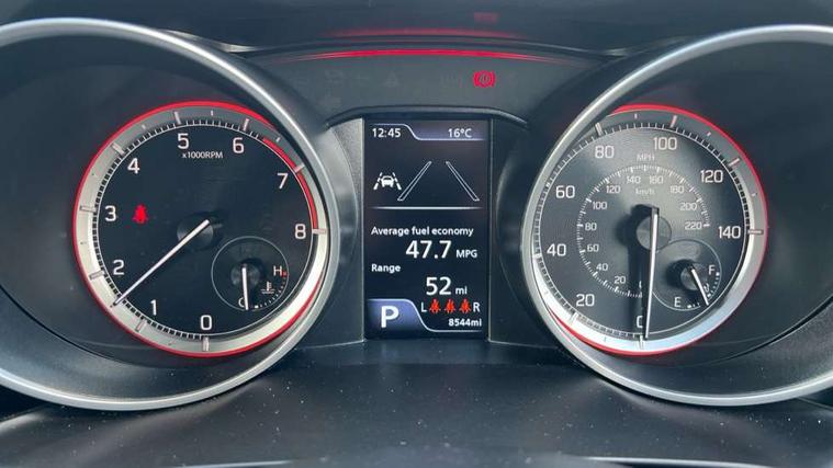Adaptive cruise control, Automatic start/stop system, Blind spot monitoring, Colour LCD information display, Fuel consumption screen, Gear position indicator, Lane departure warning system, Lights on warning, Low fuel level warning light, Navigation system, Outside temperature display, PAS, Rear cross traffic alert, Rear parking camera, Rear parking sensors, Remote fuel cap release, Smartphone integration with Apple CarPlay and Android auto, Speed limiter, Tachometer, Tailgate, Traffic sign recognition, Trip computer, Weaving alert, 4 speakers + 2 tweeters, Auxiliary input socket, Bluetooth audio streaming, DAB Digital radio, Steering wheel audio controls, USB interface, 'Guide me home' headlamps, 2 speed wipers+intermittent wipe, Automatic headlights, Black coloured A & B pillars, Black front grille chrome, Body colour door handles, Body coloured bumpers, Door mirrors with built-in turn signal lamp, Electric door mirrors, Electric folding door mirrors, Electric front windows, Electric rear windows, Front fog lights, Green tinted glass, Headlamp levelling, Heated door mirrors, High beam assist, High mounted stop lamp, LED daytime running lights, LED number plate light, LED position lamps, LED projector headlamps with DRL, LED rear combination lamp, Rear fog lights, Rear privacy glass, Rear wiper, 12V Accessory socket in front console, 2 Isofix seat anchors, 3 cupholders, 3 spoke leather covered steering wheel, 60/40 split rear seats, Accessory socket, Automatic air conditioning, Centre console storage, Centre lower box, Chrome handbrake release button, Chrome interior door handles, Cloth seat trim, CVT shift lock, Door pockets with bottle holder, Driver/passenger sunvisors with ticket holders + vanity mirrors, Front head restraints, Front map light, Front passenger side assist grip, Gearshift paddles, Glovebox, Heater, Height adjustable driver's seat, Luggage area lamp, Passenger seat back pocket, Pollen filter, Rear assist grips, Rear headrests, Tilt/telescopic adjustable steering wheel, Top tether anchor plate for isofix child seat, 3 point ELR seatbelts for centre seat, 3 point ELR seatbelts front and rear, ABS+EBD+Brake assist, Curtain airbags, Driver airbag, Dual sensor brake support, ESP + traction control, Foot protecting brake and clutch pedals, Front and rear seatbelt reminder, Front passenger airbag deactivation, Front seatbelt pretensioners with force limiters, Height adjustable front seatbelts, Hill hold control, Passenger airbag, Rear child proof door locks, Rear seatbelts with pre-tensioners and load limiters, Side airbags, Side impact protection beams, Tyre pressure indicator, Alarm, Deadlocks, Freewheeling key cylinders, Immobiliser, Keyless entry and start, Light - on and Key in reminder, Locking wheel nuts, Remote central locking, Silver instrument panel and interior door trim, 16" Polished alloy wheels, Tyre repair kit,