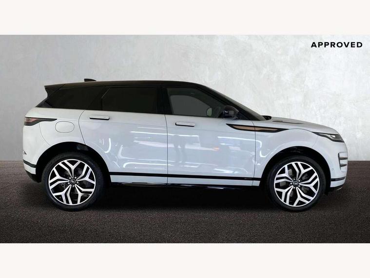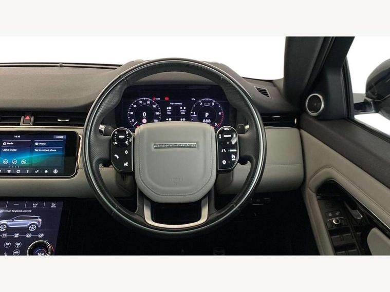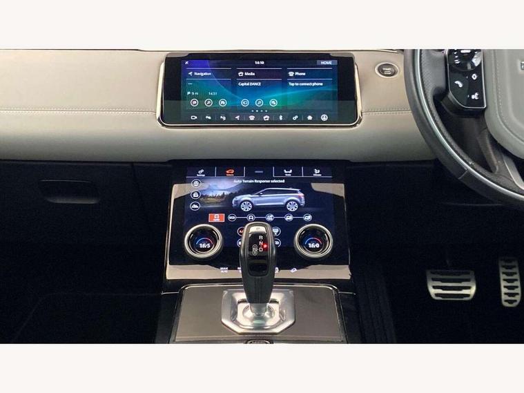 360 degree parking aid, Adaptive cruise control, Android Auto, Apple car play, Blind spot assist, Bluetooth connectivity, Brake pad wear indicator warning light, Clear exit monitor, Driver condition monitor, Duo touch pro, Electronic power assisted steering (EPAS), Head up Display, InControl remote, Interactive Driver display instrument cluster, Land Rover InControl apps, Lane keep assist, Navigation pro system, Park assist - Parallel, perpendicular and parking exit, Powered tailgate/boot lid, Pro services and wifi hotspot, Push button starter, Rear traffic monitor, Rear view camera, Smart settings, Traffic sign recognition with adaptive speed limiter, Voice control system, All terrain progress control, Efficient Driveline, Passive suspension, Terrain Response 2 Auto, Digital Audio Broadcast radio-DAB, Meridian sound system with 380W subwoofer and 10 speakers, Steering wheel mounted controls, Automatic headlight levelling, ClearSight interior rear view mirror, Electric windows with one touch open/close and anti trap, Evoque and R-Dynamic badge, Fixed panoramic sunroof with powered sunblind, Flush deployable exterior door handles, Front fog lights, Headlight power wash, Heated rear window with timer, Heated washer jets, Heated windscreen, Illuminated metal treadplates in loadspace and row 1 with First Edition script and non illuminated metal in row 2, Matrix LED headlights with signature DRL, intelligent high beam assist, signature Hi-Line tail lights and animated directional indicators, Metallic paint, Narvik black contrast roof with exterior mirror caps, No badge - Removes powertrain badge and specification pack badge, Power fold, auto-dimming, heated door mirrors with memory and approach lights, Privacy glass, Rain sensing windscreen wipers, Rear fog lights, Rear wing door, Shadow atlas bonnet and tailgate script, Tailgate spoiler, Third brake light, 14 way electric heated front seats with memory, fore/aft, recline/height/tilt, 4way lumbar + manual headrest adj with rear centre armrest, 40:20:40 split folding rear seats, Black gearshift paddles, Bright metal pedals, Configurable Ambient interior lighting, Duo-tone grained leather upholstery, Ebony morzine headlining, Electrically adjustable steering column with memory, Extended leather upgrade, First Edition carpet mats, Heated steering wheel, Isofix system on outer rear seats, Overhead lighting console, Overhead stowage for sunglasses, Passive front head restraints, Perforated soft grain leather steering wheel with Atlas bezel, Rear air vents, Rear centre headrest, Sunvisors with illuminated vanity mirrors, Twin front cupholders with cover, Twin sliding front centre armrest, Two zone climate control, Power socket pack 1 - Evoque, R-Dynamic exterior pack - Evoque, 3 rear 3 point seatbelts, Anti-lock braking system (ABS), Customer configurable autolock, DSC - Dynamic Stability Control, Electronic brake force distribution, Electronic parking brake, Electronic traction control, Front and rear seatbelt reminder, High speed emergency braking, Hill descent control, Hill launch assist, Low traction launch, Power operated child locks, Roll stability control, Six airbags - Driver and passenger airbags/driver knee airbag/front side airbag and curtain airbags, Torque vectoring brake, Tyre pressure monitoring system, Alarm, Immobiliser, Intrusion sensor, Keyless entry, Locking wheel nuts, Gradated linear dark aluminium trim finisher with First Edition script, All season tyres, Tyre repair system,