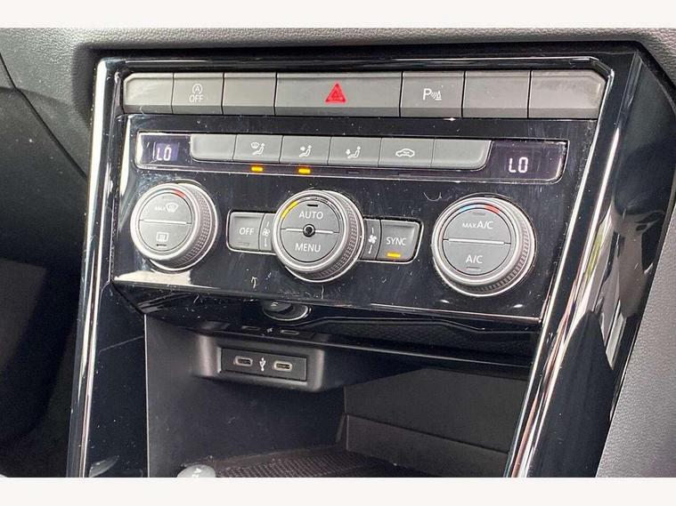 'Lights On' Reminder warning buzzer, Adaptive cruise control with front assist, radar sensor controlled distance monitoring, city emergency braking, App-Connect, Automatic start/stop system, Bluetooth telephone and audio connection for compatible devices, Car information display, Driver tips and journey analysis, Lane assist with warning text instrument cluster, Modified key software - reduce switch off time for key status change to Long no motion, Multifunction computer with visual gear change recommendation for fuel consumption, Service interval indicator, Think blue trainer driver tips and journey analysis, Warning sound and light for doors and tailgate open, Warning sound and light for front seatbelts unfastened, Wireless app connect for apple carPlay, Battery regeneration during braking, Centre arm rest including USB type C interface and USB charging socket, DAB Digital radio, Diversity antenna for FM reception, Front USB type C Interface 2X and USB charging socket, Multi device interface (MDI) with USB connection, Music playback - MP3, WMA and AAC files, Premium USB cable in choice of either Apple or Android smartphone compatibility, SD card slot, Simultaneous pairing of 2 compatible mobile devices, Single CD player, glovebox mounted, SMS functionality - read, compose and send SMS messages using touch-screen display, Title and cover art display, Auto dimming interior rear view mirror, Automatic hazard lights activation under emergency braking, Black grained lower door protectors, Black grained wheel arches, Body colour bumpers with silver metallic underbody fascia, Body colour door handles, C pillar decorative film in dark grey/black with graphic pattern, Chrome trim on upper and lower radiator grille, Dusk sensor, Electrically foldable, adjustable and heated door mirrors with puddle lights and reverse activated kerb-view adjustment on passenger's door mirror, Exhaust tailpipes in black, Front and rear electric windows, Front windscreen wiper with intermittent wipe and 4 position delay, Fully galvanised body, Heated rear window, High level 3rd brake light, LED dipped and main beam headlights with automatic range adjustment including signature LED daytime running lights, LED rear number plate lights, Manual coming/automatic leaving home lighting function, Rain sensor, Rear tinted glass from B-pillar backwards approx 65% tinted, Rear wash/wipe with intermittent wipe setting, Trim strips on grille and vehicle side, Volkswagen roundel, 12V socket in centre console storage area, 3 rear head restraints, 4 load lashing points in luggage compartment, Black roof lining, Climate control - 2 zone electronic air conditioning with automatic air recirculation and allergy filter, Drawer under drivers seat, Front centre armrest with storage compartment, longitudinal and height adjustable and two rear air vents, Front cupholders x 2, Front seat back storage pockets, Glovebox, Height adjustable front seats, Height/reach adjust steering wheel, Instrument lighting, white adjustable panel illumination, Interior light in footwell, Isofix easy fit child seat preparation for 2 outer rear seats, Leather gearshift knob, LED interior light with switch off delay/dimmer and 2 front/rear LED reading lights, Load through provision with single cup holder when folded down, Luggage compartment cover, removable, Luggage compartment lighting, Split folding rear seat backrests with centre armrest, Storage compartment in left and right luggage area, Storage compartment in rear doors, Storage compartments in driver and front passenger doors, Sunvisors with illuminated vanity mirrors, Three spoke multi-function leather trimmed steering wheel and gearknob, White ambient lighting, 3 rear three point seatbelts, ABS, Curtain airbags, Driver and front passenger safety-optimised head restraints, Drivers and front passengers airbags with passengers deactivation switch, Drivers seatbelt reminder, Electronic parking brake with auto hold, Electronic stability control (ESC) includes ASR, EDL, EDTC and trailer stabilisation function, Front seat side impact airbags, Predictive pedestrian protection, Rigid safety cell with front and rear crumple zones, Three point height adjust front seatbelts + pretensioners, Tyre pressure loss indicator, Ventilated front and rear disc brakes, Volkswagen roadside assistance, Alarm with remote central locking and interior protection, Electronic engine immobiliser, Remote central locking with 2 remote folding keys, Black decorative trims, Piano black decorative inserts in dash, centre console and door panel, 18" Arlo black diamond turned surface alloy wheels,