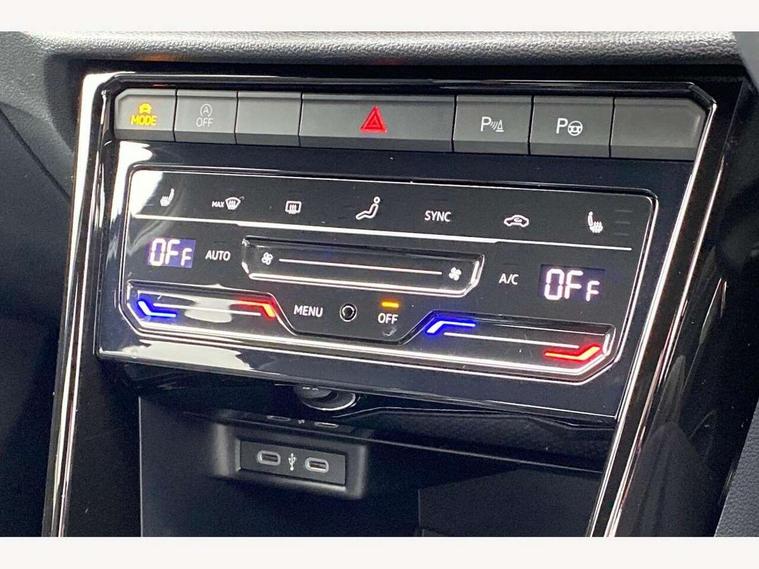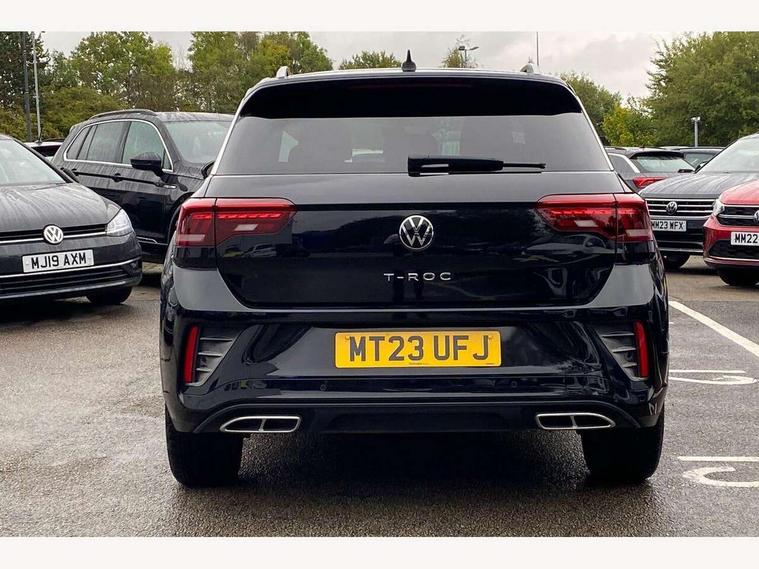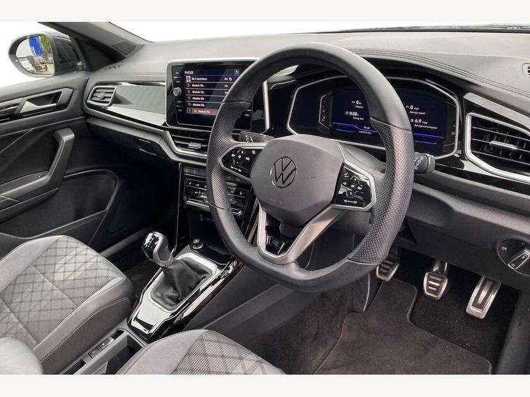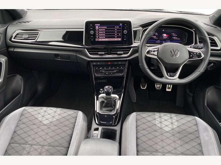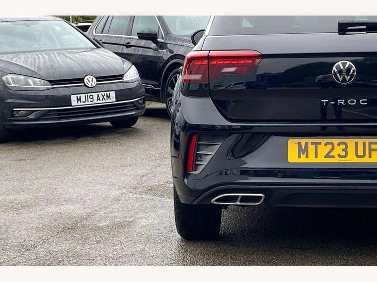 10.25" Digital cockpit pro, Bluetooth mobile phone interface, Driver alert system with fatigue detection, Driver tips and journey analysis, Emergency call service, Lane keeping system Lane Assist, Modified key software - reduce switch off time for key status change to Long no motion, Online services, Park assist including front and rear parking sensors, Service interval indicator, Tailgate/trunk lid release from outside, Think blue trainer driver tips and journey analysis, Warning sound and light for front seatbelts unfastened, Wireless app connect, Battery regeneration during braking, Start/stop function with battery regeneration, Diversity antenna for FM reception, Front and rear 6 speakers, Music playback - MP3, WMA and AAC files, Premium USB cable in choice of either Apple or Android smartphone compatibility, SD card slot, Simultaneous pairing of 2 compatible mobile devices, Title and cover art display, We Connect and We Connect Plus functionality, 3rd brake light, Auto dimming interior rear view mirror, Automatic hazard lights activation under emergency braking, Automatic headlight control with LED separate daytime running lights with coming/leaving home function, Extended roof spoiler, Exterior mirrors aspherical on driver side, convex on front passenger side, External USB type C socket and charging sockets, Front windscreen wiper with intermittent wipe and 4 position delay, Heated rear window, LED Plus headlamps, LED rear combination lamps, LED rear number plate lights, LED tail lamp rear comination lamps, Power windows with comfort operation and circuit breaker, R-Line design body coloured bumpers, Rain sensor, Rear exhaust tailpipe, Rear fog light on one side and reversing lights on both sides, Rear side wing doors, Rear wash/wipe with intermittent wipe setting, Remote electrically foldable door mirrors, puddle lights and reverse activated passenger's door mirror, 12V power socket in centre console, 3 rear head restraints, 3 seat bench in 2nd row, 4 load lashing points in luggage compartment, Air care climatronic air conditoning system with active combination filter and 2-zone temperature control, Black roof lining, Chrome plated radiator grille inserts, air vent surrounds and light switch surrounds, Door and side trim panel with leatherette insert, Drawer under drivers seat, Front + rear carpet mats, Front centre armrest, Front cupholders x 2, Front footwell illumination, Front reading light, Front scuff plates with R logo, Instrument lighting, white adjustable panel illumination, Interior ambient lighting and surround lighting, Interior light delay, Isofix child seat preparation, Leather gearshift handle, Load-through provision with cup holder when folded down ('Unsplit rear seat bench, split folding backrest, with centre armrest), Luggage compartment lighting, Single front passenger seat, Stainless steel pedals, Storage compartment in left and right luggage area, Storage compartment in rear doors, Storage compartments in driver and front passenger doors, Sunvisors with illuminated vanity mirrors, Variable boot floor, height adjustable and removable, Driver assistance pack without proactive passenger protection - T-Roc, 3 point height adj front seatbelts + pretensioners, 3 point seatbelts in outer rear with ECE label, ABS, Child locks on rear doors, Driver and front passenger airbag with front passenger airbag deactivation, Driver and front passenger safety-optimised head restraints, Drivers seatbelt reminder, Electronic parking brake, Electronic Stability Control (ESC) inc EDL (Electronic Differential Lock) and ASR (Traction Control), Front and rear passengers curtain airbag system including front side airbags, Front assist with city emergency braking and pedestrian monitoring, Front seat side impact airbags, Hill start assist, Predictive pedestrian protection, Rear disc brakes, Single tone horn, Tyre pressure loss indicator, Volkswagen roadside assistance, Alarm with interior protection, Anti-theft alarm system with interior monitoring, backup horn, and towing protection, Remote central locking with SAFELOCK, radio remote control with 2 remote control folding keys, Trims for alloy wheels,