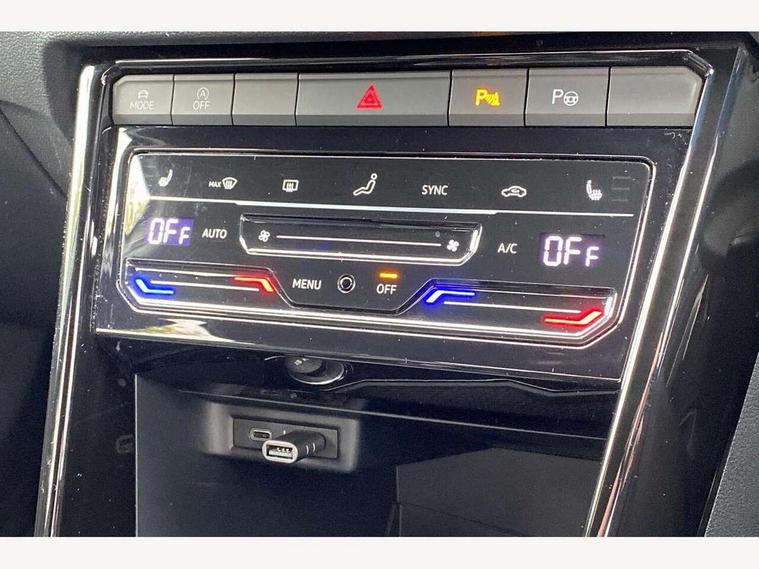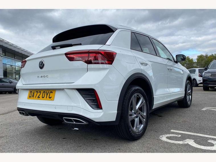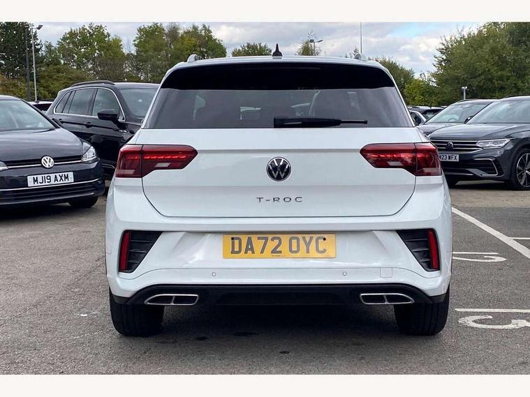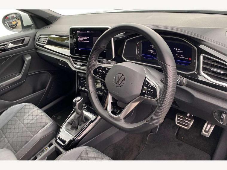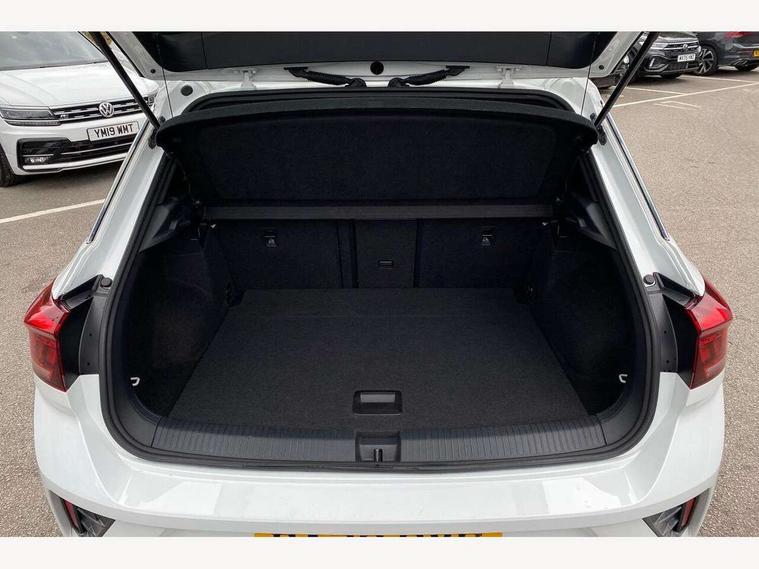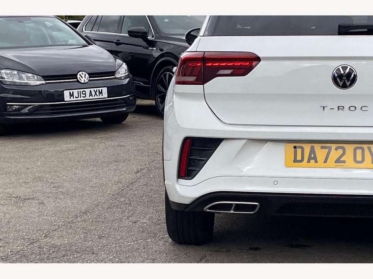 10.25" Digital cockpit pro, Bluetooth mobile phone interface, Driver alert system with fatigue detection, Driver tips and journey analysis, Emergency call service, Lane keeping system Lane Assist, Modified key software - reduce switch off time for key status change to Long no motion, Online services, Park assist including front and rear parking sensors, Service interval indicator, Tailgate/trunk lid release from outside, Think blue trainer driver tips and journey analysis, Warning sound and light for front seatbelts unfastened, Wireless app connect, Battery regeneration during braking, Start/stop function with battery regeneration, Diversity antenna for FM reception, Front and rear 6 speakers, Music playback - MP3, WMA and AAC files, Premium USB cable in choice of either Apple or Android smartphone compatibility, SD card slot, Simultaneous pairing of 2 compatible mobile devices, Title and cover art display, We Connect and We Connect Plus functionality, 3rd brake light, Auto dimming interior rear view mirror, Automatic hazard lights activation under emergency braking, Automatic headlight control with LED separate daytime running lights with coming/leaving home function, Extended roof spoiler, Exterior mirrors aspherical on driver side, convex on front passenger side, External USB type C socket and charging sockets, Front windscreen wiper with intermittent wipe and 4 position delay, Heated rear window, LED Plus headlamps, LED rear combination lamps, LED rear number plate lights, LED tail lamp rear comination lamps, Power windows with comfort operation and circuit breaker, R-Line design body coloured bumpers, Rain sensor, Rear exhaust tailpipe, Rear fog light on one side and reversing lights on both sides, Rear side wing doors, Rear wash/wipe with intermittent wipe setting, Remote electrically foldable door mirrors, puddle lights and reverse activated passenger's door mirror, 12V power socket in centre console, 3 rear head restraints, 3 seat bench in 2nd row, 4 load lashing points in luggage compartment, Air care climatronic air conditoning system with active combination filter and 2-zone temperature control, Black roof lining, Chrome plated radiator grille inserts, air vent surrounds and light switch surrounds, Door and side trim panel with leatherette insert, Drawer under drivers seat, Front + rear carpet mats, Front centre armrest, Front cupholders x 2, Front footwell illumination, Front reading light, Front scuff plates with R logo, Instrument lighting, white adjustable panel illumination, Interior ambient lighting and surround lighting, Interior light delay, Isofix child seat preparation, Leather gearshift handle, Load-through provision with cup holder when folded down ('Unsplit rear seat bench, split folding backrest, with centre armrest), Luggage compartment lighting, Single front passenger seat, Stainless steel pedals, Storage compartment in left and right luggage area, Storage compartment in rear doors, Storage compartments in driver and front passenger doors, Sunvisors with illuminated vanity mirrors, Variable boot floor, height adjustable and removable, Driver assistance pack without proactive passenger protection - T-Roc, 3 point height adj front seatbelts + pretensioners, 3 point seatbelts in outer rear with ECE label, ABS, Child locks on rear doors, Driver and front passenger airbag with front passenger airbag deactivation, Driver and front passenger safety-optimised head restraints, Drivers seatbelt reminder, Electronic parking brake, Electronic Stability Control (ESC) inc EDL (Electronic Differential Lock) and ASR (Traction Control), Front and rear passengers curtain airbag system including front side airbags, Front assist with city emergency braking and pedestrian monitoring, Front seat side impact airbags, Hill start assist, Predictive pedestrian protection, Rear disc brakes, Single tone horn, Tyre pressure loss indicator, Volkswagen roadside assistance, Alarm with interior protection, Anti-theft alarm system with interior monitoring, backup horn, and towing protection, Remote central locking with SAFELOCK, radio remote control with 2 remote control folding keys, Trims for alloy wheels,