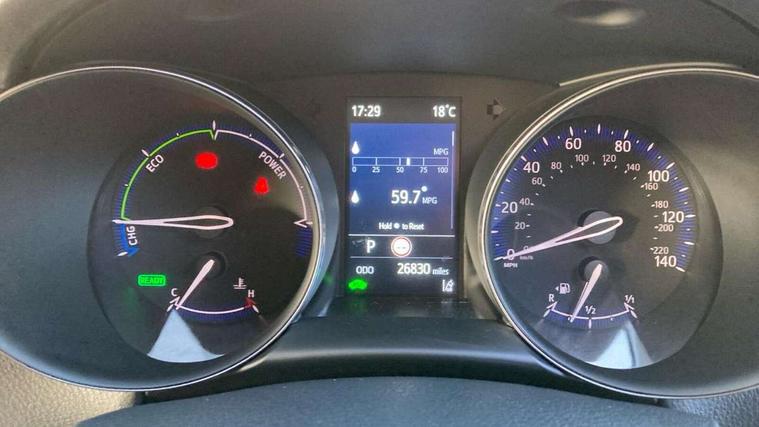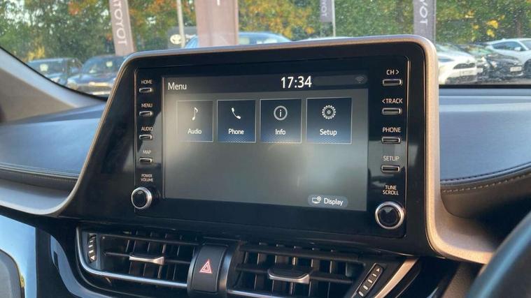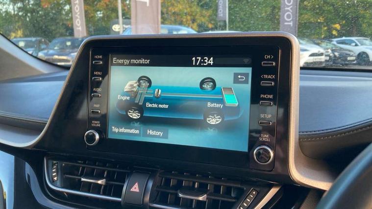 4.2" coloured TFT screen for multi-information display, Adaptive cruise control, Bluetooth connectivity, E-call, Electric power steering, Hybrid system indicator, Lane departure alert with steering control, Remote boot door release in cabin, Remote boot door release in key, Reversing camera, Road sign assist - RSA, Trip computer, Voice recognition, Vehicle Stability Control (VSC), 6 speakers, AM/FM radio, DAB Radio (Digital Audio Broadcasting), Toyota touch 2 multimedia system with 8" display, USB connector, Wi-fi connectivity, Anti-jam protection on power windows, Auto high beam, Auto up and down function on all power windows, Automatic headlights, Automatic headlights cut-off, Black and body coloured rear bumper, Black upper front grille, Body colour door handles, Body colour door mirrors, Body colour front spoiler lip, Body coloured front bumper, Boot door release with push button, Electric heated door mirrors, Follow me home headlights, Front and rear power windows, Front fog lights, Honeycomb lower front grille, LED daytime running lights, LED front light guide, LED High mounted stop light, LED rear brake lights, LED rear combination lights, Manual headlight levelling, Manually retractable door mirrors, Noise reduction layer on front windows and windscreen, Power adjustable door mirrors, Rain sensor, Rear side wing doors, Rear spoiler, Rear tailgate, Rear window defogger, Rear window wiper, Reflective LED headlights, Shark fin antenna, UV-filter on driver and passenger windows, UV-filter on rear windows, 12v power outlet - front, 3 rear headrests, 3 seat bench in 2nd row, 3 spoke leather steering wheel, 60/40 split folding rear seat, Adjustable rear headrests, Adjustable speed limiter switch on steering wheel, Assist grips front and centre pillar, Audio and telephone switches on steering wheel, Black front door assist grips, Boot light, Chrome interior door handles, Cloth upholstery, Driver and front passenger personal light, Driver and front passenger Whiplash Injury Lessening seats, Dual zone automatic air conditioning, Floor mats, Front cupholders, Front head restraints, Front sports seats, Glovebox with internal light, Hard tonneau cover, Hooks for luggage holding net, Humidifying Nanoe air purifier, Illuminated entry system, Isofix attachments on rear seats, Leather gearshift, Light on driver sun visor, Light on passenger sun visor, Manual telescopic steering wheel, Manual tilt steering wheel, Manually adjustable lumbar support on driver seat, Manually height adjustable driver seat, Manually height adjustable front passenger seat, Manually reclining driver seat, Manually reclining front passenger seat, Manually sliding driver seat, Manually sliding front passenger seat, Microphone on front personal light, Mirror on driver sun visor, Mirror on passenger sun visor, Multimedia switches on steering wheel, Pollen filter, Shopping bag hooks, Single front passenger seat, Slow opening on lower glovebox, Voice recognition switch on steering wheel, 16 Disk front wheel brake, 3x3 point rear seatbelts, ABS+EBD+Brake assist, Electronic parking brake, Front and rear seatbelt reminder, Front passenger airbag on/off switch, Hill start assist control (HAC), Pre collision system with pedestrian detection, Pre-tensioners and force limiters, Rear door child safety locks, SRS Airbags - Driver + Front passenger, front side, front and rear curtain and driver's knee airbags, Toyota safety sense, Tyre pressure monitoring system, Acoustic vehicle alert system (AVAS), Glass-breaking alarm sensors, Immobiliser, Intrusion alarm, Intrusion sensor, Motion sensor alarm, Power door locks, Power passenger window lock, Remote central locking, Black lower dashboard, Black upper dashboard, Grey deco line on upper dashboard, Matte black centre console, Tyre repair kit,
