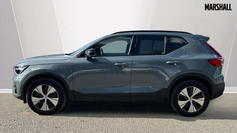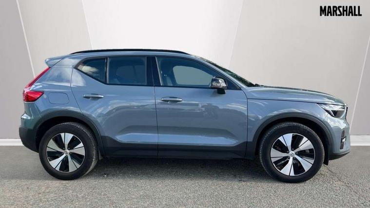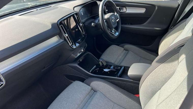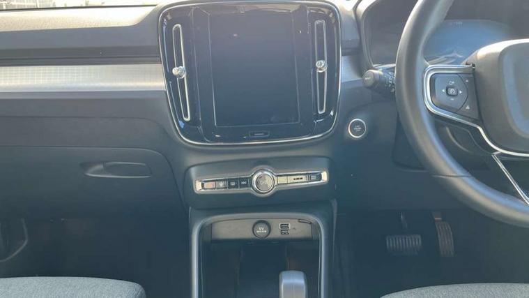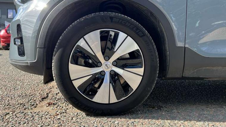 12.3" Active TFT crystal driver's instrument display, 360 degree surround view parking camera, 9" centre console portrait touch screen, Adjustable steering wheel force, Bluetooth hands free telephone kit, Cruise control, Drive mode selector, E-call, Front park assist, Hands free power tailgate, Lane keep assist with driver alert control, Oncoming Lane Mitigation, Rear park assist, Sensus navigation with European mapping and traffic information, Speed limiter, Speed sensitive steering, Voice activated control for key functions, Wireless Smartphone Integration includes Apple CarPlay and Android auto, Wireless/Inductive Mobile Phone Charging, 3.7 kW monophase on board charger, 7m 10amp charge cable with 3 pin plug and 7m 1 phase 16amp type 2/mode 3 charge cable, Dynamic chassis, Electric front axle drive, Recharging port located in nearside front wing, DAB Digital radio, Low speed exterior sound speaker, Sensus connect with high performance sound, 8 speakers/250W, front USB and 2 rear type C USB, Steering wheel mounted remote controls, Adaptive brake lights with high level LED brake lights, Auto dimming feature for exterior door mirrors, Auto dimming interior mirror, Automatic headlamp levelling, Automatic LED Headlights + Active high beam incorporating daytime running lights, Front and rear electric windows, Front recharge aluminium tread plates, High gloss black front and rear skid plate, High gloss black mesh front grille with high gloss black surround, High gloss black window trim, Home safe and approach lighting, Integrated roof rails in high gloss black, LED front fog lights, Puddle lights, Rain sensor with automatic windscreen wiper activation, Rear side wing doors, Rear wiper, Roof antenna, Roof spoiler, Visible VIN plate, 12V socket in front tunnel console and cargo compartment, 2 zone electronic climate control with clear zone air quality system and pollen filter, 3 seat bench in 2nd row, 3 Spoke tailored steering wheel with chrome trim, 60/40 versatile split folding rear seat, A-pillar parking ticket holder, C-pillar Recharge logo, Centre console cupholders and storage, Floor mats, Front door pocket, front cupholder, ambient front door, rear reading, rear courtesy, instrument panel and tailgate lighting, Front footwell illumination, Front headrests, Front reading light and theatre lighting, Front seat cushion extensions, Front tunnel pocket, Glovebox bag hook, Heated front seats, Height adjustable passenger seat, Height/reach adjustable steering column, High gloss centre tunnel deco, Illuminated glovebox, Illuminated luggage compartment, Illuminated vanity mirrors, Isofix attachments on rear seats, Load protection net, Multi directional lumbar support, Power driver seat with memory + exterior mirrors memory, Rear armrest / integral cup holders / storage tray, Rear headrests, Single front passenger seat, Underfloor cargo storage, Climate pack without heated front seats - XC40, 3x3 point rear seatbelts, City safety includes pedestrian, cyclist and large animal detection and front collision warning with full auto brake, Drivers knee airbag, Dual stage driver/passenger airbags, Electronic parking brake with auto hold, First aid kit, Front and outer rear seatbelt reminder and pretensioners, Front seats SIPS airbags, Hill descent control, Hill start assist, Inflatable curtain, Passenger airbag cut-off device, Power child locks on rear doors, Road sign information display, Run off Road Mitigation, Run off Road Protection, SIPS (Side Impact Protection System), Slippery road and hazard light alert, Stability and Traction Control with Spin control, Engine Drag Control and Corner Traction Control, Tyre pressure monitoring system, Vehicle deceleration control with Anti-lock Brake System, Electronic Brake Distribution and Emergency Brake Assist, Warning triangle, WHIPS whiplash protection system - front, Anti-theft alarm including immobiliser/volume sensor + level sensor, Care key with user defined top speed, Key integrated remote control central locking + fuel flap with deadlocking system and auto open/close power windows, Keyless drive includes keyless entry and keyless start, Locking wheel nuts, Private locking for tailgate,