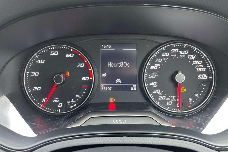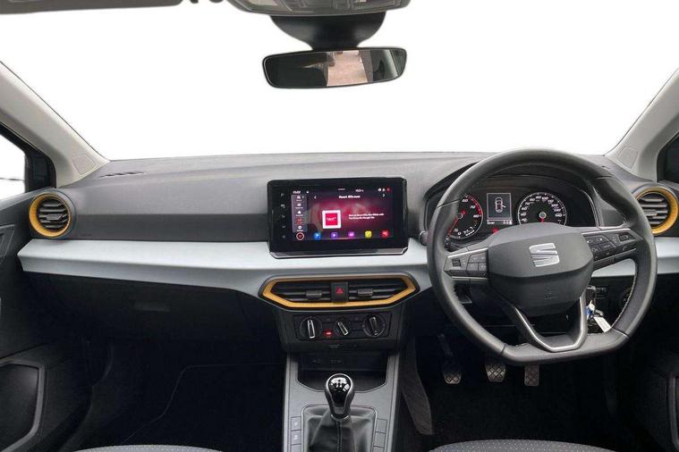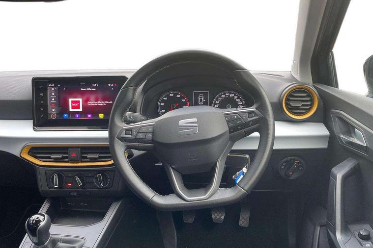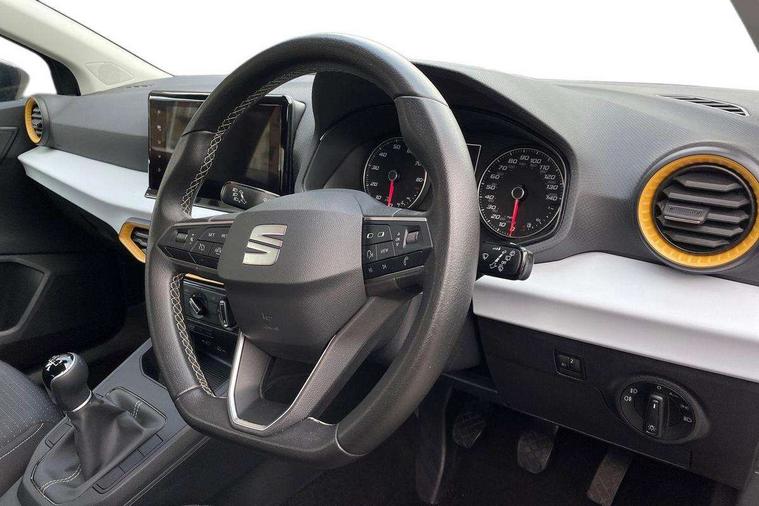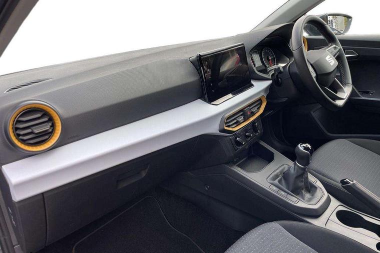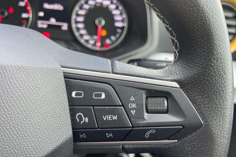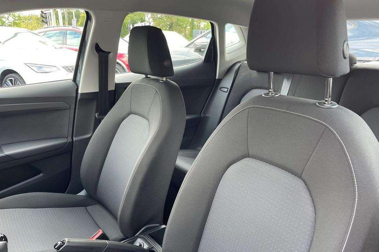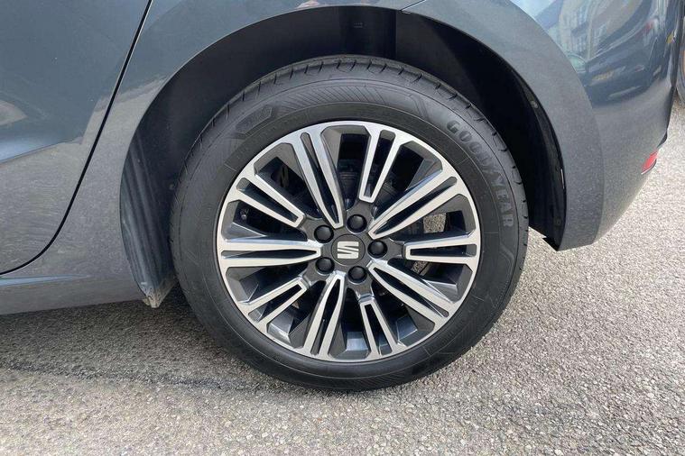 'Lights On' Reminder warning buzzer, 9.2" touchscreen navigation system with type C USB socket, Voice control and DAB/AM/FM radio, Auto start and stop system, Bluetooth audio streaming with handsfree system, Cruise control, Digital clock, E-call, Full link smartphone integration with mirror link, wireless apple carplay, Google android auto + USB Type C cable for apple and android devices, Lane assist, Low fuel warning light, Outside temperature gauge, Power Steering, Seat connect with safety, service, remote and online, SEAT logo boot release, Speed limiter, Trip computer, Comfort suspension, Auxiliary input socket, Radio/MP3 player, SD card slot, Steering wheel mounted controls, Anti theft roof antenna, Body colour bumpers, Body colour door handles, Body colour door mirrors, Dimming interior rear view mirror, ECO LED automatic headlights and LED daytime running lights, Electric front windows, Electric headlight adjustment, Electrically adjustable door mirrors, Front/rear fog lights, Halogen tailights, Rain sensor, Rear side wing doors, Rear wiper, Third brake light, 3 seat bench in 2nd row, 60/40 split folding rear seat, Air conditioning with dust and pollen filter, Chrome interior detailing and grey headlining, Cloth upholstery, Comfort seats, Front courtesy lights, Front cupholders x 2, Front reading lights, Gear shift indicator, Glovebox, Height adjustable front and rear headrests (five), Height adjustable front seats, Height/reach adjust steering wheel, Illuminated boot, Instrument lighting with brightness control, Isofix, Leather multifunction flat bottomed sports steering wheel, Passenger sunvisor, Single front passenger seat, Sunvisors with mirror and driver side card holder, 3 point seatbelts on all 3 rear seats, ABS, Active front headrests, Child locks on rear doors, Electronic stability control, Energy recovery system, Front assist forward collision warning and autonomous emergency braking, Front driver and passenger side airbags with curtain airbag and front passenger airbag deactivation, Hill hold control, Multi-Collision braking, Seat belt reminder for front and rear seats, Tiredness recognition system, Tyre pressure monitoring system, Electronic engine immobiliser, Locking wheel bolts, Remote central locking + deadlocks, 16" Design machined alloy wheels in Nuclear grey,