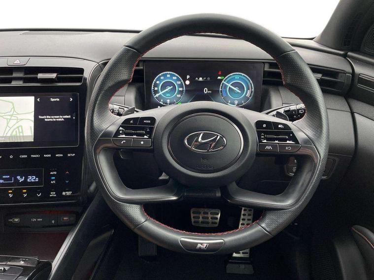 10.25" super vision instrument cluster, 10.25" touchscreen satellite navigation with mapcare and live services, Apple car play/Android Auto, Bluetooth system, Cruise control, Digital clock, Drive mode selector, Driver attention warning, E-call, Emergency stop signalling system, Forward Collision Avoidance Assist (FCA) - Car, Pedestrian and Cycle, Front and rear parking sensors, Intelligent speed limit assist, Lane follow assist, Lane keep assist, PAS, Rev counter, Reversing camera, Tailgate open warning light, Trip computer, Trip odometer, Voice recognition, Water temperature gauge, Windscreen washer fluid sensor and warning indicator, Wireless phone charging pad, Shift by Wire Gear Selector (SBW), 2 front and 2 rear speakers with 2 tweeters, DAB Digital radio, Steering wheel mounted audio/phone controls, USB connections in front and rear, Adjustable intermittent front windscreen wipers with aero wiper blade, Auto dimming rear view mirror, Automatic defog system, Automatic headlights with dusk sensor, Automatic windscreen wipers with rain sensor, Black headlamp bezels, Body colour bumpers, Body colour door mirrors with integrated indicators, Body colour exterior door handles, Body coloured wheel arches, Dark chrome effect radiator grille, Electrically adjustable, heated and power folding door mirrors, Follow me home headlights, Front and rear electric windows with anti-trap mechanism and one touch control, Front fog lights, Gloss black door frame moulding, High beam assist, High level third brake light, LED daytime running lights, LED rear lights, MFR - LED headlight with static bending light, N Line body coloured side mouldings, N Line design front grille, N Line Exclusive front and rear bumpers, N Line rear spoiler with fins, Positioning Lights - LED, Privacy glass - Rear windows and tailgate, Rear side wing doors, Rear wash/wipe with intermittent wipe setting, Roof rails, Silver front and rear skid plate, Sports twin tip exhaust and diffuser, Tinted glass with windscreen shade band, Trailer stability assist, 12V power outlets in front console and luggage compartment, 3 seat bench in 2nd row, 40/20/40 split folding rear seat, Adjustable head restraints (Up and down), Alloy pedals, Ambient lighting, Black headliner, Cupholders in rear armrest, Door courtesy lights, Driver and passenger sunvisors with illuminated LED vanity mirrors, Driver's seat electric lumbar support, Driver's seat manual height adjust, Dual zone climate control, Front and rear door pockets, Front armrest with storage box, Front door pocket bottle holders, Front passenger seat lumbar adjustment, Heated front seats, Height/reach adjustable steering column, Illuminated/air conditioned glove compartment, ISOFIX child seat anchorage points attached on outer rear seats, Leather wrapped steering wheel, Leather/suede upholstery, Luggage area underfloor compartment, Luggage compartment lighting, Luggage cover, Luggage hooks, Manual height adjustable front passenger seat, Map and reading lights, N Line logo on steering wheel, Reclining rear seats, Retractable load cover, Single front passenger seat, Sunglasses holder, 3x3 point rear seatbelts, Active bonnet, Airbag - Front, front side, curtain and centre front airbags, Anti-lock brake system (ABS), Brake assist function, Childproof rear door locks, Curtain airbag roll over sensor, Downhill brake control, Electric parking brake with auto hold function, Electronic stability control, Front and rear seatbelt reminder, Front passenger airbag deactivation switch, Front seatbelt pretensioners, Hill start assist control (HAC), Multi-Collision braking, Outer rear seatbelt height adjustment, Seatbelt height adjustment for front seats, Traction control, Tyre pressure monitoring system with individual tyre pressure display - TPMS, Vehicle stability management, Alarm, Deadlocks, Immobiliser, Locking wheel nuts, Remote control central locking, Smart key with keyless entry and engine start/stop button, Speed sensitive auto door locking, 19" Alloy wheels, Tyre repair kit,