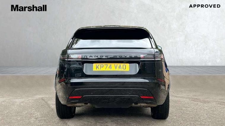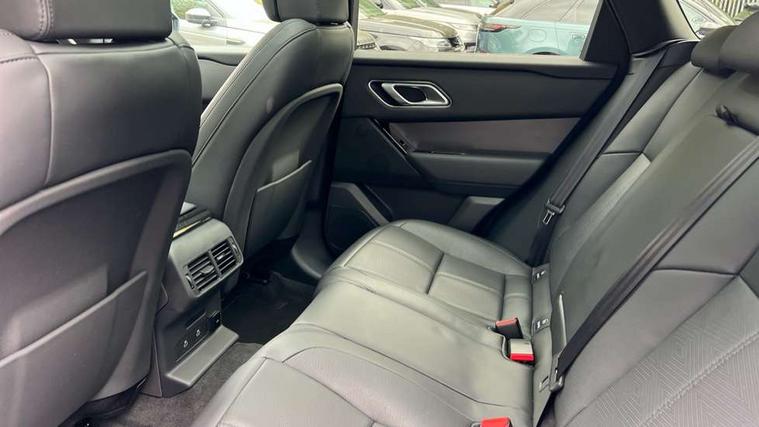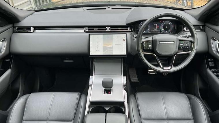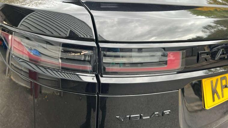 Adaptive cruise control with steering assist, Android Auto, Apple CarPlay, Blind spot assist, Bluetooth connectivity, Brake pad wear indicator warning light, Driver condition monitor, eCall emergency call system, Front and rear parking aid, InControl remote, Land Rover InControl apps, Lane keep assist, Pivi pro with connected navigation, Rear collision monitor, Rear traffic monitor, Service indicator, Speed proportional electronic power assisted steering (EPAS), Traffic sign recognition with adaptive speed limiter, Trip computer, Voice control system, Wireless device charging, 7kw on board charger, 8 speed automatic transmission, AC/DC charging, Adaptive dynamics, All terrain progress control, Coil suspension system, Home charging cable, Open differential with torque vectoring by braking, Public charging cable, Single speed transfer box, DAB radio, Steering wheel mounted controls, 3rd brake light, Acoustic laminated windscreen, Auto dimming interior rear view mirror, Automatic headlamp levelling, Automatic headlights, Body coloured bumpers, Boot protection plate, Electric windows with one touch open/close and anti trap, Flush deployable exterior door handles, Follow me home headlights, Heated rear window with timer, Heated washer jets, Heated windscreen, Metal front tread plates, Metal load space scuff plates, Pixel LED headlights with signature DRL, Power fold, auto-dimming, heated door mirrors with memory and approach lights, Rain sensor windscreen wipers, Rear animated directional indicators, Rear fog lights, Rear side wing doors, Rear wash/wipe, Tailgate/boot lid spoiler, Trailer stability assist, Velar badge, 3 seat bench in 2nd row, Ambient lighting, Bright metal pedals, Carpet mats, Driver/passenger sunvisors with illuminated vanity mirrors, Ebony morzine headlining, Electrically adjustable steering column, Extended leather upgrade, Heated steering wheel, Isofix system on outer rear seats, Loadspace cover, Overhead lighting console, Overhead stowage for sunglasses, Passive front headrests, Rear air vents, Rear centre headrest, Single front passenger seat, Twin front cupholders, Twin sliding front centre armrest, Online pack with data plan - Velar, Power socket pack 2 - Velar, 380mm front brakes and 325mm rear brakes, 3x3 point rear seatbelts, Anti-lock braking system (ABS), Cornering brake control, Curtain airbags, Customer configurable autolock, Door side intrusion beams, Driver airbag, DSC - Dynamic Stability Control, Electronic brake force distribution, Electronic parking brake, Electronic traction control, Emergency braking, Front and rear seatbelt reminder, Hill descent control, Hill launch assist, Low traction launch, Passenger airbag, Power operated child locks, Rear airbags, Roll stability control, Side airbags, Tyre pressure monitoring system (TPMS), Unpainted brake calipers, Global lock and unlock switch on driver door, Immobiliser, Intrusion sensor, Keyless entry, Lock only switch on front passenger door, Locking wheel nuts, Perimetric alarm, Remote central locking, All season tyres,
