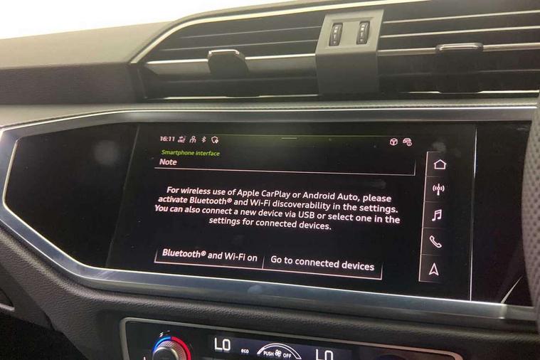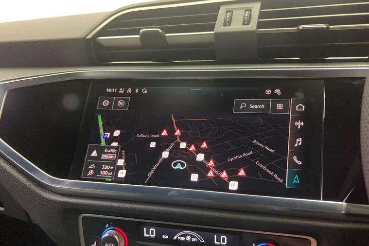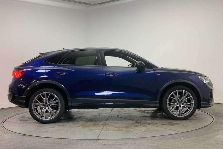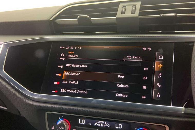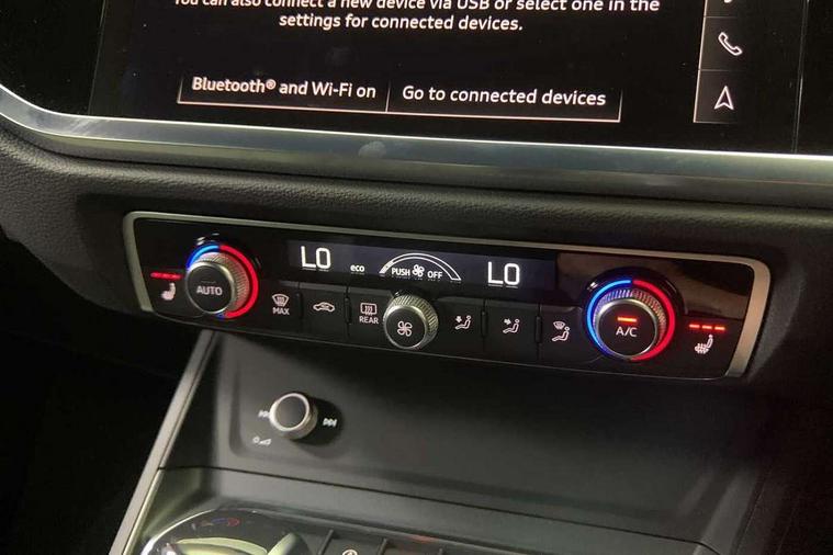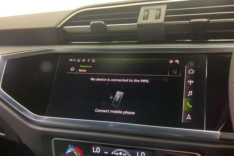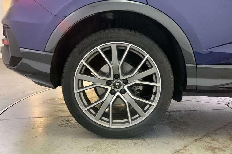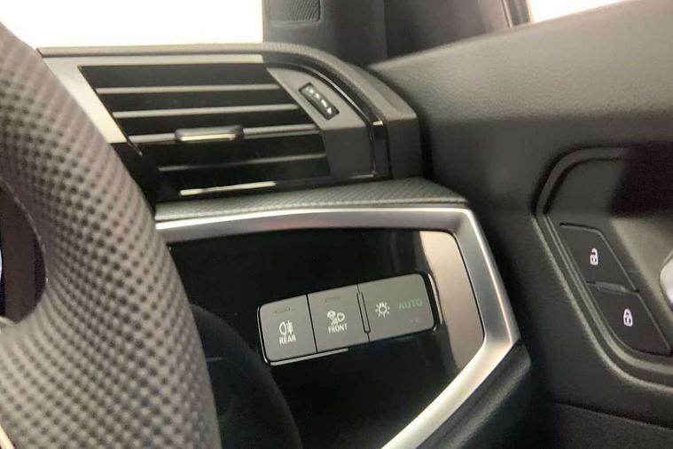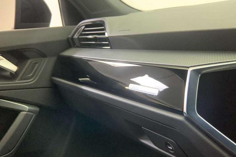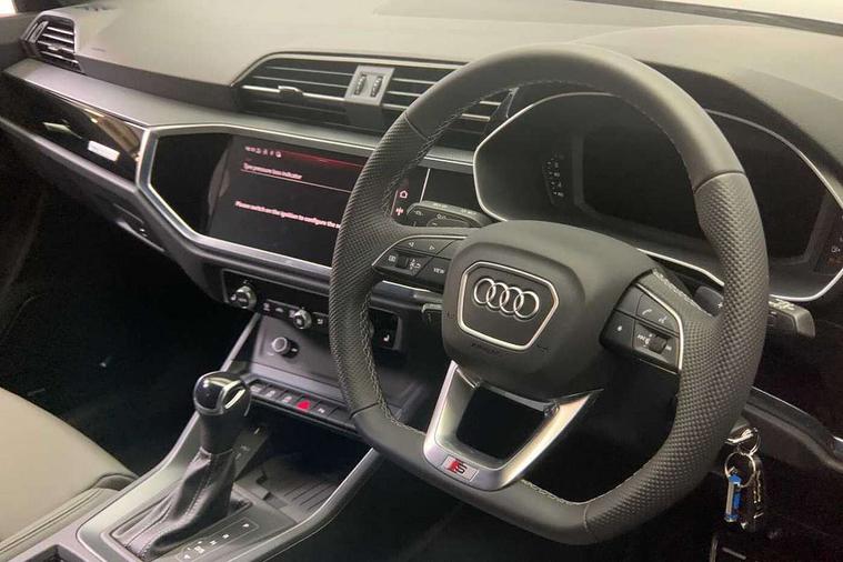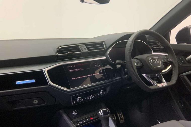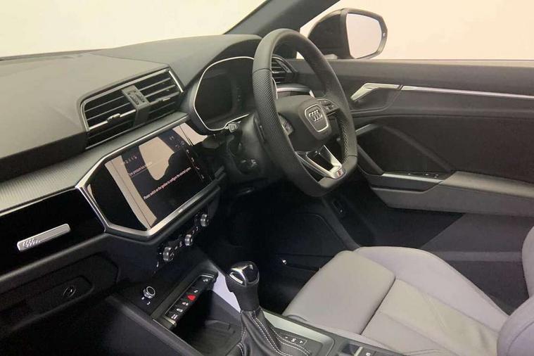 Audi connect safety and service, Audi drive select, Audi lane departure warning, Audi Virtual Cockpit - 10.25" display, Bluetooth interface, Camera based traffic sign recognition, Distraction and Fatigue warning, Legal emergency call, MMI Navigation Plus with high resolution 10.1 inch touchscreen colour display, Power operated tailgate, Progressive steering, Service interval indicator, Smartphone interface includes wireless Apple carplay/Android Auto, Start stop system with recuperation, Voice control system with natural language interaction, Sports suspension, 2 USB-C ports with charge and data functions, 6 passive loudspeakers, DAB digital radio module, Acoustic windscreen, Audi Beam uses LEDs to project the Audi logo onto the ground as you exit your Q3, Auto dimming door mirrors, Auto dimming frameless rear view mirror, Electrically folding, adjustable and heated door mirrors with integrated LED side indicators and kerb view function for passenger side, Front and rear electric windows, Front fog lights, Front underbody protection in manhattan grey paint finish, High gloss black finish B and C pillars, Honeycomb design radiator grille in matt anthracite black, LED Dynamic rear indicators, LED headlights with LED daytime running lights, LED rear lights, LED third brake light, Privacy glass dark tinted rear and rear-side windows (from B-pillar backwards), Rain and light sensors, Rear diffuser grille in grained matt black, Rear diffuser strip in matt anthracite black, Rear side wing doors, Rear underbody protection in matt black, Rear wiper, S line front and rear bumpers and side skirts in contrasting Manhattan grey paint finish, Variable front intermittent wipers, 12V socket in rear centre console, 3 seat bench in 2nd row, 40:20:40 folding with manual adjustment for 60:40 forwards/backwards position and backrest angle, Adjustable rear seat bench/backrest with centre armrest and cupholder, Black carpet mats, Black cloth headlining, Dual zone electronic climate control, Electric lumbar support, Front and rear black floor mats with contrast stitching in rock grey, Front and rear headrests, Front centre armrest, Height and reach adjustable steering wheel, Illuminated door sill trims with S logo, ISOFIX child seat mounting for front passenger with airbag deactivation and outer rear seat including top tether attachment point for outer rear seats, Luggage compartment sill protection in stainless steel, Manual front seats with height adjustment, Perforated leather gearknob, Single front passenger seat, Stainless steel pedals, Twin leather upholstery with front sport seats + S embossing, Black styling pack - Q3, Non smoking pack - Q3, 3x3 point rear seatbelts, 6 airbags - Driver, front passenger, curtain and side windows, Audi pre-sense front with pedestrain and cyclist recognition, Electrically operated child locks on rear doors, Electromechanical parking brake, Electronic stabilisation control including ABS, ASR and EDL, Front seatbelt reminder, Hill descent control, Hill hold assist, Pre sense basic, Seatbelt monitoring, Tyre pressure warning, Warning triangle and first aid kit, Anti theft wheel bolts, Immobiliser, Remote central locking, Thatcham approved category 1 anti theft alarm, Aluminium look interior elements, Detail dashboard around MMI touch colour display in glass look, black with surround in aluminium look, Leatherette door armrest, Piano black inlay,
