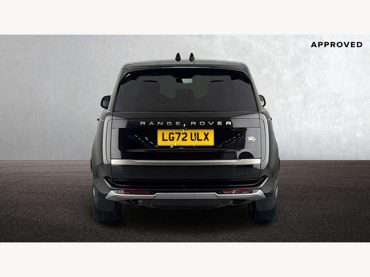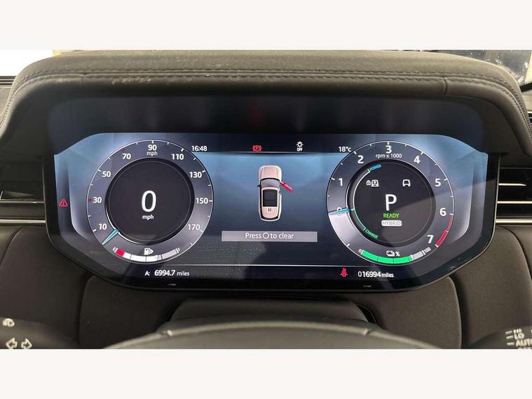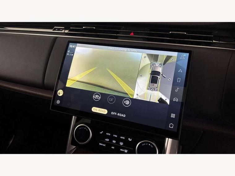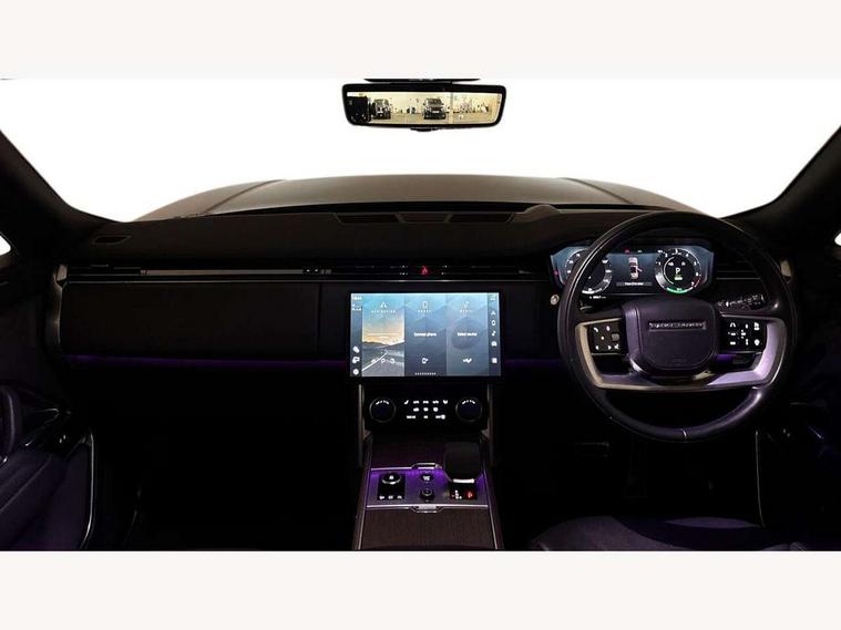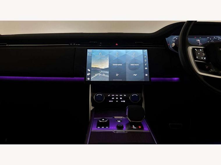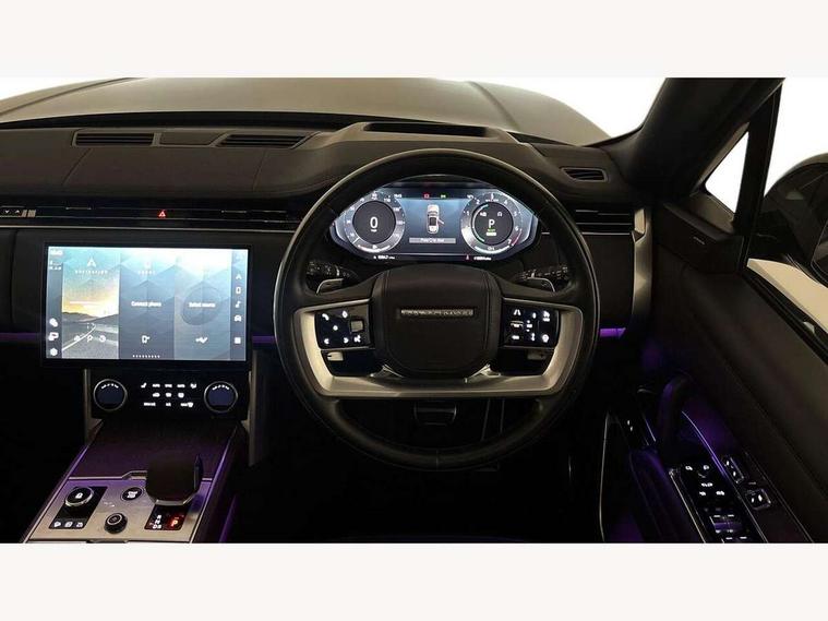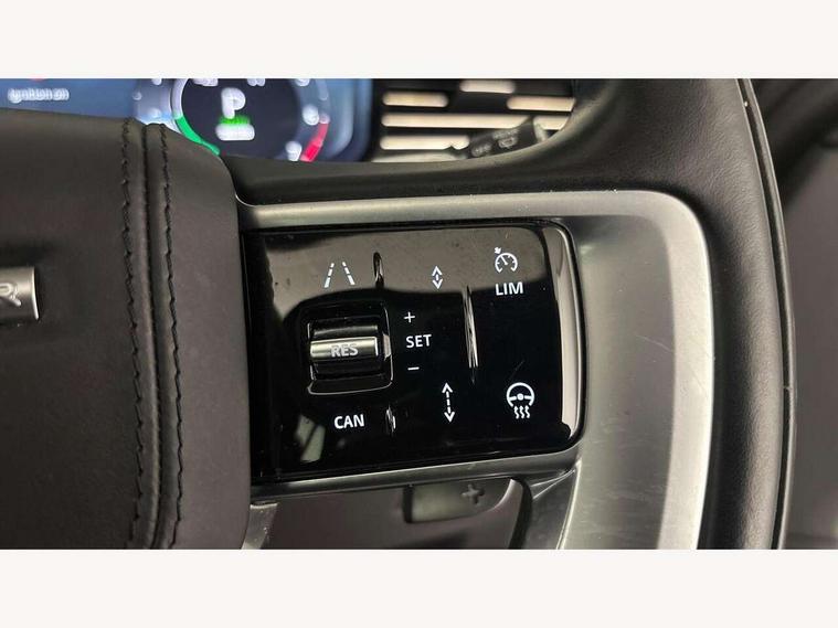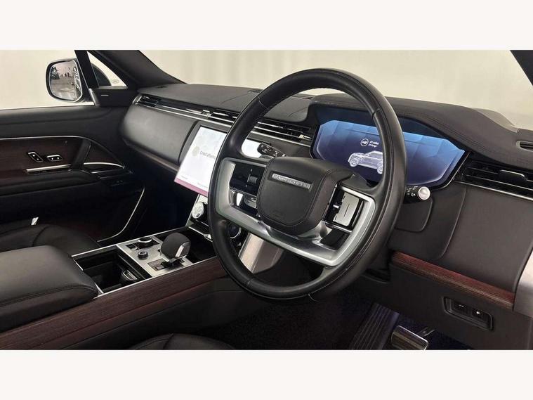 13.1" Touchscreen, 3D surround camera inc frwd traffic detection, vehicle clearance guidance, 3D view, clearsight ground view, manoevure light, 360 parking aid, wade sensing, Adaptive cruise control with steering assist, All Terrain Info Centre, All wheel steering, Android Auto, Apple car play, Blind spot assist, Bluetooth connectivity streaming, Driver condition response, Eco mode, Electric power assisted steering (EPAS), Emergency call service, Front and rear parking aid, Interactive driver display, Lane keep assist, Powered gesture tailgate/boot lid, Rear collision monitor, Rear traffic monitor, Remote, Traffic sign recognition with adaptive speed limiter, Wi-Fi Enabled with data plan, Wireless device charging with phone signal booster, 7 kW onboard charger, 8 speed automatic transmission, Active damper technology system, Adaptive dynamics, All terrain progress control, All Wheel Drive (AWD), Automatic access height, Home charging cable 5m Mode 2 including plugs, Public charging cable 5m Mode 2 including plugs, Terrain Response 2 Auto, Twin speed transfer box, Digital Audio Broadcast radio-DAB, Pivi pro including smart settings, Connected navigation pro, nuance speech, USB socket, Acoustic laminated windscreen, Animated directional indicators, Automatic headlights, Automatic levelling headlights, Centre high mounted stop light, Electric windows with one touch open/close and anti trap, Flush deployable exterior door handles, Front and rear recovery eyes, Front fog lights, Headlamp power wash, Heated rear window, Heated washer jets, LED tail lights, Power fold, auto-dimming, heated door mirrors with approach lights, Rain sensing windscreen wipers, Range rover badge, Rear boot, Rear fog lights, Rear side wing doors, Rear wash/wipe, Side repeater indicators in mirror, Trailer stability assist, Winter wiper park position, 12V power sockets, 3 seat bench in 2nd row, Air quality sensor, Bright metal pedals, Cabin lighting, Customer configurable single point entry, Driver and passenger front seat armrests, Easy boot loading, Ebony Carpet, Front and rear cupholders, Front and rear grab handles, Front head restraints, Gearshift paddles, Heated steering wheel, Hook in load space, Loadspace light, Luggage tie down in loadspace, Multifunction steering wheel, Rear centre armrest, Rear head restraints, Rear ISOFIX, Single front passenger seat, Twin blade sunvisors with Illuminated vanity mirrors, Upper and lower glovebox, Online pack with data plan - Range Rover, 3x3 point rear seat belts, Anti-lock braking system (ABS), Brake hold function, Cornering brake control (CBC), Customer configurable autolock, DSC - Dynamic Stability Control, Electronic brake force distribution, Electronic parking brake, Electronic traction control, Emergency brake assist, Emergency braking, Front airbags with passenger seat occupant detector, Front side airbags, Hill descent control, Hill launch assist, Low traction launch, Occupant protection assist, Power operated child locks, Roll stability control, Tyre pressure monitoring system (TPMS), Immobiliser, Intrusion sensor and alarm, Keyless entry, Locking wheel nuts, Remote central locking, Noble chrome controls,