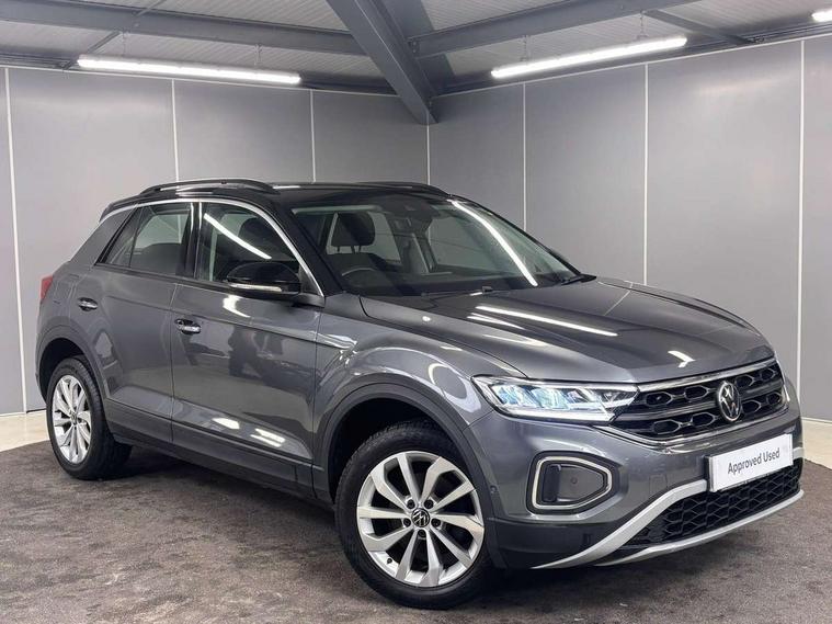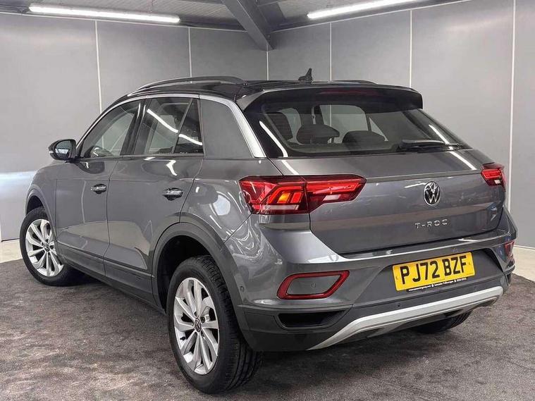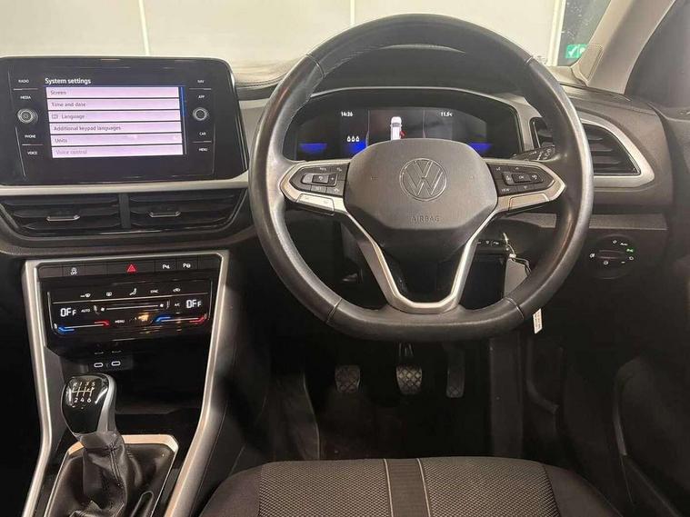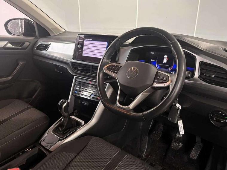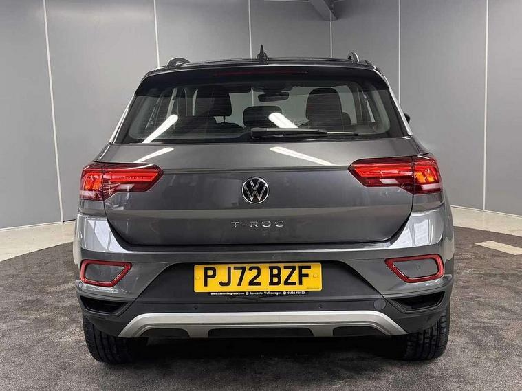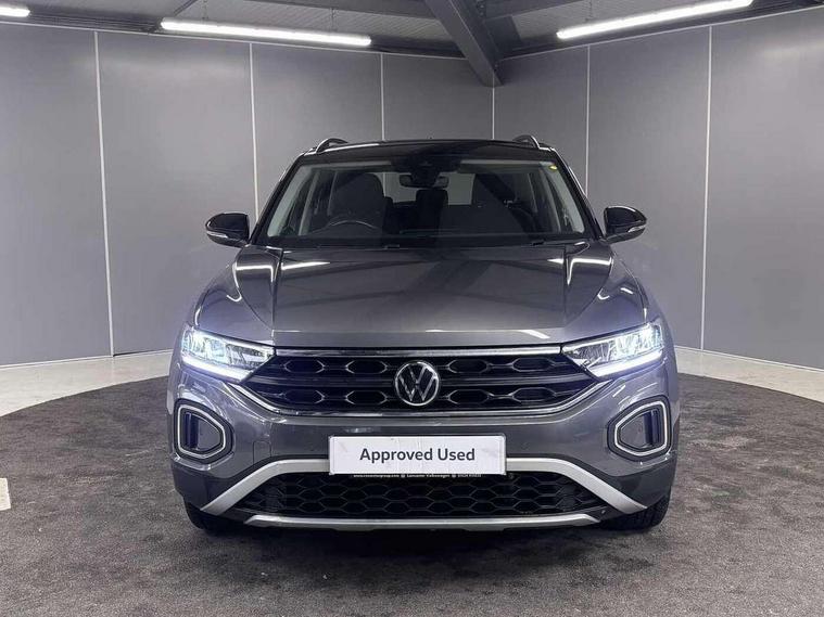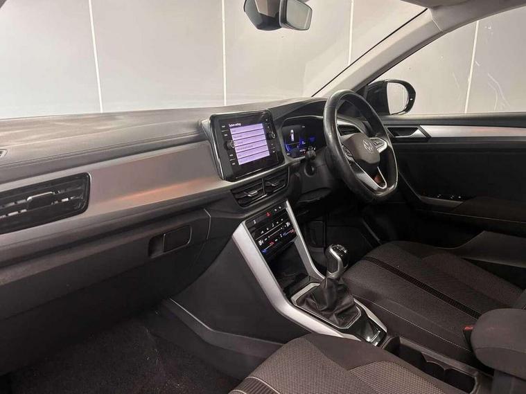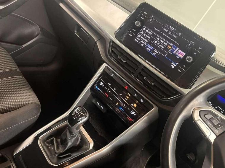 Bluetooth mobile phone interface, Driver alert system with fatigue detection, Driver tips and journey analysis, Emergency call service, Lane keeping system Lane Assist, Modified key software - reduce switch off time for key status change to Long no motion, Online services, Park assist including front and rear parking sensors, Power assisted speed sensitive steering, Service interval indicator, Tailgate/trunk lid release from outside, Think blue trainer driver tips and journey analysis, Warning sound and light for front seatbelts unfastened, Wireless app connect, Battery regeneration during braking, Front shock absorption, Rear shock absorption chassis with increased ride height, Start/stop function with battery regeneration, DAB Digital radio, Diversity antenna for FM reception, Front and rear 6 speakers, Music playback - MP3, WMA and AAC files, Premium USB cable in choice of either Apple or Android smartphone compatibility, SD card slot, Simultaneous pairing of 2 compatible mobile devices, Title and cover art display, We Connect and We Connect Plus functionality, 3rd brake light, Auto dimming interior rear view mirror, Automatic hazard lights activation under emergency braking, Automatic headlight control with LED separate daytime running lights with coming/leaving home function, Black roof rails, Body coloured bumpers and radiator grille with chrome trim and front fog lamps with chrome bezel, Body coloured exterior mirror housings and door handles, Extended roof spoiler, Exterior mirrors aspherical on driver side, convex on front passenger side, External USB type C socket and charging sockets, Front windscreen wiper with intermittent wipe and 4 position delay, Heated rear window, LED Headlights, LED rear combination lamps, LED rear number plate lights, LED tail lamp rear comination lamps, Power windows with comfort operation and circuit breaker, Rain sensor, Rear exhaust tailpipe, Rear fog light on one side and reversing lights on both sides, Rear side wing doors, Rear wash/wipe with intermittent wipe setting, Remote electrically foldable door mirrors, puddle lights and reverse activated passenger's door mirror, 12V power socket in centre console, 3 rear head restraints, 3 seat bench in 2nd row, 4 load lashing points in luggage compartment, Air care climatronic air conditoning system with active combination filter and 2-zone temperature control, Ambient lighting with mirror logo projection, Cloth upholstery, Door and side trim panel in cloth, Drawer under drivers seat, Driver/front passenger seat height adjustment, Front centre armrest, Front comfort sports seats, Front cupholders x 2, Front reading light, Instrument lighting, white adjustable panel illumination, Interior light delay, Isofix child seat preparation, Leather gearshift handle, Load-through provision with cup holder when folded down ('Unsplit rear seat bench, split folding backrest, with centre armrest), Luggage compartment lighting, Lumbar support for driver's and front passengers seat, Non-folding front passenger seat backrest, Single front passenger seat, Storage compartment in left and right luggage area, Storage compartment in rear doors, Storage compartments in driver and front passenger doors, Sunvisors with illuminated vanity mirrors, Variable boot floor, height adjustable and removable, Driver assistance pack without proactive passenger protection - T-Roc, 3 point height adj front seatbelts + pretensioners, 3 point seatbelts in outer rear with ECE label, ABS, Child locks on rear doors, Driver and front passenger airbag with front passenger airbag deactivation, Driver and front passenger safety-optimised head restraints, Drivers seatbelt reminder, Electronic parking brake, Electronic Stability Control (ESC) inc EDL (Electronic Differential Lock) and ASR (Traction Control), Front and rear passengers curtain airbag system including front side airbags, Front assist with city emergency braking and pedestrian monitoring, Front disc brakes, Front seat side impact airbags, Hill start assist, Predictive pedestrian protection, Rear disc brakes, Single tone horn, Tyre pressure loss indicator, Volkswagen roadside assistance, Alarm with interior protection, Anti-theft alarm system with interior monitoring, backup horn, and towing protection, Remote central locking with SAFELOCK, radio remote control with 2 remote control folding keys, Pewter matt decorative inserts for intrument panel, centre console and door panels at the front, Trims for alloy wheels,