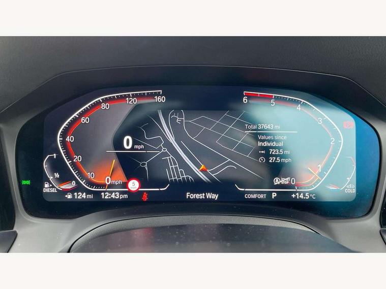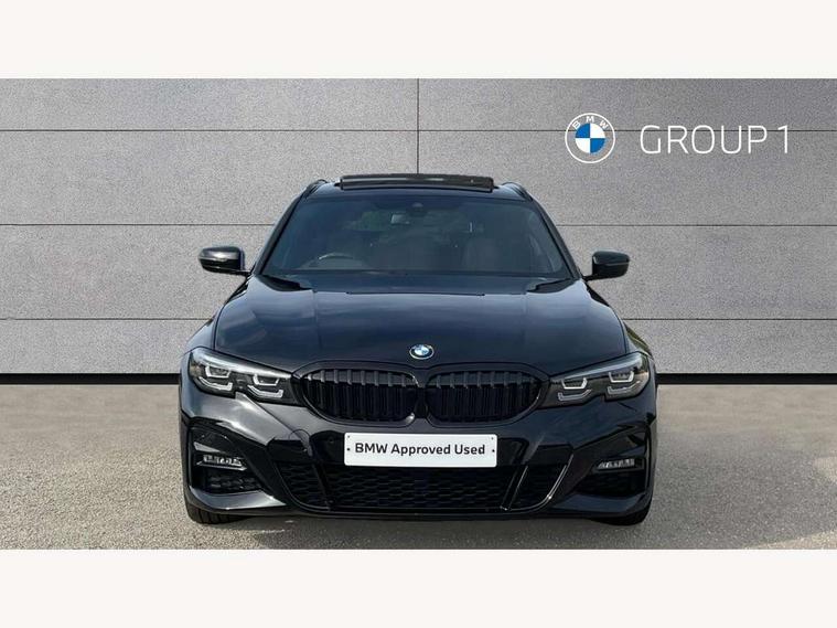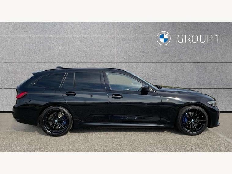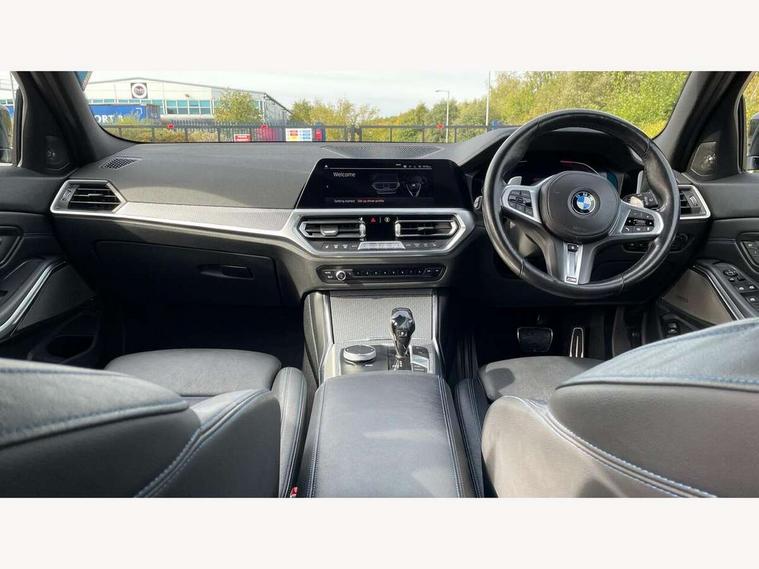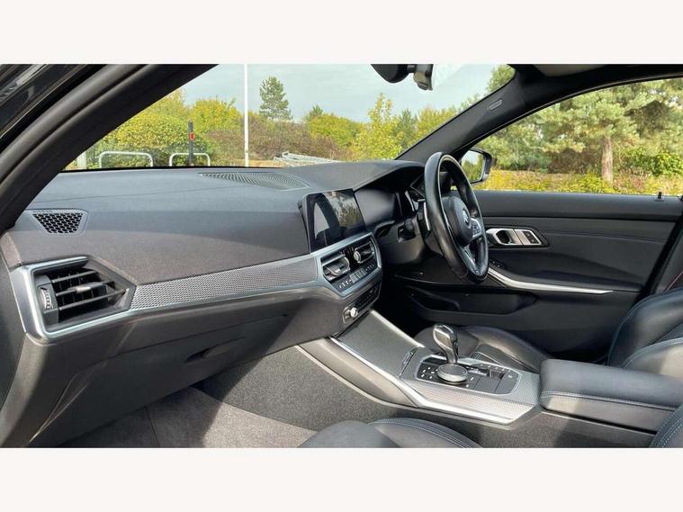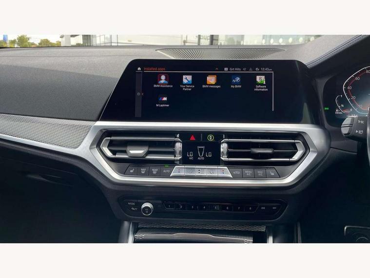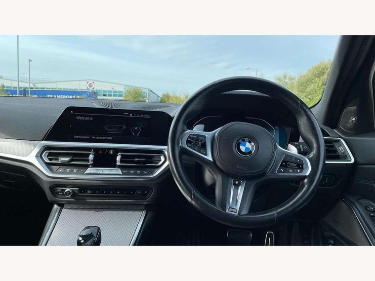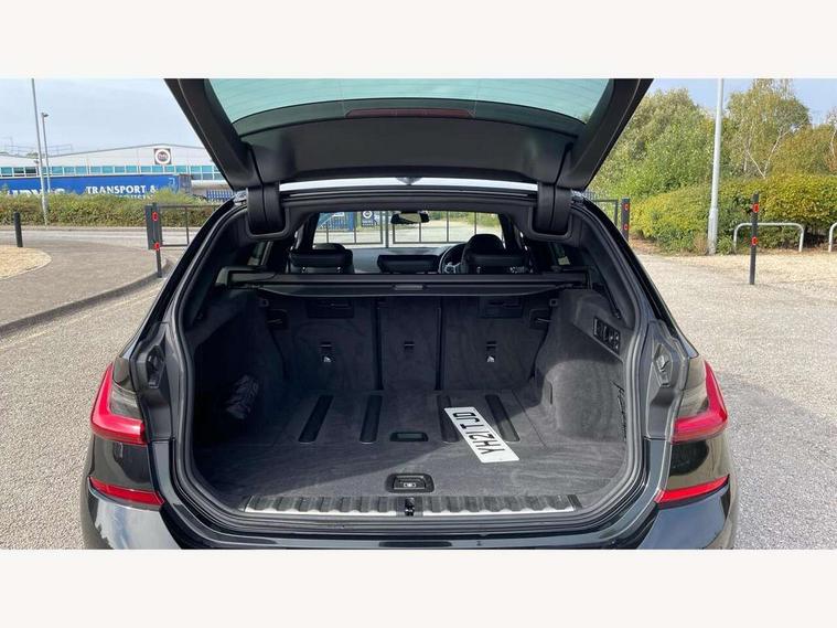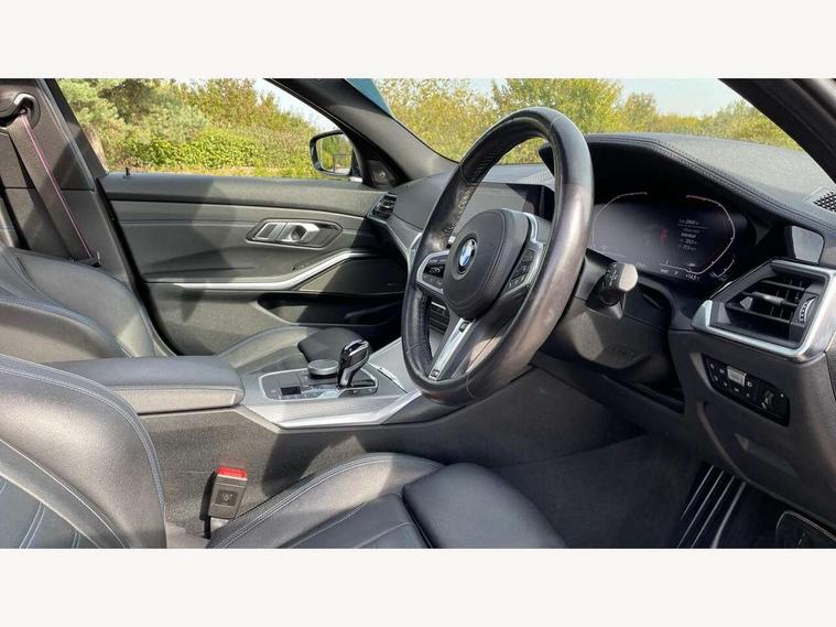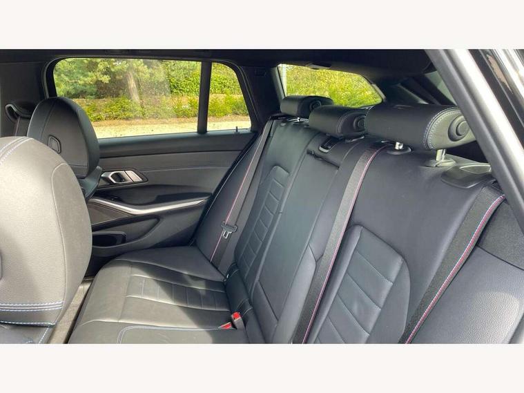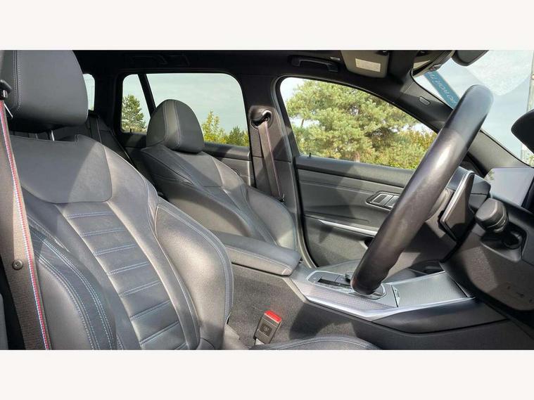 Active guard plus, Attentiveness assist, Bluetooth hands free facility with USB audio interface with audio streaming, BMW ConnectedDrive oline services with BMW apps, BMW iDrive controller on centre console, BMW service history, BMW Teleservices, Brake pad wear indicator in front and rear, Check Control warning system for monitoring of lights and door/luggage compartment open warning, Condition based service, Cruise control with brake function + speed limiter, Electric power steering with Servotronic steering optimised at all speed ranges, Gearshift time display in manual mode, Instrument cluster with speedometer with mph readout, tachometer, fuel gauge and oil temperature gauge, Integrated owners handbook, Oil sensor for level and grade, warning by check control system, On board computer - average speed+fuel consumption, service interval, clock/date, odometer/trip meter, outside temperature display and ice warning, Optimum shift indicator, Personal Profile - automatic lock when driving away selectable, Recovery braking system, Variable sport steering, 48V Mild hybrid technology, Balanced 50/50 weight distribution, Battery cut-out switch, Common rail technology, Diesel particulate filter, Drive performance control - ECO PRO, comfort and sport modes, EU6 emissions management, Incorrect fuelling protection, Larger capacity fuel tank, M sport suspension, Oxidation catalytic converter, Selective catalytic reduction (SCR) with AdBlue, Stroke dependent dampers, Twin scroll turbocharger, DAB tuner, Electronic service booklet, Stereo speaker system with 2 mid range speakers in the front door trims and rear parcel shelf + 2 central bass speakers underneath the front seats, Acoustic glazing, Active airstream chrome frame kidney grille with 8 high gloss black vertical slats, Automatic headlight activation/adjustment, Automatic headlight beam throw control with load dependent regulating reaction, dynamic compensation of braking dive and acceleration squat, Black roof mouldings, Body colour door handles, Body colour fuel filler flap, Body colour mirror caps with bottom segment in matt black, Dynamic brake lights, Electric windows - front and rear, with open/close fingertip control, anti-trap facility and comfort closing, Exhaust tailpipe - split left and right, Exterior mirrors - electrically folding with anti-dazzle, Fading support, Front and rear bumper system with replaceable deformation elements, Front black door sill finishers with BMW designation, Green tinted heat protection glazing, High gloss black exterior B pillar, Interior rear view electrochromatic mirror with automatic anti dazzle function, LED daytime running lights, LED front fog lights, Lightweight engineering, M designation on front side panels, left and right, Model designation on right side of tailgate, Rear wiper, Shark fin antenna, Two part LED tailights in L-shape with components in smoked glass, brake light, LED turn indicator and rear fog light, Visible VIN plate, Welcome lights in interior and door handle area, Windscreen wipers with integrated washing jets, 12V power socket in front storage compartment, 2 front cupholder in centre console with clamping elements and matt black inlay, 3 zone automatic air conditioning, 4 pieces lashing eyelets in luggage compartment, 40:20:40 split folding rear seat with loading system, Ambient lighting with welcome carpet light, Anthracite headlining, Armrest integrated in front and rear door trim + front centre console armrest, Backrest width adjustment, Centred top Luggage compartment lights, Four grab handles integrated in roof lining, Front and rear door exit lighting (left / right), Front and rear door pockets, Front and rear reading lights, Front and rear velour floor mats, Front head restraints, Front sport seats, Heated front seats, Height adjustable mechanically and infinitely variable steering column, Illuminated armrest storage compartment, Illuminated glove compartment with separate small compartment, Interior lighting - front centre over interior mirror with soft light, rear centre and front and rear footwell lighting, Make-up mirror lights, Rear centre armrest with 2 cupholders, Rear centre console with storage compartment and ventilation grille, Sunvisors with vanity mirrors and ticket pocket, Three spoke multifunction M sport leather steering wheel, Toolkit located in luggage compartment, Connected pack professional - 3 Series Saloon/Touring, Live cockpit professional pack - 3 series, M sport exterior styling pack - 3 Series Saloon/Touring, 2 tone horn, 3 rear seats with non folding headrests, Airbags activation controlled with intensity and scope, BMW emergency call, Brake energy regeneration, Braking pre-tensioning, Child proof locking system in rear door, Child seat ISOFIX attachment rear outer seats, Coasting in idle in ECO PRO mode, Crash sensor activating of airbags, Unlocking doors, hazard warning lights, fuel cut off, interior lighting+activation of safety battery terminal clamp, Deactivation of fuel pump in the event of a crash, Driver and front passenger side airbags, integrated in the door side seat backrest bolsters for all seat variants, Driver/Front Passenger airbags, Dry braking, Dynamic brake control, Dynamic stability control + (DSC+) - Anti-lock Braking System (ABS) with brake assist and cornering brake control + Automatic Stability Control (ASC), Dynamic Traction Control - DTC, Electric parking brake including automatic hold function and automatic release of the parking brake when driving off, Electronic differential lock control (EDLC), Front passenger manual airbag deactivation, Head airbags for all 4 outer seats, Hill start assist, Seat belt security check for driver and front passenger, Side impact protection, Three 3 point seat belts on all seats including front belt stopper, pyrotechnic belt tensioners and belt force limiters, Tyre pressure monitoring with three level warning strategy, Ventilated front and rear disc brakes, Warning triangle and first 
