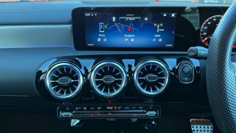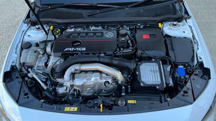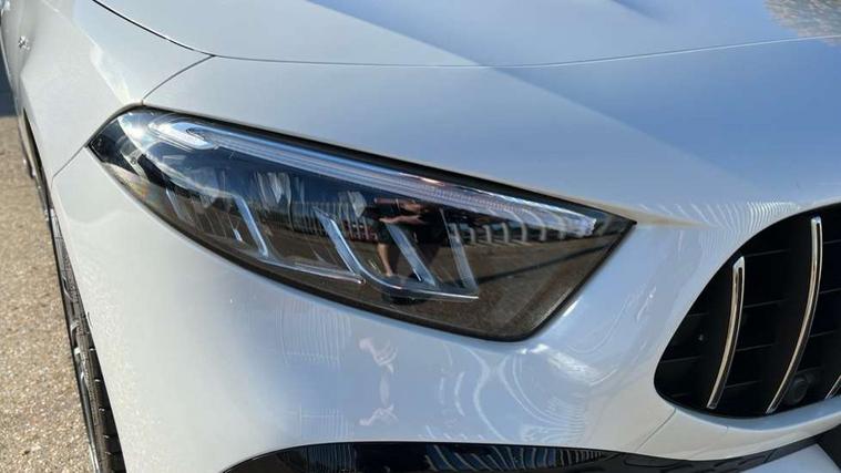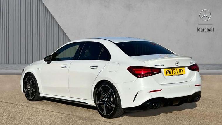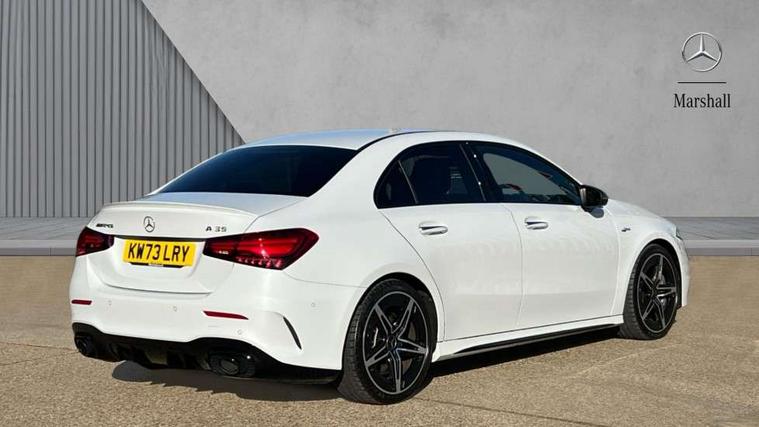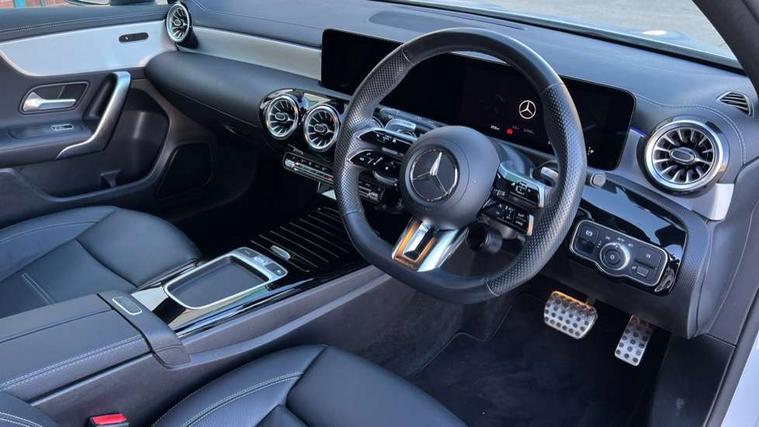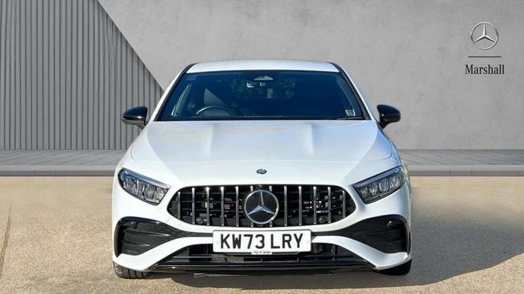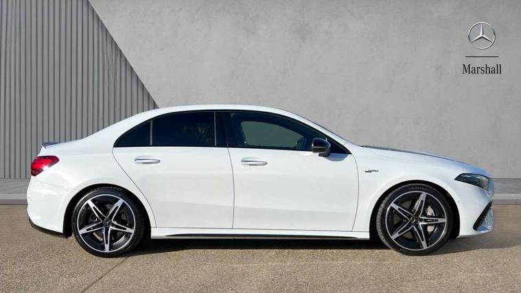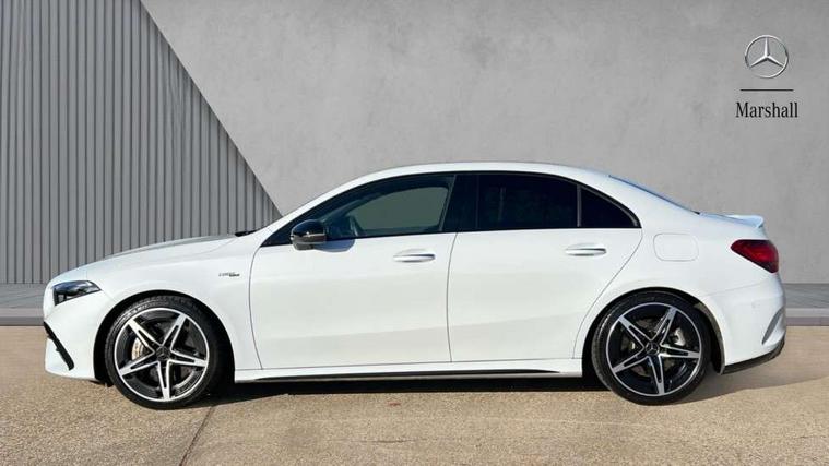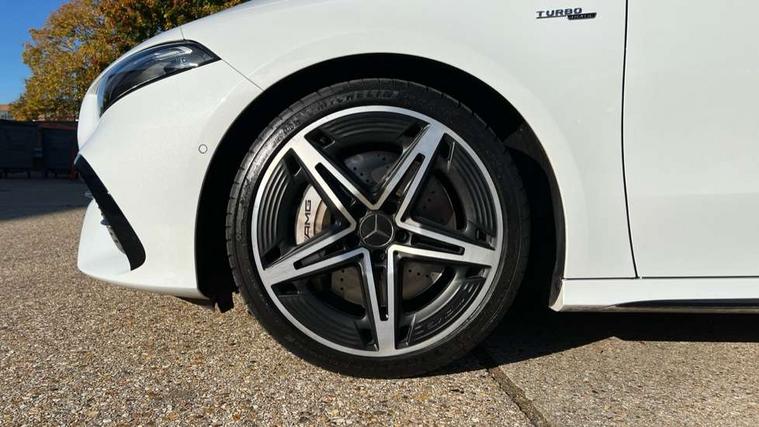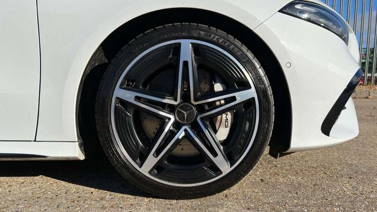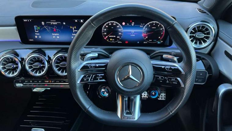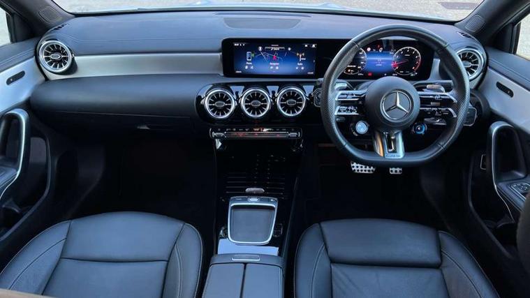 10.25 inch touchscreen central media display, 10.25" Digital instrument cluster display screen, Attention assist, Blind spot assist, Brake pad wear indicator warning light, Car wash mode, Cruise control + speed limiter, Direct steering, Direction indicators with lane change function, Dual bluetooth interfaces, DYNAMIC SELECT with driving programs (Slippery, Comfort, Sport, Sport+ and Individual), ECO start/stop function, Engine start/stop button, Fluid level warning indicator for fuel, oil, coolant and washer fluid, Hard-disk navigation, Hey Mercedes Voice activation, Lamp failure indicator, Lane keeping system, MBUX augmented reality for navigation, Mercedes me connect including emergency call system, accident recovery, breakdown management and maintenance, Mercedes me remote services, Outside temperature gauge, Owners manual in English, Pre-installation of private car share, Preinstallation for Mercedes Benz link, Remote boot closing, Service indicator (ASSYST), Smartphone integration with Apple CarPlay and Android auto, Speed limit assist, Speed sensitive power steering, Trip computer in multifunction display with current consumption indicator, Wireless charging, AMG suspension, DAB Digital radio, MBUX multimedia system, Mercedes Benz advanced sound system (225 W) with 10 speakers, 1 central speaker, speakers on doors, a tweeter on door, one sub woofer + boost amplifier, 4 Electric Front and Rear windows, Adaptive brake lights, AMG body styling - AMG front apron with front splitter and AMG rear apron and visible exhaust tailpipe trim elements, AMG Front apron with flics as air deflector elements on the outer air intakes, AMG radiator grille with twin blade lamella and AMG Lettering, AMG Rear apron with specific diffuser look with four vertical fins and two round chrome plated tailpipe trim elements with a diameter of 90 mm, AMG spoiler lip on roof, Beltline strips in High gloss Black, Body colour bumpers, Body colour door handles with chrome inserts, Body colour side skirt, Electric adjustable and heated door mirrors with integrated LED side indicators, Front splitter and trim elements on the louvres in the outer air inlets, Front wings wheel arches with TURBO 4MATIC lettering, Headlamp assist automatic headlamp activation, Heat insulating dark tinted rear and rear side windows, Heated glass rear windscreen + timer control, LED High Performance headlamps including integral LED daytime running lamps and adaptive highbeam assist, LED tail lamp, Privacy glass, Radio aerial, Rain sensing windscreen wipers with two sensitivity settings, Rear boot, Rear fog lights, Rear side wing doors, Third brake light featuring LED technology, Wider wheel arches for AMG wheels, Window line trim strip in black, 3 seat bench in 2nd row, 4 way lumbar support, 40:20:40 split folding rear seats, Air conditioning - Two zone thermotronic luxury automatic climate control with display, AMG Performance steering wheel in nappa leather, Automatic child seat recognition sensor, Black air vents with surround in silver chrome, Black roof lining, Brushed stainless steel sports pedals with rubber studs, Floor mats with AMG lettering, Front centre armrest with stowage, Front seat backs luggage nets, Heated front seats, Height/reach adjustable steering column, Illuminated AMG front door sills with changeable cover, Interior lighting - 64 colour Ambient lighting, Interior mirror with reading lamps in black and frameless, ISOFIX and top tether child seat fixing points in two outer rear seats, Rear armrest with 2 cupholders, Seat occupancy sensor for front passenger seat, Silver coloured aluminium gear shift paddles on steering wheel, Single front passenger seat, Sports seats with adjustable head restraints, Stowage compartment in centre console with retractable cover, Sunvisors with illuminated vanity mirrors, Twin front cupholders, AMG night pack - A Class, Keyless go comfort pack - A Class, Light and sight pack - A Class, Mirror package - A Class, Parking pack - A Class, Seat comfort pack - A Class, USB pack plus - A Class, 3 rear 3 point seatbelts, ABS with Brake Assist, Active bonnet, Active brake assist includes forward collision warning system with autonomous braking, Adaptive brake assist with hold function and hill start assist, Black seatbelts, Bonnet with power domes, Childproof locks manually operated for rear doors and electrically operated for rear power windows, Crash responsive emergency lighting, Driver and passenger head and side airbags, Drivers knee airbag, Dual stage driver/passenger airbags, Electronic parking brake, ESP curve dynamic assist, ESP with ASR, Exit warning, Front and rear seatbelt reminder, Front brake calipers with AMG lettering, Tyre pressure monitoring system, Warning triangle and first aid kit, Window airbags, Alarm system/interior protection/immobiliser, Guard 360 degree vehicle protection, Remote central locking and crash sensor with emergency opening function, Light longitudinal grain aluminium trim, 19" AMG 5 twin spoke light alloy wheels aerodynamically optimised painted in matt black with high sheen finish, Summer tyres, Tirefit sealant kit,