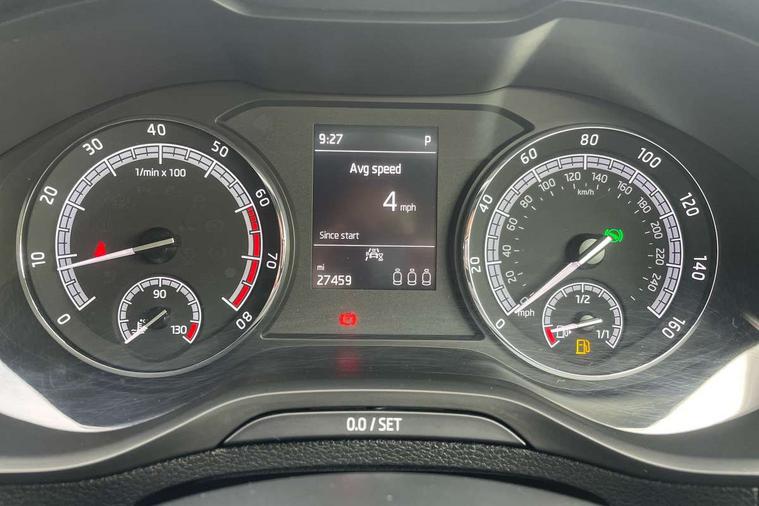 Care connect, Driver alert system, Driver fatigue sensor, Driver profile selection, Electro-mechanical PAS, Outside temperature gauge, Service interval indicator, SmartLink + wireless for Apple and wired for Android, Start/stop system with regenerative braking, USB C Port x 2 in front centre console, WLAN, DAB radio with Bluetooth, USB connection, Acoustic glass, Aero front windscreen wipers with intermittent function, Automatic headlight control system, Black electric window control buttons, Body colour door mirrors and handles, Body coloured bumpers, Electric front and rear windows with child proof lock, Electrically adjustable heated folding and auto dimming door mirrors, Heated rear windscreen, LED rear lights with high functionality, Light assistant (coming/leaving home/tunnel light), Privacy glass, Safety reflectors on front doors, Third brake light, 1.5 litre bottle holders in driver and front passenger door panels, 12V socket in boot, 12v socket in front centre armrest with storage compartment and rear air vents, 2 Folding hooks and nets in boot, 2 Front readings lights for driver and passenger, 3 rear height adjustable headrests, 4 foldable roof handles with rear coat hooks, 4 lashing points on luggage floor, Backrest release, Cargo elements in boot, Chrome inner door handles, Driver and passenger seats height adjust, Folding tables on the front seat backrests, Front head restraints, Front seat and rear pockets, Height adjustable front three point seats belts with tensioners, Height/reach adjust steering wheel, Ice scraper, Illuminated and cooled glovebox, Illuminated luggage compartment, Isofix child seat preparation outer rear, Manual lumbar support for front seats, Net programme in boot, Pen holder, Pollen filter, Rear boot cover, Rear reading lights, Rear seats fixed folding and divided 60:40, Safety vest holder, Storage box in upper central dashboard closed, Sunvisors with illuminated vanity mirrors, Umbrella under passenger seat, Airbags - Front side, head, knee and curtain, Automatic door unlocking in case of crash, Automatic fuel cut off in case of crash, Driver airbag, Electronic parking brake with auto hold function, Emergency rear braking signal, ESC including ABS, MSR, ASR, EDS, HBA, DSR, RBS, MKB and traction control, Front assist radar scanning of the space in front of the car with automatic braking, Hill hold control, Passenger airbag with switch-off function, Pedestrian monitor, Seatbelt reminder signalisation and pretensioner for all seats, Three point seatbelts rear, Two tone horn, Tyre pressure display, Tyre pressure monitor, Alarm with interior monitoring, back up horn and tilt sensor with safe function, Electronic engine immobiliser, Remote central locking with 2 remote folding keys, Chrome framed air vents, Storage on wheel cover,