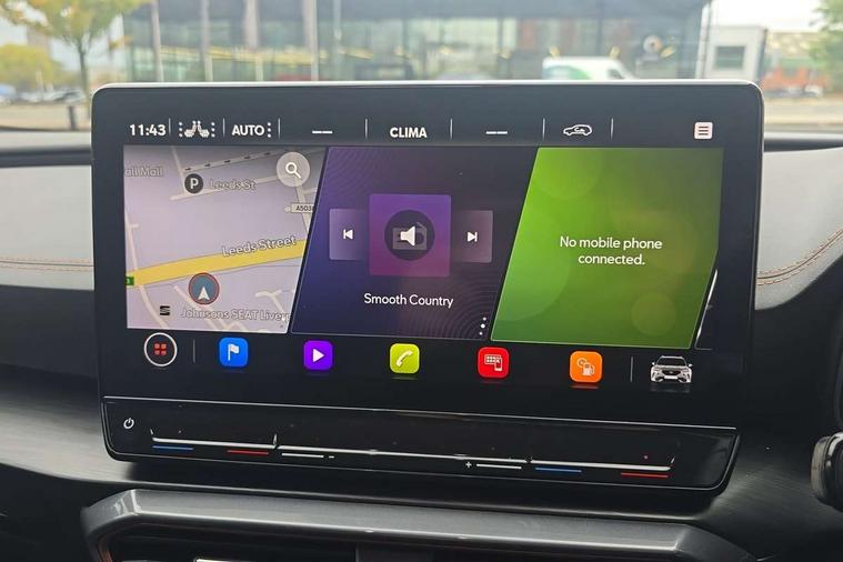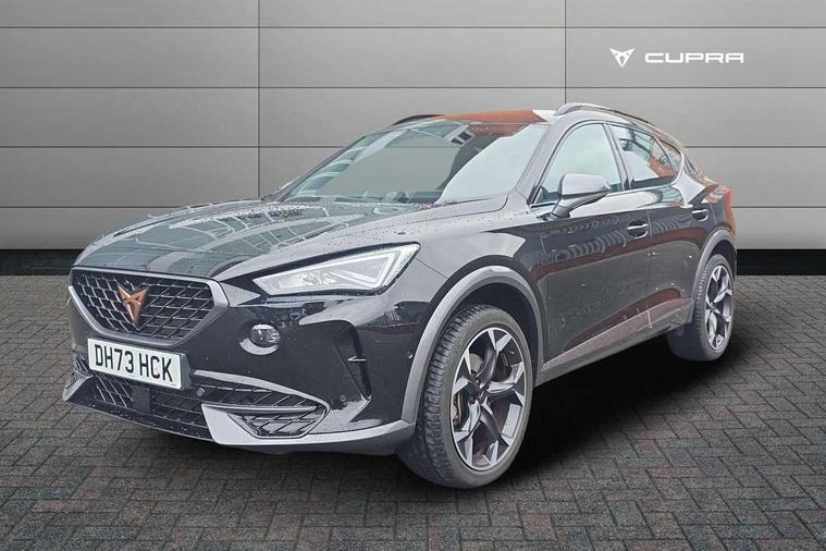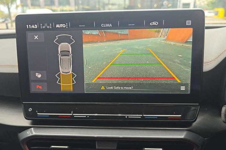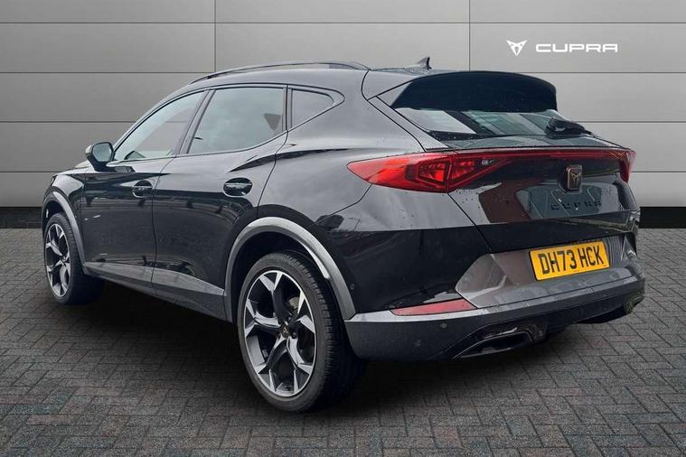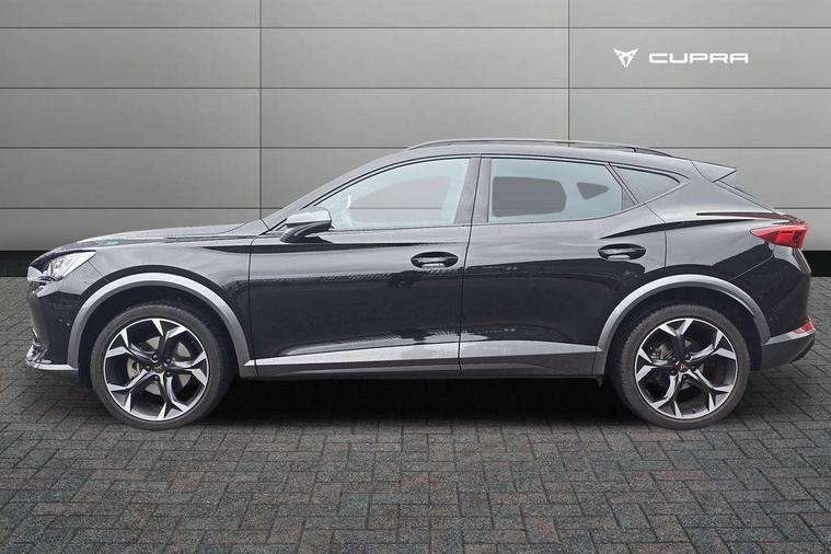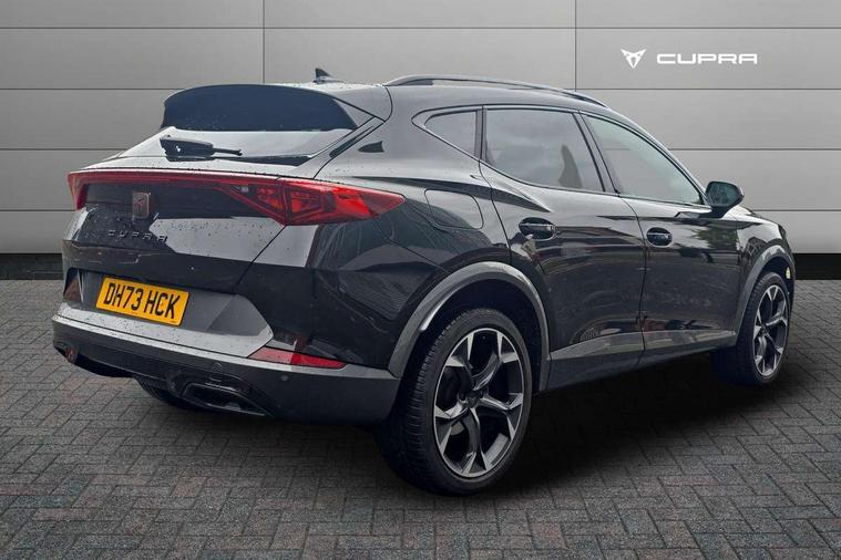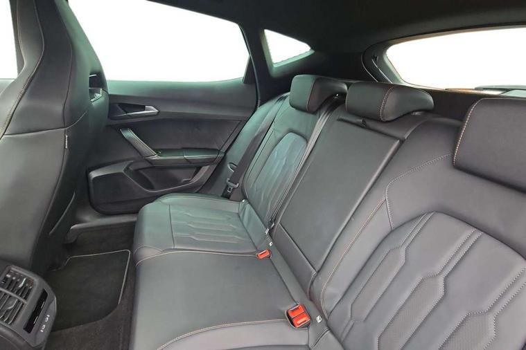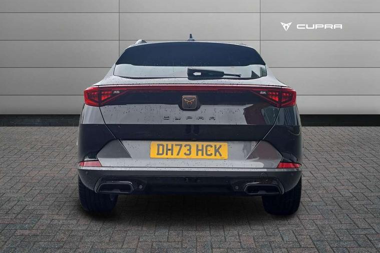 Digital cockpit and configurable dashboard, Driver alert system, Driving profile selection, Forward collision warning with automatic braking, Lane assist, Navigation system with 12'' Touchscreen Display, Park assist (inc front/rear parking sensors), PAS, Predictive adaptive cruise control with speed limiter, Rear view camera, RPM, trip computer, outside temp gauge, instrument light brightness, low fuel warning light, lights on reminder, gearshift indicator, Service interval indicator, Start/stop system with regenerative braking, Voice control system, Wired Android Auto, Wireless apple carplay, Wireless phone charger, Electronic locking differential and dynamic traction support, Standard suspension, 2 front and 2 rear USB type C sockets, Auxiliary input socket, DAB radio, Auto dimming rear view mirror, Body colour door handles, Body coloured bumpers, Dark grey wing mirror, Daytime running light with automatic headlight control and coming home feature, Dynamic headlight range control, Electric front/rear windows, Electrically adjustable heated and folding door mirrors with memory function, Front fog lamps with cornering function, Gloss black roof rails and window surrounds, LED Headlights, LED Taillights with dynamic indicator, Rain sensing wipers, Rear diffuser with black simulated exhaust pipes, Rear side wing doors, Rear wash/wipe, Third brake light, Tinted rear windows, Welcome lights, 12v power supply in centre console, 12V socket, 12v socket in loadspace, 2 front and 2 rear reading lights, 230V socket, 3 seat bench in 2nd row, 60/40 split rear bench seat with armrest and mechanical seat release, Black headlining, Dust/pollen filter, Front and rear head restraints, Front centre armrest, Height/reach adjust steering wheel, Illuminated interior front door sills, Illuminated sunvisor with mirror, Isofix, Leather multi function heated steering wheel with gear shift paddles, Luggage tie-down hooks, Single front passenger seat, Three zone climate control with control panel in rear, Variable luggage/load compartment floor, Wraparound lighting, Genuine Nappa leather Pack - Cupra, 3 point seatbelts on all rear seats, ABS, Brake control system - ESC and brake booster, Child proof door locks, Driver and front passenger airbags with front passenger airbag de-activation, Electronic parking brake, Front and rear disc brakes, Front side curtain airbags, Hill hold control, Public e-call, Seat belt reminder for front and rear seats, Tyre pressure monitoring system, Anti theft alarm system, Keyless entry and start system (KESSY), Locking wheel bolts, Copper and aluminium interior detailing, 19" 'Exclusive' machined sport matte black and silver alloy wheels,