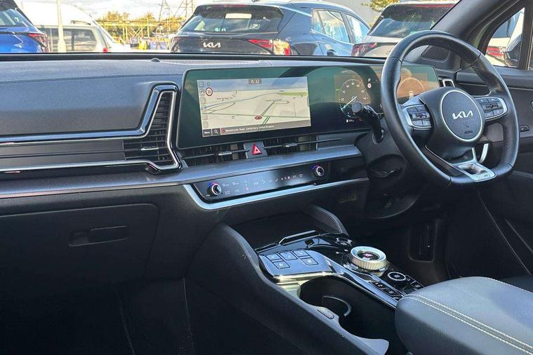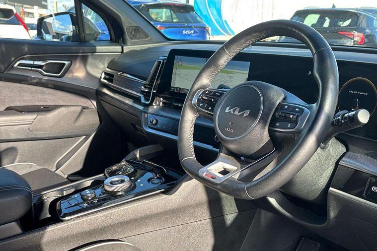 12.3" Display with navigation, 12.3" supervision colour cluster display, 360 degree around view monitor, Apple car play/Android Auto with voice control, Blind spot collision avoidance assist, Blind spot view monitor, Drive mode selector, E-call, Forward collision avoidance assist (FCA) - city/pedestrian/cyclist/junction covering, Front and rear parking sensors, Highway Driving Assist (HDA), Intelligent speed limit assist, Kia Connect (UVO), Lane Following Assist (LFA), Lane keep assist, Low washer fluid warning, Parking collision avoidance assist (PCA), Remote smart parking assist, Reversing camera system integrated into centre fascia screen, Smart cruise control with stop and go functionality, Smart power tailgate, Speed sensitive power steering, Trip computer, Windscreen washer level indicator, Wireless Smartphone charger, Intelligent Stop and Go, Bluetooth audio streaming, DAB Radio with MP3, Harman Kardon premium sound system, Rear USB port, Steering wheel mounted audio controls, USB C type charging ports on centre console, USB C type charging ports on side of front seats, USB port for connection of a media device, All round electric windows with drivers and front passenger auto up/down function, Automatic headlight control system, Automatic window defogger, Backlite glass heated with timer, Body colour and black bumper with silver accents, Body colour exterior door handles, Body colour radiator upper garnish and door garnish, Dual LED adaptive headlamps, Electric panoramic glass sunroof (Electric one touch with safety function), Electrically adjustable/heated/folding door mirrors with LED indicators, Front and rear chrome skid plates, Gloss black door mirrors, Gloss black radiator grille, Gloss black side sill and wheel arch body mouldings, Glossy black roof rack, High beam assist, Interior electrochromic mirror, LED daytime running lights, LED front fog lamps, LED High mounted stop light, LED rear combination lamp, Rain sensing wipers with aero blades, Rear fog lamp, Rear privacy glass, Rear side wing doors, Rear spoiler, Rear wiper, Satin finished beltline, Trailer stability assist, 10 way driver/8 way passenger electrically power adjustable seats, 12V power socket in front centre fascia and luggage compartment, 3 seat bench in 2nd row, 3 x passenger assist grips, 40/20/40 split folding rear seat, All-round height adjustable headrests, Ambient lighting, Black headlining, Centre console storage box, Cupholders in rear armrest, D-Shaped sports leather steering wheel and perforated inserts with GT-Line logo, Door courtesy lamps, Drink holder at centre armrest, Driver and front passenger side sunvisors with illuminated vanity mirrors, Driver seat memory function, Drivers seat power lumbar support, Front and rear door storage, Front seat and rear pockets, Front/rear centre armrests, Gear shift indicator, Glovebox illumination, Heated front and outer rear seats, Heated steering wheel, Interior door lock/unlock function, ISOFIX Child seat top tethers and anchor fixings outer rear seats, LED interior personal lamp, LED lighting in overhead console, Luggage area LED light, Luggage area load cover, Luggage net with hooks, Metal paint interior door handles, Paddle shift controls, Rear coat hooks, Single front passenger seat, Sports pedals, Suede leather upholstery, Three zone climate control, Tilt/telescopic adjustable steering wheel, Ventilated front seats, Ventilation ducts to rear compartment, Active front headrests, All round 3-point seatbelts, Anti-lock braking system (ABS), Dual front side airbags, Dual horn, Electronic parking brake, Electronic stability control with downhill brake control, Front passenger airbag cut-off switch, Front seatbelt pretensioners + load limiters, Height adjustable front seatbelts, Hill start assist control (HAC), Impact sensing auto door unlocking, Multi collision brake assist, Rear door child safety locks, Rear seat alert system, Traction control, Twin curtain airbags, Twin front airbags, Tyre pressure monitoring system, Advanced anti-theft system including immobiliser and alarm, Door deadlocks, Engine Start/Stop Button with Smart Entry System, Locking wheel nuts, Speed sensitive auto door locking, Visible vehicle identification number, Aluminium pattern finish centre fascia and door garnish, 18" Alloy wheels, Michelin tyres, Tyre mobility kit,
