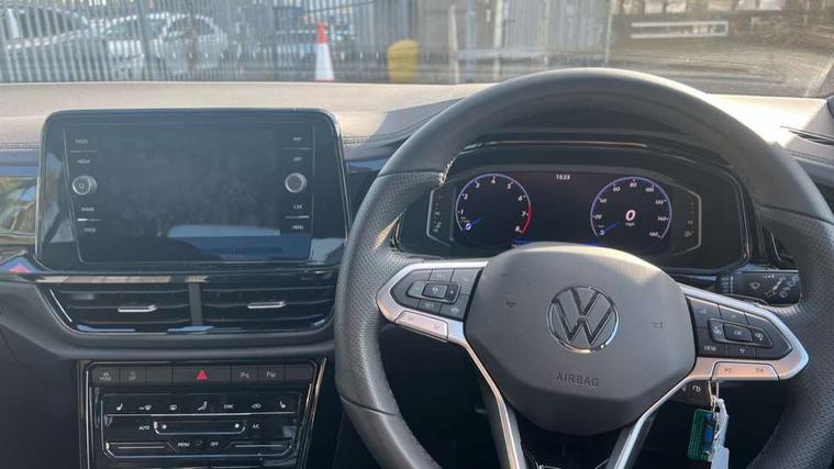 10.25" Digital cockpit pro, Advanced driver attention and drowsiness monitor, Emergency call service, Lane keeping system Lane Assist, Mobile phone interface, Modified key software - reduce switch off time for key status change to Long no motion, Online services, Park assist including front and rear parking sensors, Power assisted speed sensitive steering, Service interval indicator, Tailgate/trunk lid release from outside, Think blue trainer driver tips and journey analysis, Warning sound and light for front seatbelts unfastened, Wireless app connect, Battery regeneration during braking, Rear shock absorption chassis with increased ride height, Start/stop function with battery regeneration, DAB Digital radio, Diversity antenna for FM reception, Front and rear 6 speakers, Music playback - MP3, WMA and AAC files, Premium USB cable in choice of either Apple or Android smartphone compatibility, SD card slot, Simultaneous pairing of 2 compatible mobile devices, Title and cover art display, We Connect and We Connect Plus functionality, Auto dimming interior rear view mirror, Automatic hazard lights activation under emergency braking, Automatic headlight control with LED separate daytime running lights with coming/leaving home function, Dynamic cornering light, Electrically adjustable and heated door mirrors, Extended roof spoiler, Exterior mirrors aspherical on driver side, convex on front passenger side, External USB type C socket and charging sockets, Front windscreen wiper with intermittent wipe and 4 position delay, Heated rear window, Illuminated front grille, IQ LED matrix headlights, LED 3rd brake light, LED rear number plate lights, LED rear tail lights with dynamic turn signal, Light mode for poor weather, rain, fog or snow, Power windows with comfort operation and circuit breaker, R-Line design body coloured bumpers, Rain sensor, Rear exhaust tailpipe, Rear fog light on one side and reversing lights on both sides, Rear side wing doors, Rear wash/wipe with intermittent wipe setting, Remote electrically foldable door mirrors, puddle lights and reverse activated passenger's door mirror, 12V power socket in centre console, 3 rear head restraints, 3 seat bench in 2nd row, 4 load lashing points in luggage compartment, Air care climatronic air conditoning system with active combination filter and 2-zone temperature control, Artvelours cloth upholstery, Black roof lining, Chrome plated radiator grille inserts, air vent surrounds and light switch surrounds, Door and side trim panel with leatherette insert, Drawer under drivers seat, Driver seat height adjust, Driver's seat lumbar support, Front + rear carpet mats, Front centre armrest, Front comfort sports seats, Front cupholders x 2, Front footwell illumination, Front reading light, Front scuff plates with R Line logo, Front seat back storage pockets, Glove compartment door with light, Instrument lighting, white adjustable panel illumination, Interior ambient lighting and surround lighting, Interior light delay, Isofix child seat preparation, Leather gearshift handle, Leather wrapped multifunction steering wheel with paddle shift, Load-through provision with cup holder when folded down ('Unsplit rear seat bench, split folding backrest, with centre armrest), Luggage compartment lighting, Non-folding front passenger seat backrest, Passenger seat height adjuster, Passenger seat lumbar support, Single front passenger seat, Stainless steel pedals, Storage compartment in left and right luggage area, Storage compartment in rear doors, Storage compartments in driver and front passenger doors, Sunvisors with illuminated vanity mirrors, Variable boot floor, height adjustable and removable, Winter pack without heated windscreen washer jets - T-Roc, 3 point height adj front seatbelts + pretensioners, 3 point seatbelts in outer rear with ECE label, ABS, Child locks on rear doors, City emergency braking and pedestrian monitoring, Driver and front passenger airbag with front passenger airbag deactivation, Driver and front passenger safety-optimised head restraints, Drivers seatbelt reminder, Electronic parking brake, Electronic Stability Control (ESC) inc EDL (Electronic Differential Lock) and ASR (Traction Control), Front and rear passengers curtain airbag system including front side airbags, Front disc brakes, Hill start assist, Predictive pedestrian protection, Rear disc brakes, Two tone horn, Tyre pressure loss indicator, Volkswagen roadside assistance, Tool kit, Trims for alloy wheels, Tyre mobility kit including compressor and sealing foam,