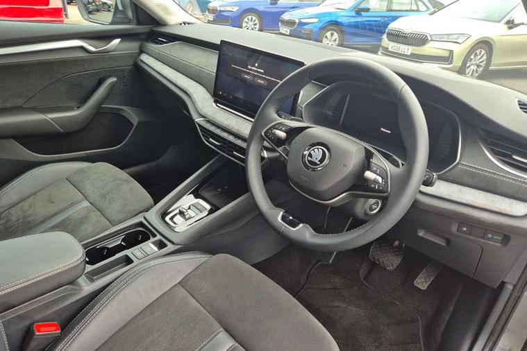 1x USB Typc C port in rear view mirror, 4x USB Type C ports - 2x in front centre console and 2x in rear (45W), Drive mode selection, Driver fatigue sensor, eCall emergency system, Electro-mechanical power steering, Front and rear parking sensors with manoeuvre assist, Front assist system, Traffic jam assist, Traffic sign recognition, Turn Assist, Virtual Cockpit - 10.25" digital display, Voice control system, Wireless charging (15W) with cooling function, Wireless SmartLink for Apple CarPlay and Android Auto, 13" touchscreen display with navigation, DAB Digital radio, Aero front windscreen wipers with intermittent function, Auto dimming rear view mirror, Body colour bumpers, Body colour door mirrors and handles, Chrome grille surround, Chrome strip in lower front bumper, Chrome window surrounds, Electric front and rear windows, Heated rear windscreen, High level third brake light, Ice scraper in fuel cap, LED daytime running lights, LED Headlights, Logo projection in front doors, Rain and light sensors, Rear fog light on one side, Rear privacy glass, Rear side wing doors, 12 volt socket in boot, 3 rear headrests, 3 seat bench in 2nd row, 4 foldable roof handles, Boot net programme, Front head restraints, Heated front seats, Illuminated glovebox, Interior door handles in dark chrome, Jumbo Box storage, Luggage compartment lighting x2 lights, Mechanical rear seat release from boot, Parcel shelf - folding, Single front passenger seat, Steering wheel in black leather with black stitching, Storage compartments in left and right of boot, Sun visors with mirrors, Sunglasses storage, Ticket holder, Umbrella in door panel, Unsplit rear bench seat, split folding backrest with centre armrest with cupholder, Comfort package - Octavia, 3x3 point rear seat belts, Alarm with interior monitoring, tilt sensor and back up horn, Curtain airbags and front side airbags, Driver and front passenger airbags, Drivers knee airbag, Electronic parking brake, ESC including ABS, EBV, MSR, ASR, EDS, HBA, DSR, Front central airbag, Hill hold assist, ISOFIX on front passenger seat and outer rear seats, Passenger airbag deactivate switch, Three point seat belts in front and rear, Two tone horn, Tyre pressure monitor, Visual and acoustic seat belt reminder, Warning reflectors in front door, Anti-theft wheel bolts, Keyless start/stop, Remote central locking, Chrome air vent surrounds,