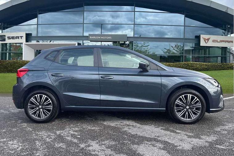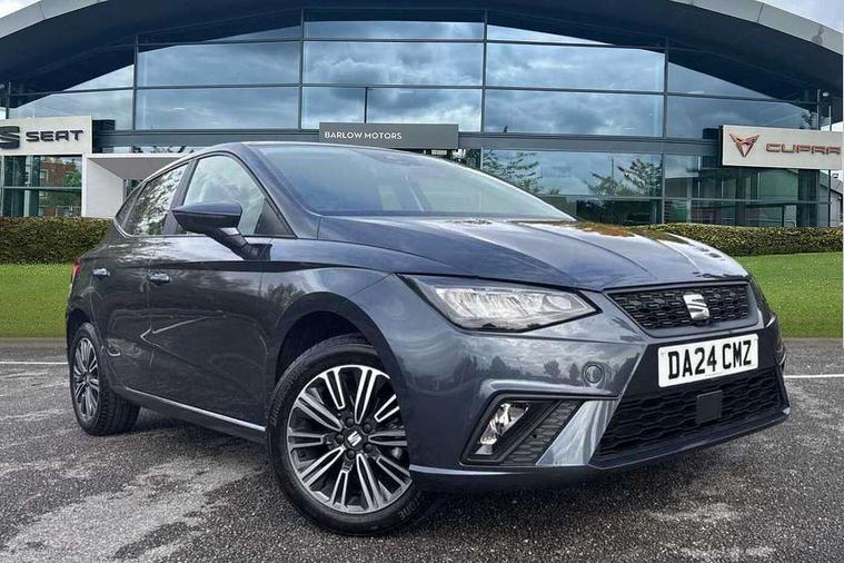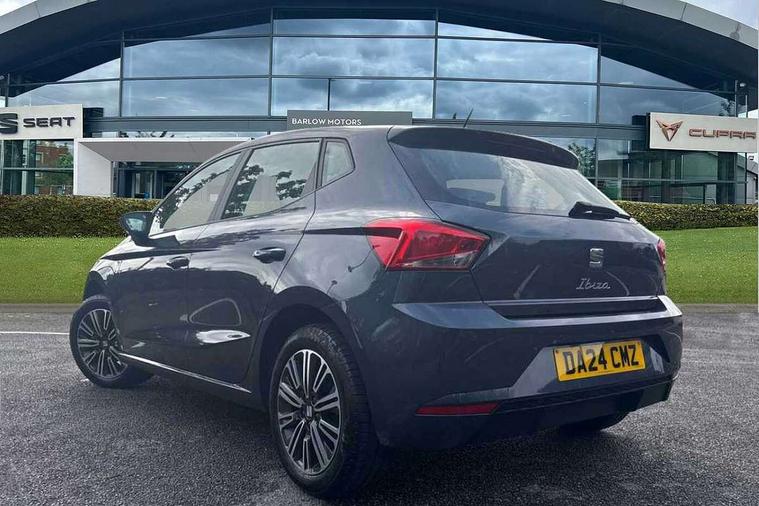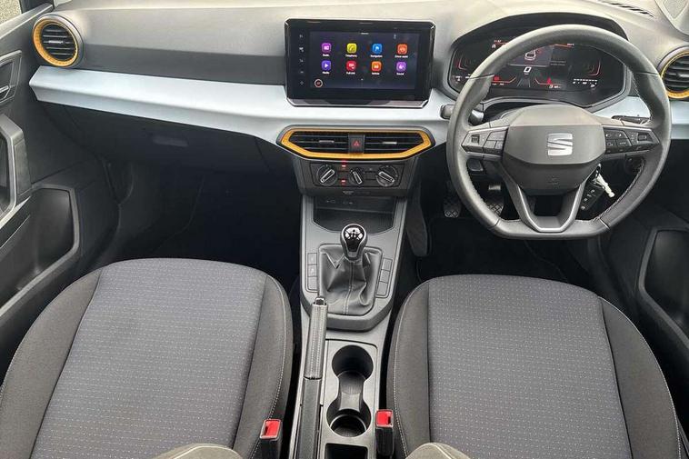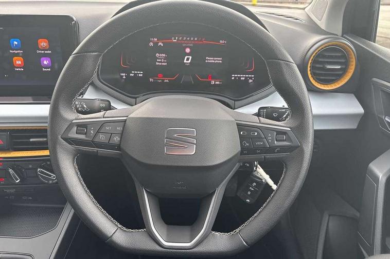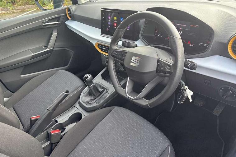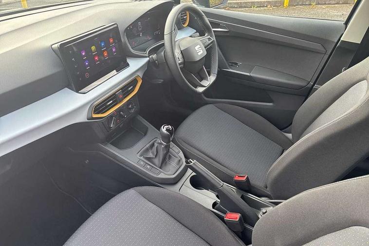 'Lights On' Reminder warning buzzer, 8" Digital cockpit, 9.2" touchscreen navigation system with type C USB socket, Voice control and DAB/AM/FM radio, Auto start and stop system, Bluetooth audio streaming with handsfree system, Cruise control, Digital clock, E-call, Full link smartphone integration with mirror link, wireless apple carplay, Google android auto + USB Type C cable for apple and android devices, Lane assist, Low fuel warning light, Outside temperature gauge, Power Steering, Rear parking sensor, Seat connect plus with safety, service, remote and online, SEAT logo boot release, Speed limiter, Traffic sign recognition, Trip computer, Comfort suspension, Auxiliary input socket, Radio/MP3 player, SD card slot, Steering wheel mounted controls, Anti theft roof antenna, Body colour bumpers, Body colour door handles, Body colour door mirror caps, Dimming interior rear view mirror, ECO LED automatic headlights and LED daytime running lights, Electric front windows, Electric headlight adjustment, Electrically adjustable door mirrors, Front/rear fog lights, Halogen tailights, Rain sensor, Rear side wing doors, Rear wiper, Third brake light, 3 seat bench in 2nd row, 60/40 split folding rear seat, Air conditioning with dust and pollen filter, Chrome interior detailing and grey headlining, Cloth upholstery, Comfort seats, Front courtesy lights, Front cupholders x 2, Front reading lights, Gear shift indicator, Glovebox, Height adjustable front and rear headrests (five), Height adjustable front seats, Height/reach adjust steering wheel, Illuminated boot, Instrument lighting with brightness control, Isofix, Leather multifunction flat bottomed sports steering wheel, Passenger sunvisor, Single front passenger seat, Sunvisors with mirror and driver side card holder, Safety and driving pack (S) - Ibiza, 3 point seatbelts on all 3 rear seats, ABS, Active front headrests, Child locks on rear doors, Electronic stability control, Energy recovery system, Front assist forward collision warning and autonomous emergency braking, Front driver and passenger side airbags with curtain airbag and front passenger airbag deactivation, Hill hold control, Multi-Collision braking, Seat belt reminder for front and rear seats, Tiredness recognition system, Tyre pressure monitoring system, Locking wheel bolts, Remote central locking + deadlocks, 16" Design machined alloy wheels in Nuclear grey,
