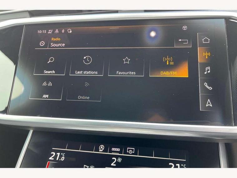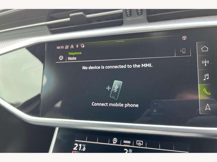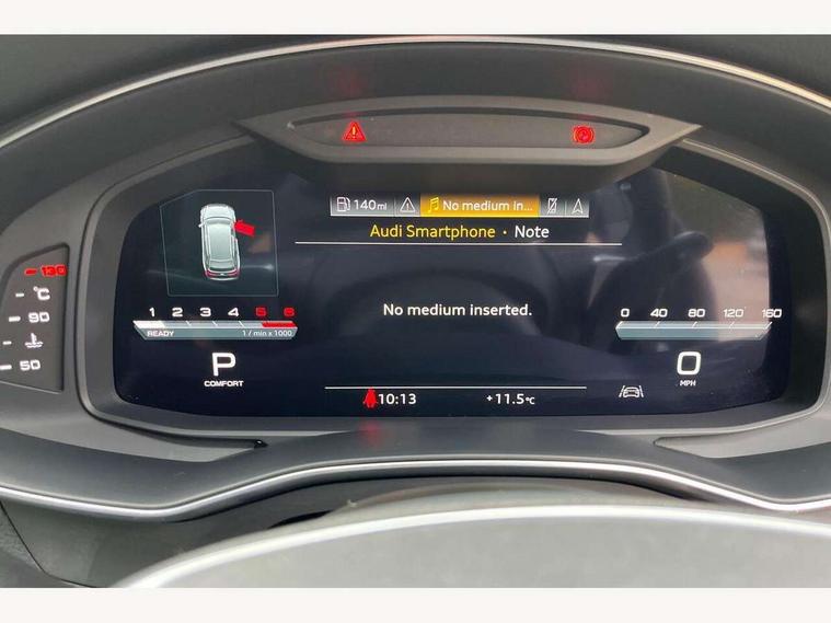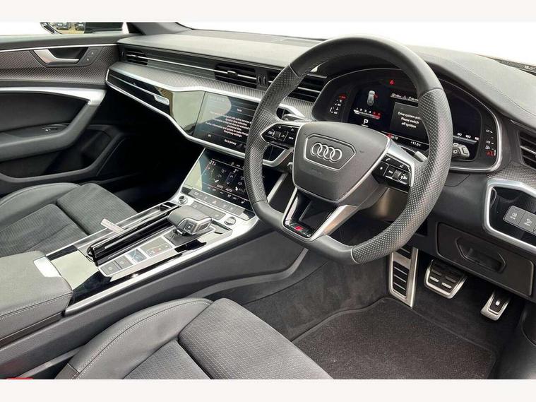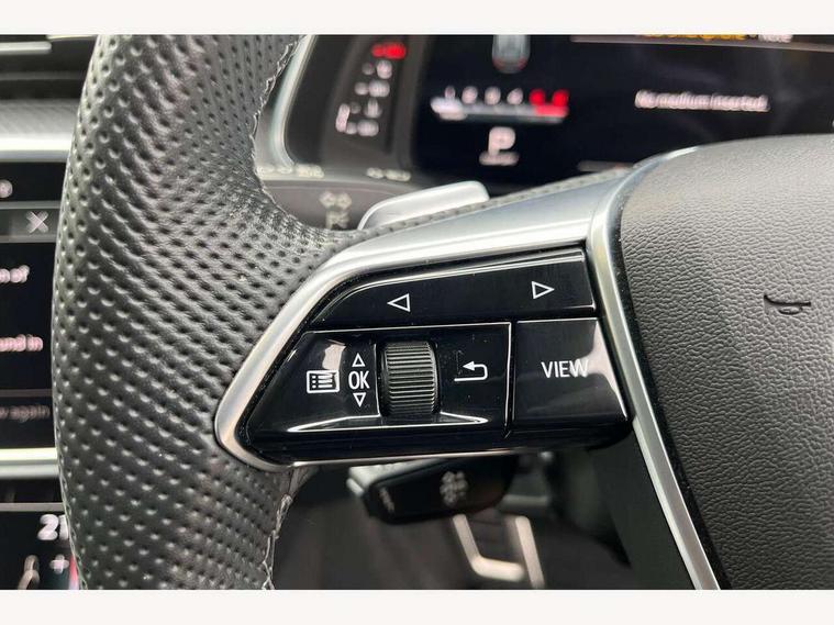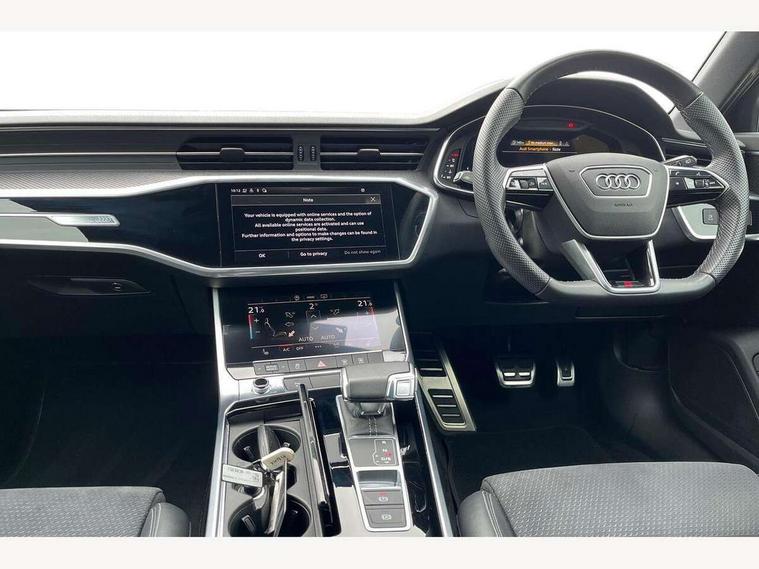 7" high resolution colour driver information display system, Audi connect safety and service (e-call), Audi drive select, Audi parking system plus - acoustic and visual park assist system for front and rear, Audi smartphone interface, Automatic start/stop system with coasting functionality, Bluetooth interface, Lane departure warning system, MMI navigation with MMI touch + twin touch screens 8.8" and 8.6" with haptic and acoustic feedback, Power operated tailgate, Progressive steering, Rear view camera, Service interval indicator, Voice control system, 12V Mild hybrid, 24 litre AdBlue tank, Diesel particulate filter, Sports suspension, Audi music interface, Audi sound system, Auxiliary input socket, DAB Digital radio, USB connection, Black roof rails, Electric front/rear windows, Frameless auto dimming interior rear view mirror, Gloss black exterior mirror housings, Gloss black highlights on the exterior area of the Audi Single frame, Gloss black highlights on the front and rear bumpers, Gloss black highlights on the radiator grille, Gloss black highlights on the side windows trim strips, Headlight washers, Heat insulating darkened glass in side and rear windows, Heat insulating glass in windshield, LED rear lights, LED signature front daytime running light, Matrix LED headlights with dynamic rear indicators, Matt black rear diffuser with diffuser strip and tailpipes in chrome, Matt black side air intake grille with inlay in matt aluminium, Privacy glass, Rain and light sensors, Rear roof spoiler, Signature rear LED light design, 2 zone deluxe electronic climate control, 4 way electric lumbar support for driver and front passenger, 40/20/40 split folding 3 rear seat bench in 3 parts with rear centre armrest, Black cloth headlining, Electrically adjustable front seats with driver memory, Front centre armrest, Front head restraints, Front/rear floor mats, Heated front seats, Height/reach adjust steering wheel, Illuminated door sill trims with S logo, Illuminated sun visors with vanity mirrors, ISOFIX child seat mounting and Top Tether with front passenger airbag deactivation, Leather gear knob, Luggage compartment system, Rear headrests, Stainless steel pedals and foot rest, Tool kit and car jack, LED Interior Ambient Lighting Pack - A6, Non smoking pack - A6, 3 point seatbelts on all seats, Airbags - Front side, front and rear including head, Audi pre-sense front, Black seatbelts, EBD - Electronic brakeforce distribution, Electromechanical parking brake, Electronic Stability Control (ESC) including ABS, ASR and EDL, Extended pedestrian protection measures, Seatbelt monitoring, Tyre pressure warning light, Warning triangle and first aid kit, Anti theft alarm with tow away protection, Anti-theft wheel bolts and wheel loosening detection, Immobiliser, Keyless Go, Remote central locking, Matt brushed aluminium dark inlays, 20" 5 V spoke star design Audi sport cast aluminium alloy wheels in matt titanium look,