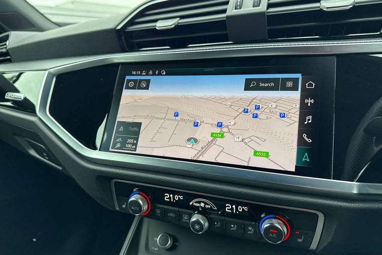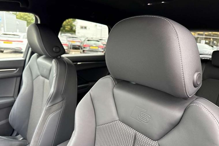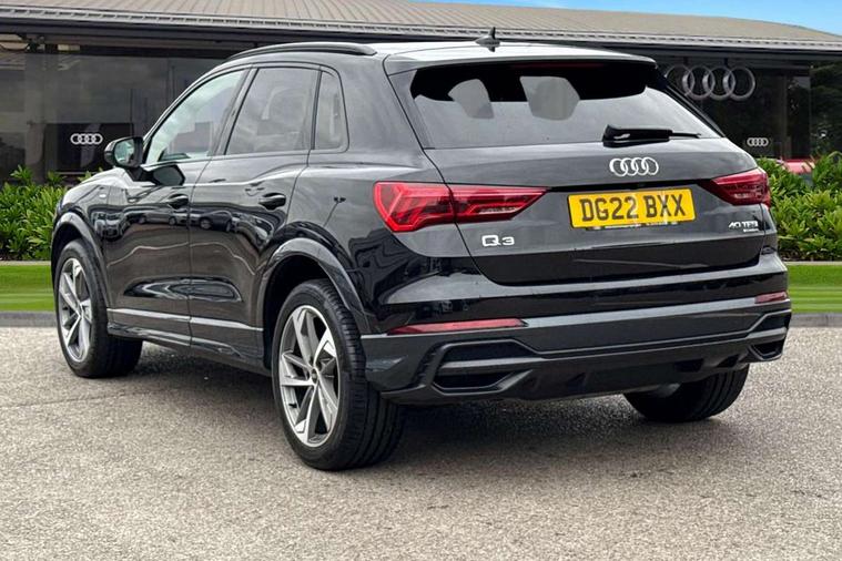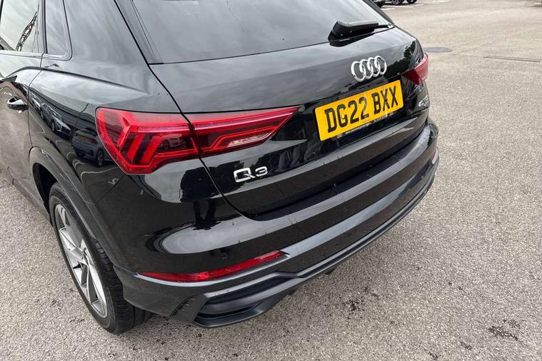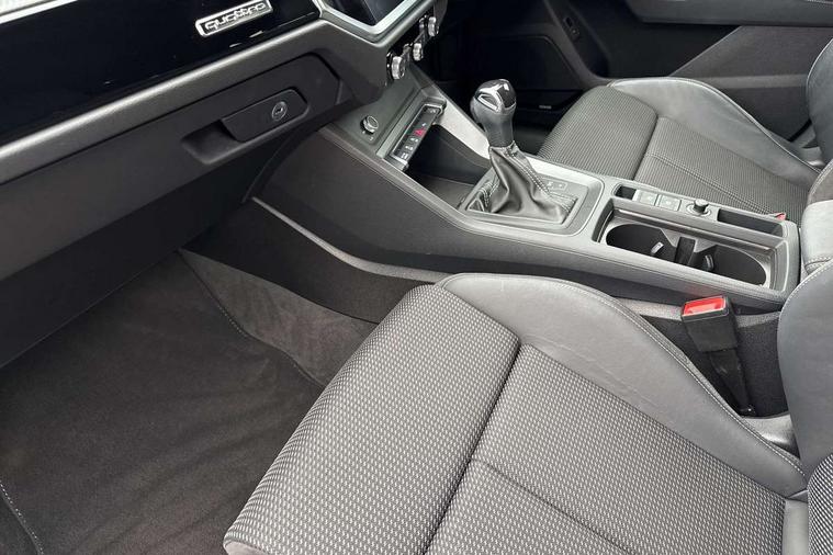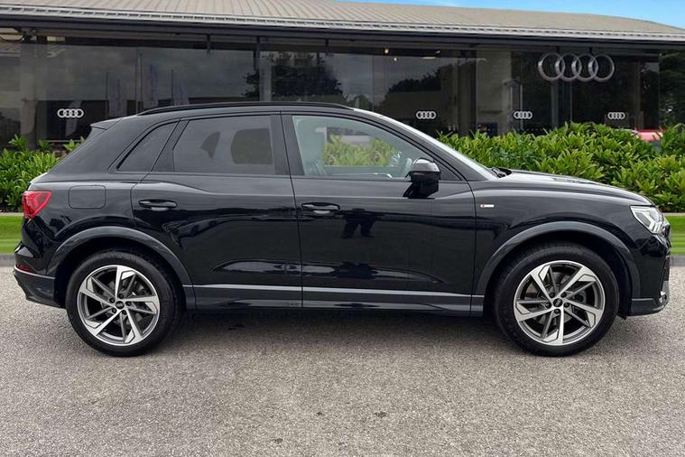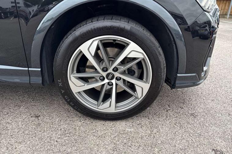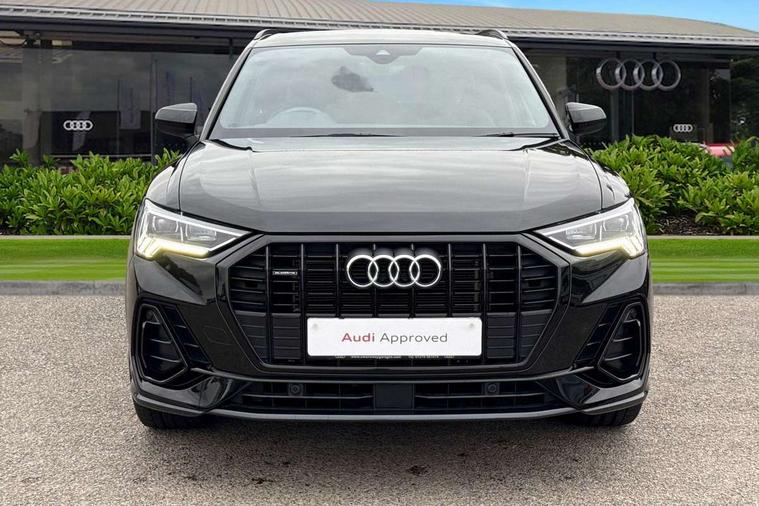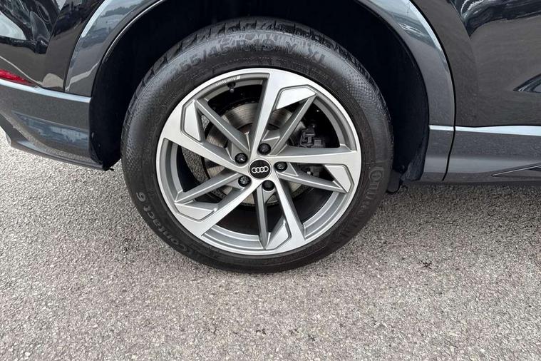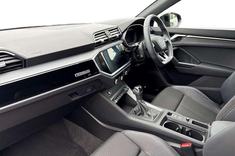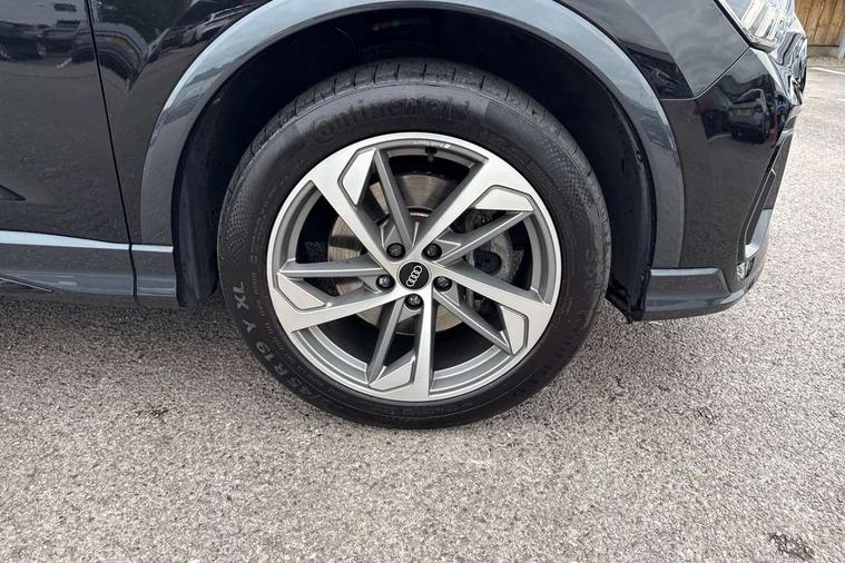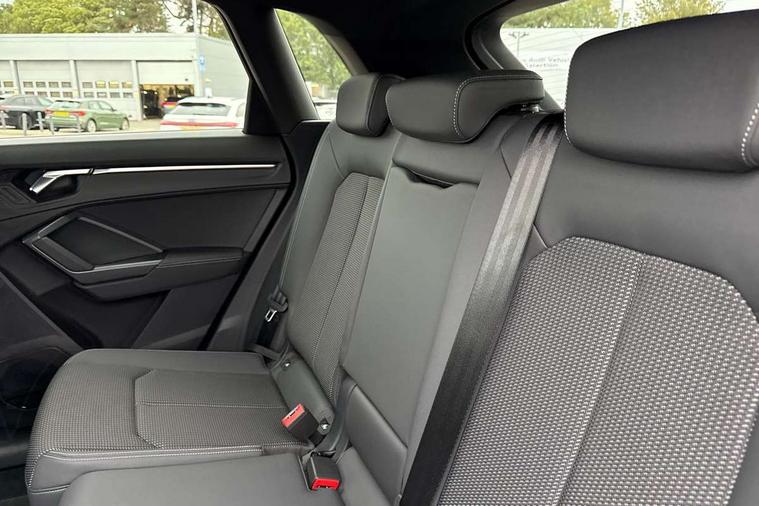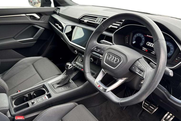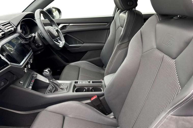 Amazon alexa Integration, Audi connect safety and service (e-call), Audi drive select, Audi lane departure warning, Audi Virtual Cockpit - 10.25" display, Bluetooth interface, Camera based traffic sign recognition, MMI Navigation Plus with high resolution 10.1 inch touchscreen colour display, Power operated tailgate, Progressive steering, Service interval indicator, Smartphone interface includes wireless Apple carplay/Android Auto, Start stop system with recuperation, Voice control system with natural language interaction, Sports suspension, 2 USB-C ports with charge and data functions, 6 passive loudspeakers, DAB digital radio module, Acoustic windscreen, Auto dimming frameless rear view mirror, Black roof rails, Electrically folding, adjustable and heated door mirrors with integrated LED side indicators and kerb view function for passenger side, Front and rear electric windows, Front fog lights, Grille vertical bars in aluminium silver/Matt, High gloss black finish B and C pillars, LED headlights with LED daytime running lights, LED rear lights, LED third brake light, Privacy glass dark tinted rear and rear-side windows (from B-pillar backwards), Rain and light sensors, Rear diffuser strip in matt titanium black, Rear side wing doors, Rear wiper, S line bumpers in contrasting Manhattan grey, Tinted rear windows, Variable front intermittent wipers, 12V socket in rear centre console, 3 seat bench in 2nd row, 40:20:40 folding with manual adjustment for 60:40 forwards/backwards position and backrest angle, Adjustable rear seat bench/backrest with centre armrest and cupholder, Black cloth headlining, Dual zone electronic climate control, Front and rear black floor mats with contrast stitching in rock grey, Front and rear headrests, Front and rear roof module including reading lights, Front centre armrest, Glove compartment lighting, Height and reach adjustable steering wheel, Illuminated door sill trims with S logo, ISOFIX child seat mounting for front passenger with airbag deactivation and outer rear seat including top tether attachment point for outer rear seats, Luggage compartment light, Manual front seats with height adjustment, Perforated leather gearknob, Single front passenger seat, Stainless steel luggage compartment sill finisher, Stainless steel pedals, Black styling pack - Q3, Non smoking pack - Q3, 3x3 point rear seatbelts, 6 airbags - Driver, front passenger, curtain and side windows, Audi pre-sense front with pedestrain and cyclist recognition, Electrically operated child locks on rear doors, Electromechanical parking brake, Electronic stabilisation control including ABS, ASR and EDL, Front seatbelt reminder, Hill descent control, Hill hold assist, Pre sense basic, Seatbelt monitoring, Tyre pressure warning, Warning triangle and first aid kit, Anti theft alarm, Anti theft wheel bolts, Immobiliser, Remote central locking, Detail dashboard around MMI touch colour display in glass look, black with surround in aluminium look, Leatherette door armrest, Piano black inlay,