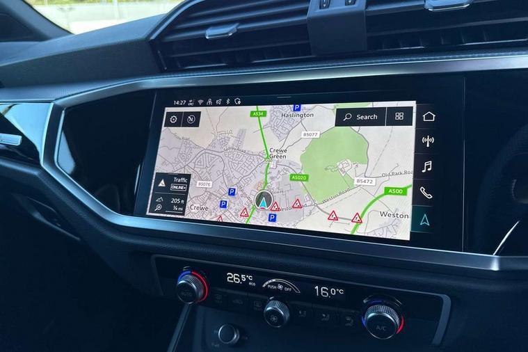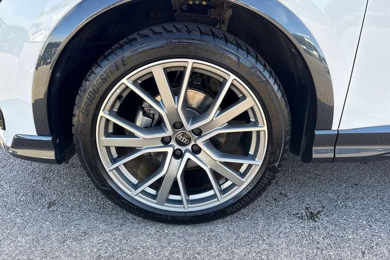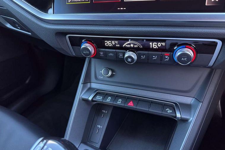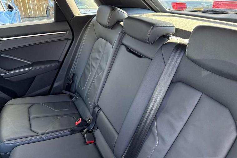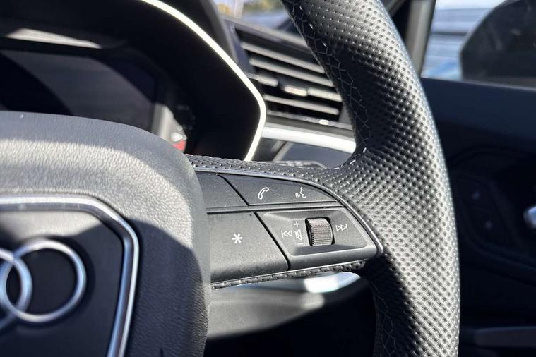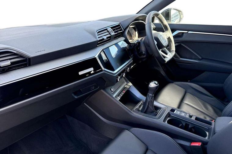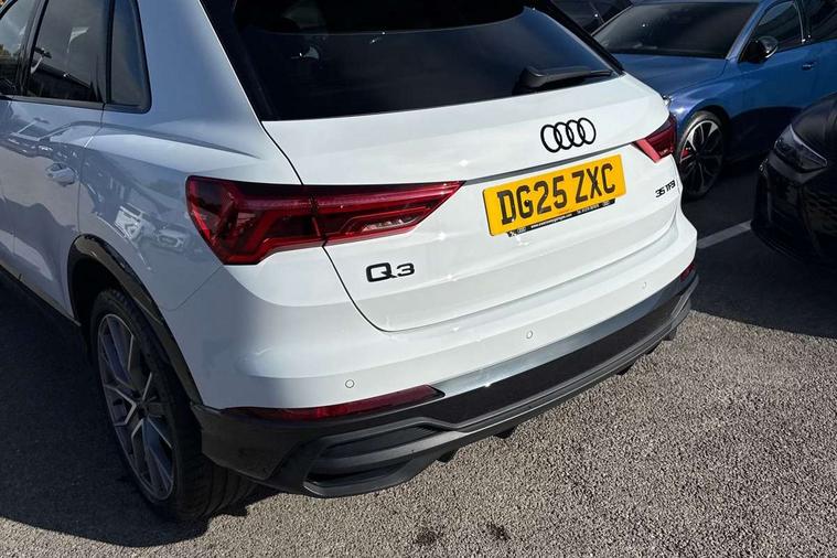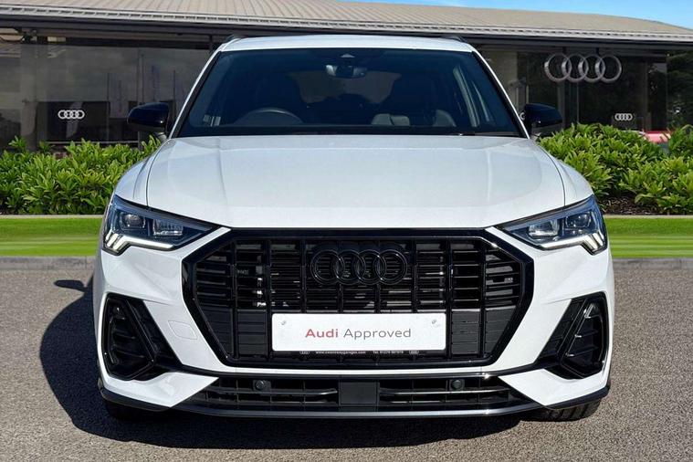 Amazon alexa Integration, Audi connect safety and service, Audi drive select, Audi lane departure warning, Audi Virtual Cockpit - 10.25" display, Bluetooth interface, Camera based traffic sign recognition, Cruise control + speed limiter, Distraction and Fatigue warning, Legal emergency call, MMI Navigation Plus with high resolution 10.1 inch touchscreen colour display, Power operated tailgate, Progressive steering, Rear parking sensors, Service interval indicator, Smartphone interface includes wireless Apple carplay/Android Auto, Start stop system with recuperation, Voice control system with natural language interaction, Sports suspension, 2 USB-C ports with charge and data functions, 6 passive loudspeakers, DAB digital radio module, Acoustic windscreen, Audi Beam uses LEDs to project the Audi logo onto the ground as you exit your Q3, Auto dimming door mirrors, Auto dimming frameless rear view mirror, Black roof rails, Electrically folding, adjustable and heated door mirrors with integrated LED side indicators and kerb view function for passenger side, Front and rear electric windows, Front fog lights, Grille vertical bars in aluminium silver/Matt, High gloss black finish B and C pillars, LED Dynamic rear indicators, LED headlights with LED daytime running lights, LED rear lights, LED third brake light, Privacy glass dark tinted rear and rear-side windows (from B-pillar backwards), Rain and light sensors, Rear diffuser grille in grained matt black, Rear diffuser strip in matt anthracite black, Rear side wing doors, Rear wiper, S line bumpers in contrasting Manhattan grey, Variable front intermittent wipers, 12V socket in rear centre console, 3 seat bench in 2nd row, 3 spoke flat bottomed multi-function leather sport steering wheel, 40:20:40 folding with manual adjustment for 60:40 forwards/backwards position and backrest angle, Adjustable rear seat bench/backrest with centre armrest and cupholder, Black cloth headlining, Dual zone electronic climate control, Electric lumbar support, Front and rear black floor mats with contrast stitching in rock grey, Front and rear headrests, Front centre armrest, Height and reach adjustable steering wheel, Illuminated door sill trims with S logo, ISOFIX child seat mounting for front passenger with airbag deactivation and outer rear seat including top tether attachment point for outer rear seats, Manual front seats with height adjustment, Perforated leather gearknob, Single front passenger seat, Stainless steel luggage compartment sill finisher, Stainless steel pedals, Twin leather upholstery with front sport seats + S embossing, Black styling pack - Q3, Non smoking pack - Q3, 3x3 point rear seatbelts, 6 airbags - Driver, front passenger, curtain and side windows, Audi pre-sense front with pedestrain and cyclist recognition, Electrically operated child locks on rear doors, Electromechanical parking brake, Electronic stabilisation control including ABS, ASR and EDL, Front seatbelt reminder, Hill descent control, Hill hold assist, Pre sense basic, Seatbelt monitoring, Tyre pressure warning, Warning triangle and first aid kit, Anti theft alarm, Anti theft wheel bolts, Immobiliser, Remote central locking, Aluminium look interior elements, Detail dashboard around MMI touch colour display in glass look, black with surround in aluminium look, Leatherette door armrest, Piano black inlay,