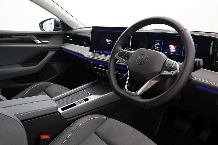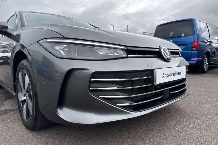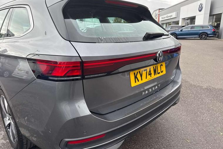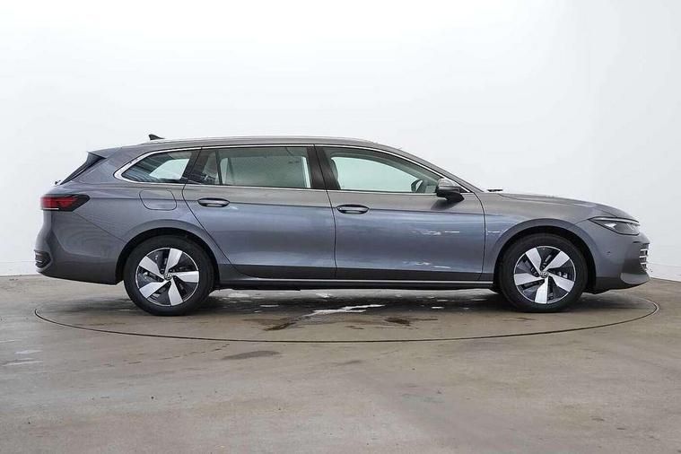 2 x Front USB-C ports, 2 x USB-C charging sockets on the centre console in the rear, charging capacity up to 45W, Adaptive cruise control, Advanced driver attention and drowsiness monitor, Chat GPT function for IDA voice assistant, Digital cockpit pro 10.25" high resolution, Discover media navigation system includes streaming and internet, Dynamic road sign display, E-Sim card for online connectivity, eCall emergency call service, Electronic engine sound, Full electric tailgate operation, Inductive smartphone charging without external antenna connection, Memory feature for park assist, Oncoming vehicle braking when turning including swerve support, Park assist with park distance control, Predictive speed limiter, Preparation for We connect and We connect plus, Wireless app connect, Battery 340 A (58 Ah), Charging cable mode 3 type 2, 16 A6 A, Front wheel drive, Petrol Particulate Filter, 8 Speakers, Auto dimming interior rear view mirror, Automatic headlights, Body colour bumpers, Body colour door handles, Heat insulating glass in side and rear windows, LED third brake light, Rain sensor, Rear side wing doors, Rear wiper, Welcome light with surround lighting, 3 seat bench in 2nd row, 3 zone air care climatronic with rear air conditioning control panel, Front + rear carpet mats, Front head restraints, Isofix child seat preparation, easy-fit (for two outer rear seats, and front passenger seat), compatible with I-size, Luggage compartment cover, power operated, Single front passenger seat, Standard pedal cluster, Sun visors with illuminated vanity mirrors for driver and front passenger, Sunblind for rear side windows, Three rear head restraints, Unsplit rear seat bench, split folding backrest, Infotainment package plus - Passat Estate, Park and comfort pack - Passat Estate, 3x3 point rear seat belts, ABS (Anti locking brake system) includes BAS (Brake assist) and EBD (Electronic brake pressure distribution), Autonomous emergency braking front assist with pedestrian and cyclist monitoring, Disc brakes in front, Driver/Front Passenger airbags, Drivers knee airbag, Electronic parking brake with auto hold, ESC (Electronic stability control) + EDL (Electronic Differential lock) and ASR (Traction control), EDTC (Engine drag torque control), Extended safety system with proactive passenger protection system, Front passenger airbag deactivation switch, Hill hold function, Tyre pressure loss indicator, Warning triangle and first aid kit, Alarm with interior protection, Electronic engine immobiliser, Keyless locking and starting system keyless access with safelock, Aluminium decorative inserts, Tool kit for tyre mobility set, Trims for alloy wheels, Tyre mobility kit including compressor and sealing foam,
