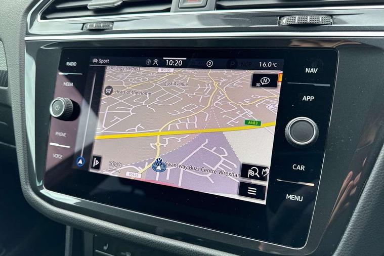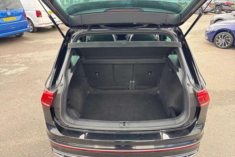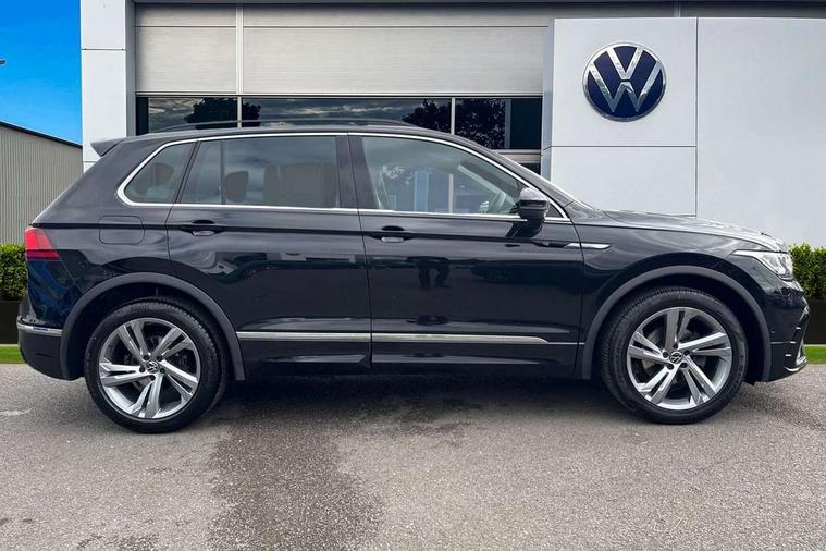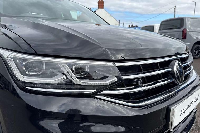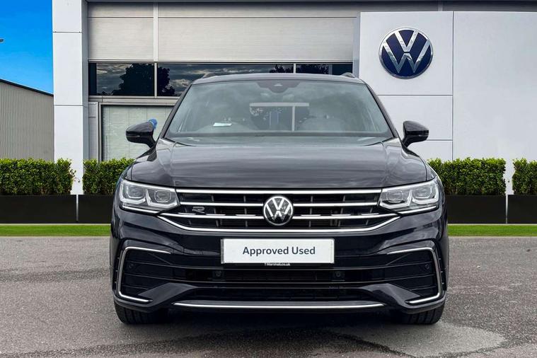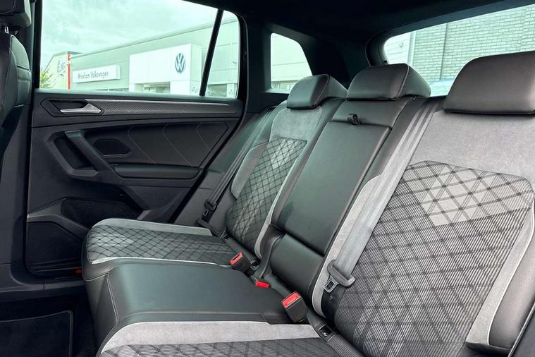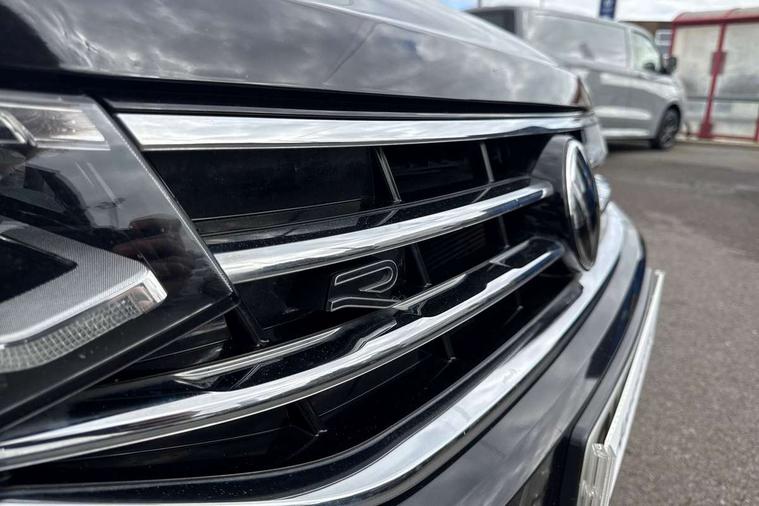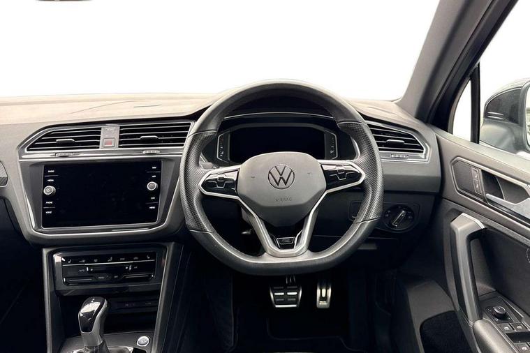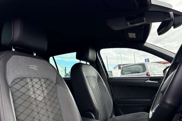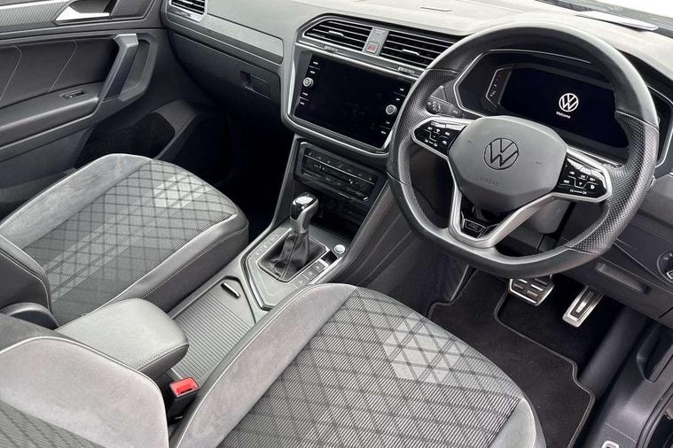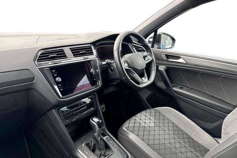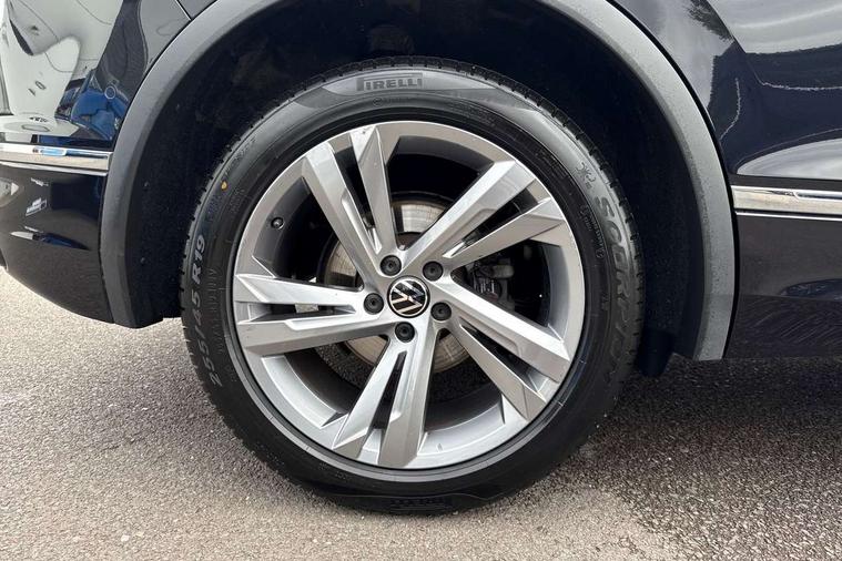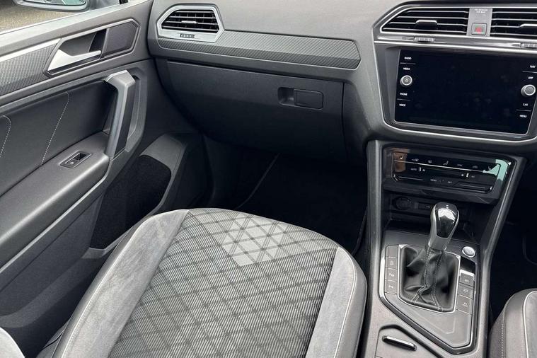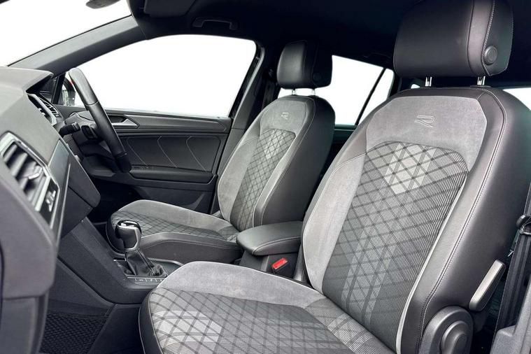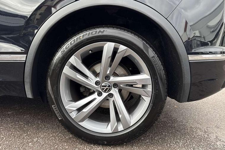 Adaptive cruise control ACC stop and go including speed limiter, App-Connect incl. App-Connect Wireless for Apple CarPlay and Android Auto, Bluetooth phone integration system, Comfort drive travel assist, Digital cockpit pro, Driver alert system, Driver profile selection, Dynamic road sign display, eCall emergency call system, Electromechanical speed sensitive power steering, Emergency assist, Front and rear parking distance sensors, Instrument cluster mph speedometer Great Britain, Lane keeping system Lane Assist, Lights on warning, Multifunction front facing camera, Outside temperature display, Premium multifunction display with multi colour display, Preparation for subsequent activation Navigation feature Discover Media includes Streaming and Internet, Remote control boot opening, Rev counter, Service interval indicator, Speed limit display, Start/stop system with regenerative braking, Tailgate/trunk lid unlocking from outside, Trip computer, Warning sound and light for doors and tailgate open, Battery regeneration during braking, Sports suspension, 8 Speakers, Digital radio reception DAB+, Diversity antenna for FM reception, Radio, Auto dimming interior rear view mirror, Automatic headlight control system, Body colored bumpers in R-Line style, Body colored exterior mirror housings, Body colour door handles, Chrome moldings on the side windows, Coming/leaving home lighting function, Dynamic headlight range control, Front and rear electric windows, Heated rear window, High level 3rd brake light, Laminated safety glass windshield, heat and sound insulating, LED headlamps with LED separate daytime running light and dynamic cornering light, LED rear combination lamps, LED rear number plate lights, License plate carrier in front and rear, Poor weather light and cornering light, Power adjustable, folding and heated door mirrors with surround lighting, front passenger exterior mirror lowering function, Privacy glass for rear side windows and rear window, R Line body kit, R Line side sills, Rain sensor, Rear exhaust tailpipe, Rear fog lamp, Rear side wing doors, Rear spoiler in R style, Rear windscreen washer and wiper with interval delay, Side and rear windows in heat insulating glass, Trailer Stability Programme, Unique R Line badging, Windscreen wipers/ intermittent wipe + 4 position delay, 12V outlet in center console rear and in luggage compartment, 12V outlet in front and tray, 2 LED front reading lights, 2 LED rear reading lights, 3 bench rear seats in 2nd row, 3 rear headrests, Air Care Climatronic 3 zone automatic climate control with enhanced air filter and controls in the rear, Art Velours greyson sports cloth upholstery, Backrest release for left front seat, Black headlining, Brushed stainless steel pedals and footrest, Carpet mats in front and rear with decorative stitching in Gray, Climate control unit rear with touch function, Door and side trim panel in foam film, insert in leatherette, Driver + front passenger lumbar support, Front footwell illumination, Front scuff plates in aluminum with R-Line logo, Front seats head restraints (x-adjustment), Height adjustable front seats, Height/reach adjust steering wheel, Isofix Preparation 2 Rear child seats, Leather gear knob, Rear bench seat asymetrically split folding, longitudinally movable and folding with load-through hatch and center armrest, Remote unlocking for rear seat backrest, Single front passenger seat, Sun visors with illuminated vanity mirrors, Top front comfort seats, Winter pack - Tiguan, 3 point seat belt for centre rear seats, 3 point seat belts with seat belt pretensioners for the outer rear seats, Curtain airbags for front and rear passengers, Driver/Front Passenger airbags, Drivers knee airbag, Electronic parking brake with auto hold, Electronic Stability Control with driver steering recommendation, ABS, ASR, EDL, EDTC and trailer stabilization, Front assist with autonomous emergency braking (for Adaptive Cruise Control ACC up to 130 mph), Front disc brakes, Front passenger airbag deactivation, Front side airbags, Height adjustable front 3 point seatbelts + pretensioners, Manual child proof rear door locks, Pedestrian monitoring system, Proactive passenger protection system in combination with front assist, Rear disc brakes, Two tone horn, Tyre pressure loss indicator, Warning sound and light for front seat belts if unfastened, Warning triangle, Anti theft alarm system with interior monitoring, backup horn and towing protection, Anti theft wheel bolts, Electronic engine immobiliser, Keyless locking and starting system keyless access with safelock, Chrome elements on the mirror switch power window switches and door pulls, Decorative inserts Carbon Gray for dashboard and front door trim panels, Interior door handle in matte chrome, 19" Valencia alloy wheels with AirStop tyres, Tool kit, Tyre mobility kit Includes 12V compressor and tyre sealant,