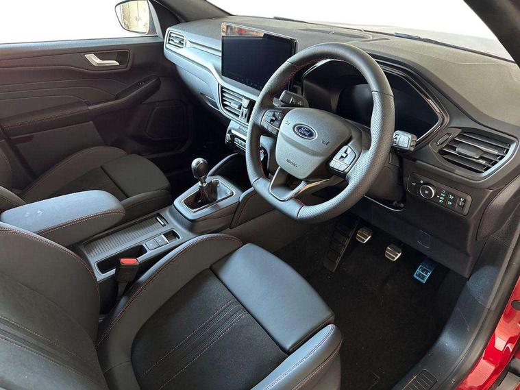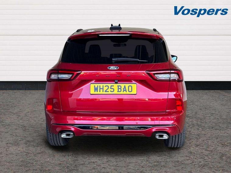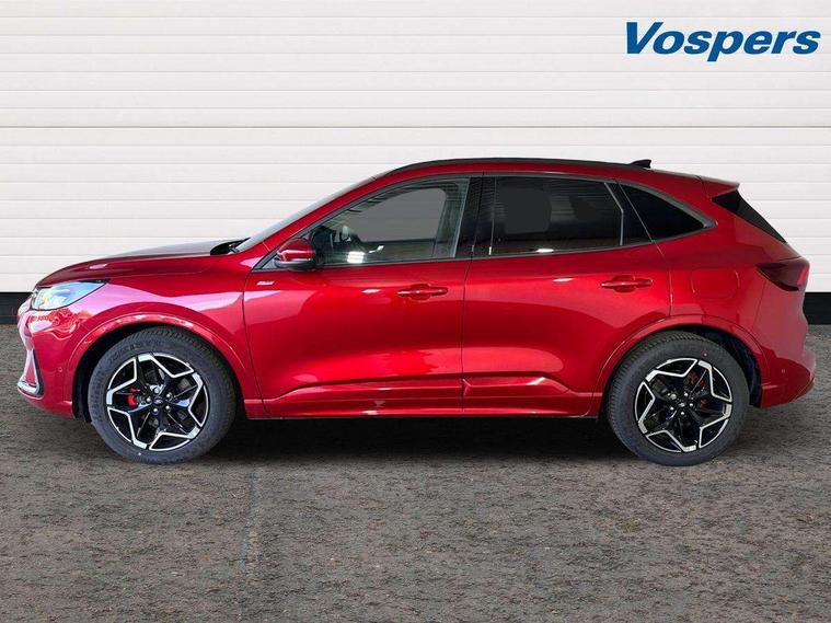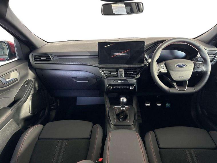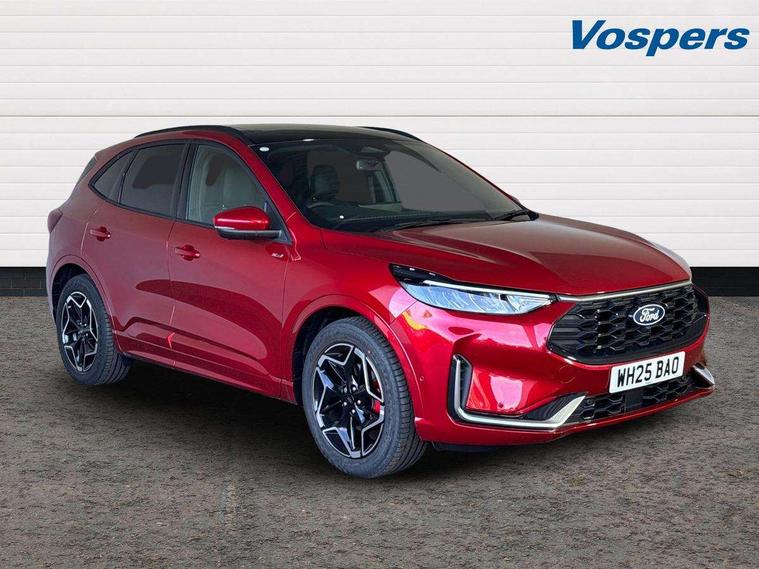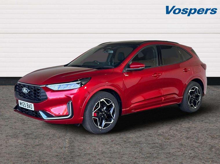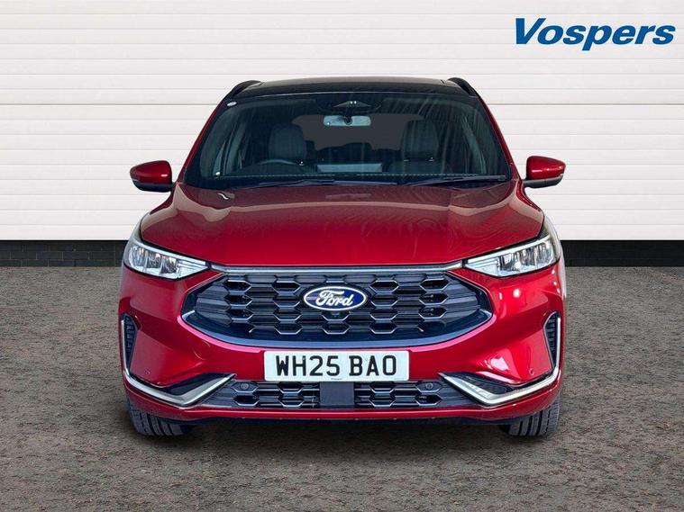 12.3" digital colour instrument cluster, 360 degree camera, e-Call (emergency call), Ford easy fuel, Ford SYNC 4 Navigation with 13" touchscreen, DAB radio, emergency assistance, Andriod Auto/Apple CarPlay, 5G modem & Ford Pass connect, Front and rear parking sensors, Hands free power tailgate, Lane keeping aid with lane departure warning, Power assist steering, Selectable drive modes, Service interval indicator, Sports suspension, Twist beam rear suspension, B&O premium audio system with 10 speakers, subwoofer and 2 USB ports, Auto headlamps with high and low beam, Black roof rails, Body colour bumpers, Front LED fog lamps, Large rear spoiler, LED daytime running lights, LED rear lights, Pop out door edge protectors, Power front/rear windows with global close, Power heated folding door mirrors with puddle lights, memory function and camera, Power opening panoramic roof, Quickclear heated windscreen, Rain sensing wipers, Rear privacy glass, Rear side wing doors, Rear wiper, ST-Line body styling kit, Third brake light, 12 way ergonomic power adjust driver's seat with memory (AGR certified), 12 way ergonomic power adjust passenger seat (AGR certified), 2nd row sliding seats, Electronic automatic temperature control (EATC), Front and rear head restraints, Partial premium touch sensico upholstery, Rear centre head restraint, Single front passenger seat, Sports seats, Driver assistance pack with intelligent adaptive cruise control - Kuga, Winter pack - Kuga, 3x3 point rear seatbelts, Airbags - front driver/passenger, front and rear curtain, Drivers knee airbag, Dynamic brake support, Electronic stability control (ESC) and ABS, Evasive steering assist, Ford MyKey Gen 2 safety system, Manual child proof rear door locks, Pre collision assist with autonomous emergency braking, Rear seat Occupancy alert, Red brake calipers, Tyre pressure monitoring system, Engine immobiliser, Keyless entry and Ford power start button (Keyless start), Locking wheel nuts, Remote powered central double locking doors, Thatcham category 1 alarm,