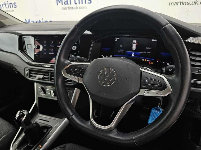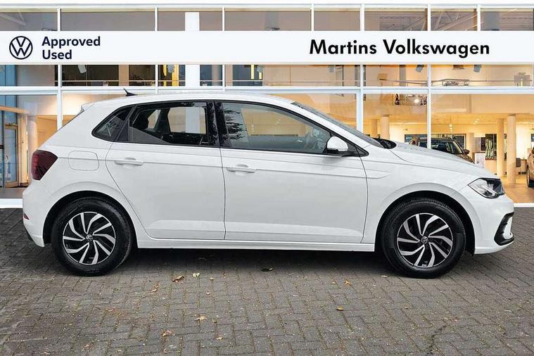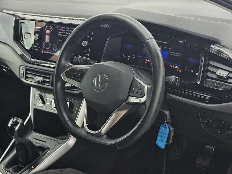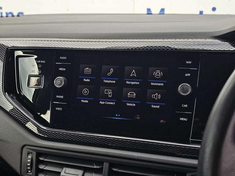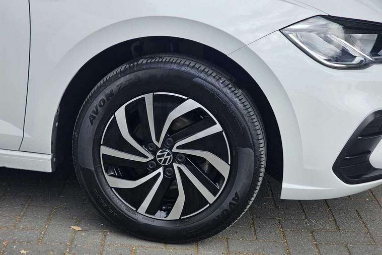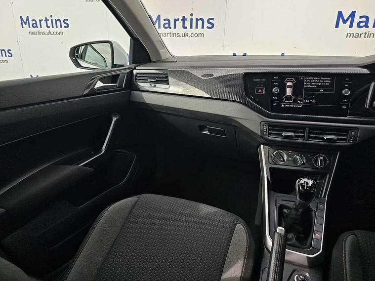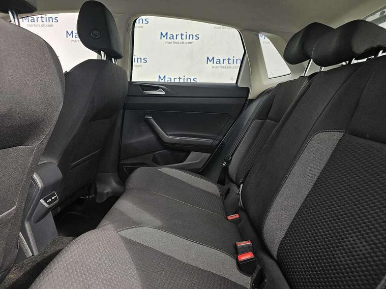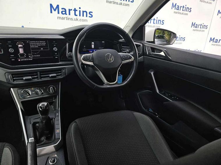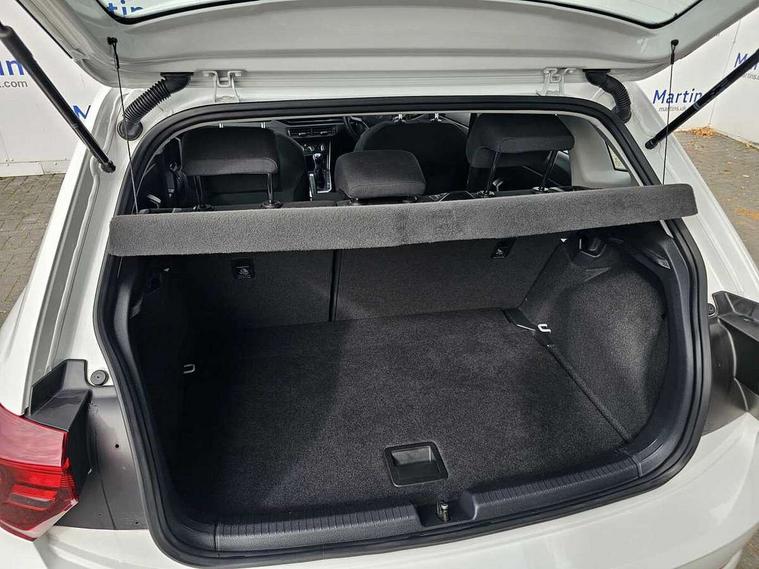 Adaptive cruise control without follow-to-stop and speed limiter, Bluetooth mobile phone interface, Driver alert system, Emergency call service, Front assist system, Power assisted speed sensitive steering, Preparation for We connect and We connect plus, Speedo and rev counter, electronic odometer, trip, service interval display and fuel gauge, Standard rear axle, Travel Assist - Lane keeping system and traffic jam assist, Travel assist including emergency assist, Trip computer, Warning signal and warning light for front and rear seatbelts not fastened, Washer fluid level indicator, Wireless app connect, Front wheel drive, Rear shock absorpion, Start-stop system with battery regeneration (recuperation - energy recovery during braking), DAB Digital radio, Diversity antenna for FM reception, Automatic dimming interior rear view mirror, Body colour bumpers, Body colour door handles, Body colour door mirrors, Electric front windows, Heat insulating darkened glass in side and rear windows, Heat insulating glass windscreen, Power folding adjustable/heated exterior mirrors and front passenger exterior mirror lowering function, Rain sensor, Rear electric windows, Rear fog light, Rear windscreen washer and wiper with interval delay, Third brake light, 12V power socket in centre console, 2 front and 2 rear reading lights, 2 USB-C ports in the front, 2 USB-C charging sockets on the center console in the rear, 3 rear head restraints, 60/40 split folding rear seat and rear seat bench not split, Ceramique headliner, Chrome plated radiator grille inserts, air vent surrounds and light switch surrounds, Door and side trim panel, Driver and front passenger seat height adjustment, Driver/passenger sunvisors with illuminated vanity mirrors, Front centre armrest, Front seat backrest storage pockets, Front standard seats, Handbrake lever handle in leather, Hartley/Thomas cloth upholstery, Isofix child seat preparation easy-fit (for two outer rear seats, and front passenger seat) compatible with I-size, Leather trimmed gear knob, Luggage compartment cover, Luggage compartment floor, Luggage compartment lighting, Multifunction steering wheel, Standard pedal cluster, Light and vision pack - Polo, 3 point height adj front seatbelts + pretensioners, 3x3 point rear seatbelts, ABS, Driver and front passenger airbag with front passenger airbag deactivation, Drivers and front passengers safety optimised head restraints, ESC (Electronic stability control) + EDL (Electronic Differntial lock) and ASR (Traction control), Extended and predictive pedestrian/ cyclist protection, Front curtain and side airbags with center airbag, Front disc brakes, Hill hold control, Rear drum brakes, Single tone horn, Tyre pressure loss indicator, Alarm with interior protection, Anti-theft alarm system with interior monitoring, backup horn, and towing protection, Anti-theft wheel bolts, Electronic engine immobiliser, Lava stone black gloss/matt decorative inserts in dash and front door panels, Low rolling resistance tyres,
