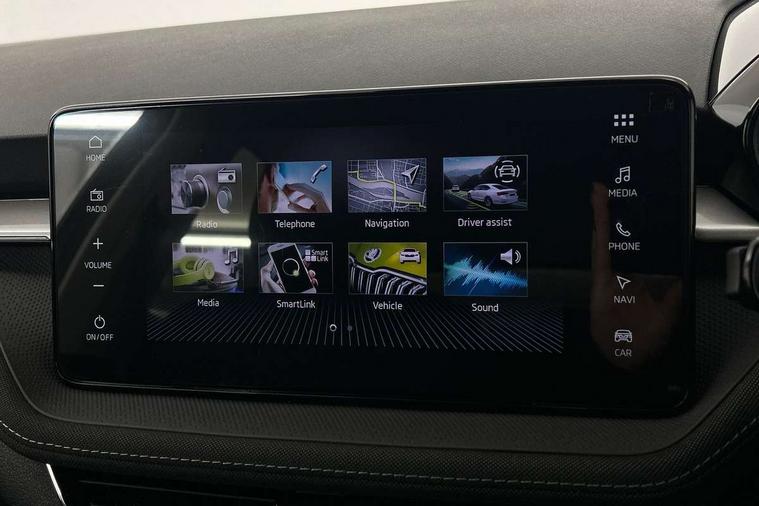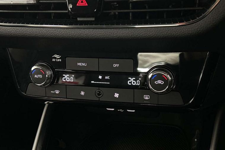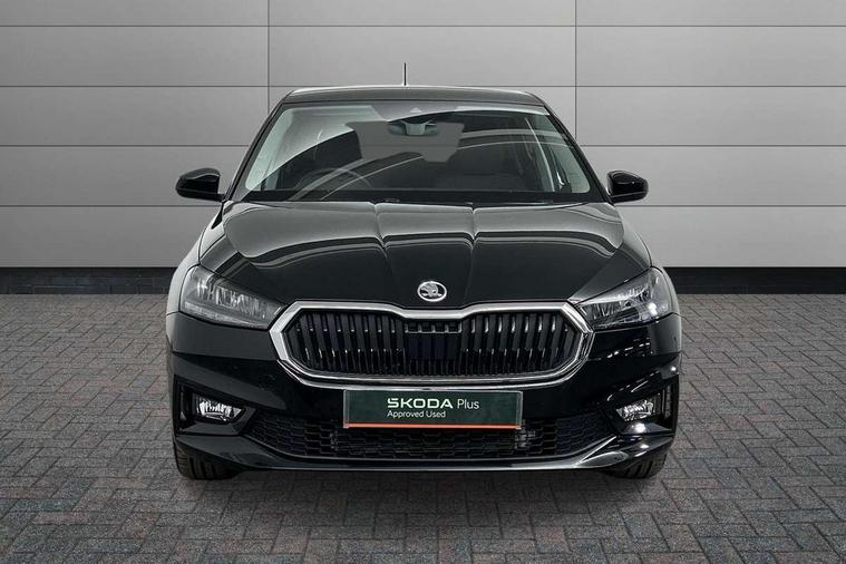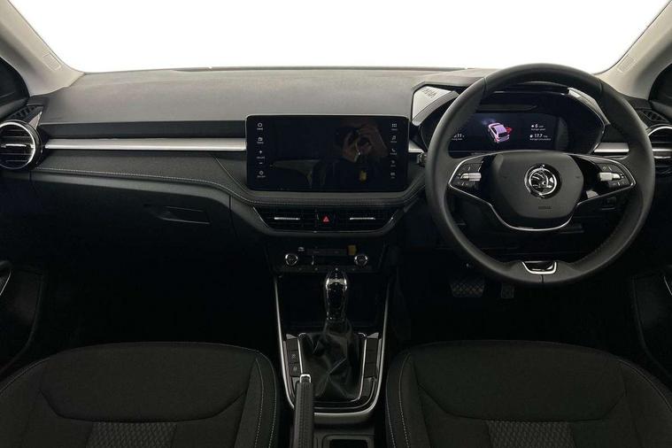 Advanced driver attention and drowsiness monitor, Bluetooth connection, Electromechanical power steering, Exterior temperature gauge, Service interval indicator, Traffic sign recognition, Virtual cockpit with 10.25" colour display, Wireless SmartLink for Apple CarPlay and Android Auto, 6 Speakers (4 in front and 2 in rear), 9.2" colour display skoda navigation system with voice control and web radio, Auxiliary socket for external MP3 player, DAB digital radio reception, Auto dimming rear view mirror, Body colour door mirrors, Body coloured bumpers, Chrome window surround, Door mirror integrated indicators, Front and rear electric windows, Front window wiper intermittent control, Headlight range control - Automatic, Ice scraper in fuel cap, LED daytime running lights with coming and leaving home feature, LED rear lights, Privacy glass, Rear LED fog light, Rear side wing doors, Rear window wiper with washing nozzles, Roof mounted spoiler, SKODA tailgate lettering in chrome, Third brake light, 2 reading lights in front and 2 reading lights in rear, 3 rear headrests, Backrest split and folding, Central console with removable cup holder and storage box, Chrome handbrake release button, Comfort seats, Door sills with fabia badging, Dual zone air conditioning with climatronic electronic control, Fabric upholstery, Front centre armrest, Gearshift knob/handle in leather, Hand brake lever handle in leather, Height adjustable front headrests, Height adjustable front seats, Height adjustable steering wheel, ISOFIX and TopTether anchorage points to the outer rear seats, ISOFIX and TopTether on the front passenger seat, Luggage compartment lighting, Manually adjustable lumbar support in front seats, Metallic grey interior door handles, Pollen filter, Rear seat bench unsplit, Single front passenger seat, Storm grey headlining, Sun visors with mirror and airbag label on passenger side, Textile floor mats, Ticket holder, Umbrella in drivers door, 3-point height adjustable front seats belts with pretensioner and force limiter, Automatic warning lights in case of crash, Driver and passengers airbag with switch off function, e-Call+, ESC including ABS, MSR, ASR, EDS, HBA and XDS, Front and rear seat belt warning, FRONT ASSIST (AEB City and AEB Inter Urban), Front side airbags, Head airbags, Hill hold control, One tone horn, Pedestrian protection, Three rear 3-points safety seat belts with pretensioner and force limiter including stop function for outer rear seat belts, Tyre pressure monitoring system, Anti-theft alarm system including immobiliser, interior monitoring, backup horn, and towing protection, Central locking with radio remote control, interior controls, SAFE function and 2 foldable keys, Chrome edged air vents, Metallic grey central console cover, Metallic grey upper decorative trim, Satin black door and side trim panel in front, Textile microsuede grey lower decorative trim with art grey stitching, Anti-theft wheel bolts protection, Super-low rolling resistance tyres,