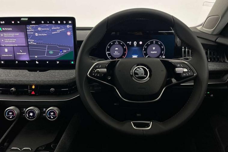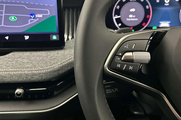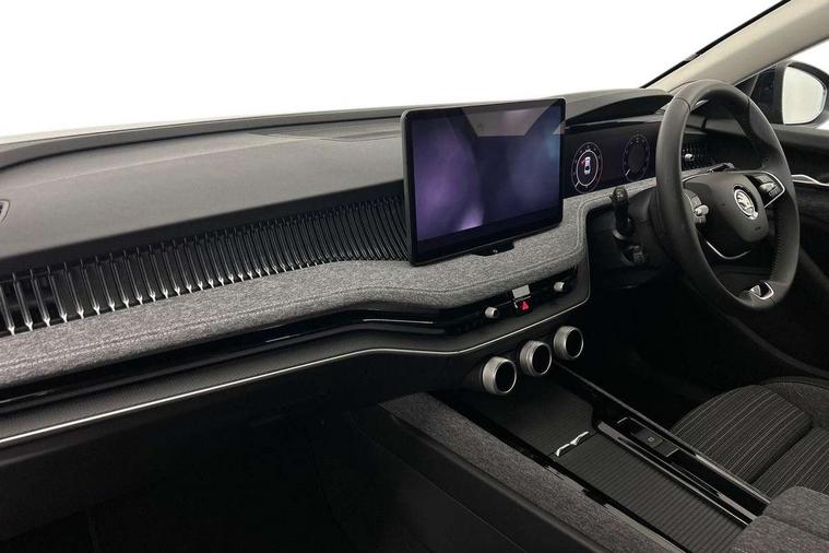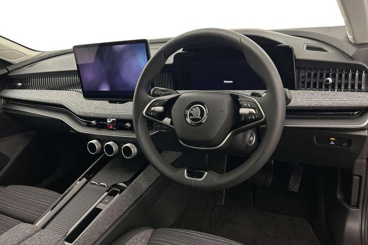 13" touchscreen display with satellite navigation, 4x USB-C ports (2x in front centre console and 2x in rear) (45W), Adaptive cruise control with speed assist, lane assist plus and traffic tram assist, Blind spot detection with door exit warning, Bluetooth system, CareConnect and Emergency Call, ChatGPT functionality, Driver fatigue sensor, Front assist with extended predictive pedestrian protection, Front cross traffic assist, PAS, Quick start all heating software functionality, Stop/start engine system, Traffic sign recognition, Turn assist with evasive assistance, Virtual Cockpit - 10.25" digital display, Voice control system, Washer for rear camera, Wireless charging for one smartphone (15W) with cooling function, Wireless smartlink apple carplay, SmartLink+ android auto, 8 Speakers, DAB Digital radio, Display cleaner, FM radio connection, Web radio connection, Acoustic side windows and interior noise suppression, Backdrop lighting, Body colour door handles, Body coloured door mirrors, Chrome window surround, Dark chrome grille surround, Electrically adjustable, heated, folding and driver side auto-dimming door mirrors with integrated indicators and logo projection, Frameless auto-dimming rear view mirror with USB-C, Ice scraper in fuel tank cap, LED 3rd brake light, Light assist with High beam control, Light assistant (coming/leaving home/tunnel light), Privacy glass, Rear fog light (x1), Rear side wing doors, Unique dark chrome design logo on alloy wheels, Windscreen wipers with rain sensor, 12V socket 1x centre console 1x boot, 2x cargo elements in boot, 2x light in boot, 3 seat bench in 2nd row, 60:40 Split folding rear seats, Bottle holders in the front doors 1.5 litre bottle and rear 1.5 litre bottle, Cup holder in front with easy open mat, Front armrest with storage box, Front comfort seats, Heated front seats, Height adjustable driver and front passenger seats with 2-way electric tilt, 4-way pneumatic lumbar support, and extendable thigh support, Height adjustable front and rear head restraints, Height adjustable front passenger seat, Illuminated glovebox, Interior lights with control switches, Isofix child seat fittings in outer rear and front passenger seats, LED front and rear reading lights, Massage function for front seats, Single front passenger seat, Skoda lettering on steering wheel, Storage compartment with cover, Storage pockets on back of front seats, Sun visors with illuminated vanity mirrors, Ticket holder on A Pillar, Tri zone climate control, Umbrella in driver's door, 3 rear seatbelts, 8 Airbags - Front driver and passenger, front side driver and passenger, centre, curtain front and rear, drivers knee, Crew protect assist, Driver and passenger seatbelts with warning light, Electronic parking brake, ESC including ABS, EBV, MSR, ASR, EDS, HBA, DSR, RBS, CBC, multi-collision brake (MKB) and Auto hold, Hill hold assist, Power operated child lock in rear doors, Alarm with interior monitoring tilt sensor and back up horn, Backrest remote release from trunk, Electronic engine immobiliser, Keyless start/stop, Remote central locking with SAFE system, Third key, Decorative front door sills,