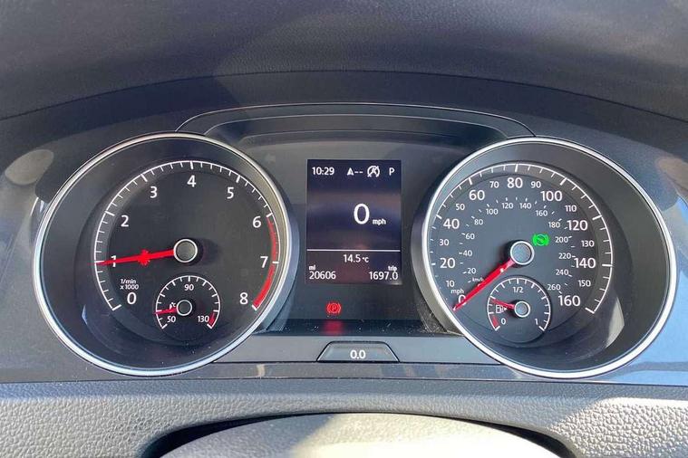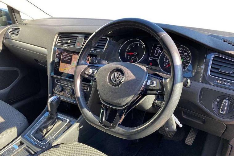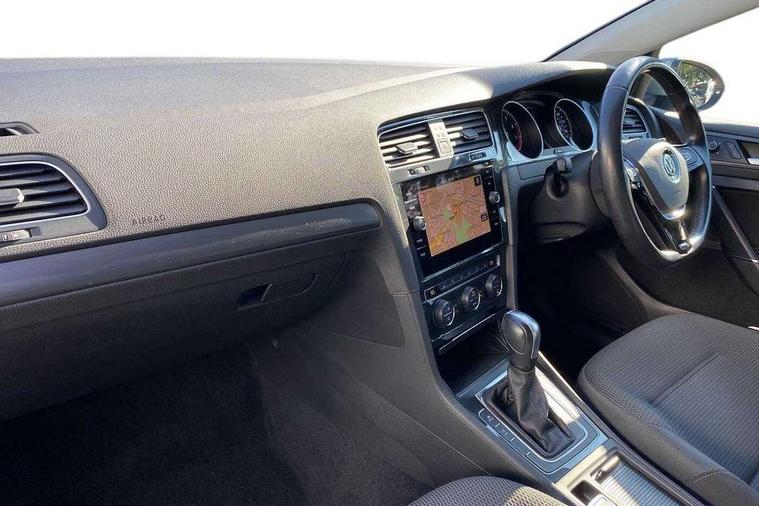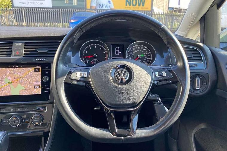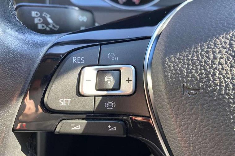 'Lights On' Reminder warning buzzer, ACC - Adaptive cruise control with front assist, forward collision warning, distance monitoring, city emergency brake and speed limiter, Bluetooth telephone and audio connection for compatible devices, Brake pad wear indicator warning light, Driver alert system, Driving Mode Selection with four preset modes - Eco, normal, sport or individual modes, Multifunction computer with visual gear change recommendation for fuel consumption, Power assisted speed sensitive electro-mechanical steering, Push tank flap, Speed limit display, Speedo, rev counter, electronic odometer, trip, service interval display, exterior temperature and fuel gauge, Stop/start system, Think blue trainer driver tips and journey analysis, Warning buzzer and light for front seatbelts unfastened, Battery regeneration during braking, XDS electronic differential lock, Composition media system, DAB Digital radio receiver, Driver Personalisation profile selection, MP3/WMA compatability, Multi device interface (MDI) via USB connection, Premium USB cable in choice of either Apple or Android smartphone compatibility, SMS Functionality, Title and cover art display, USB and SD card connectivity, Volkswagen media control, Black front air intake and radiator grille with chrome insert, Black rear diffuser, Body colour bumpers, Body colour door handles, Body colour door mirrors with integrated indicators, Dusk sensor + automatic driving lights, Electric front windows, Electric rear windows, Electrically adjustable and heated door mirrors, Fully galvanised body, Heated rear windscreen, High level 3rd brake light incorporating LED Technology, LED front fog lights with static cornering light function, Range adjustable headlights via infotainment system with LED daytime running lights, Rear fog lamp, Rear number plate lights incorporating LED technology, Rear tinted glass 65% light absorbing from B pillar backwards, Rear window aerial, Rear window wash/wipe with intermittent wipe, Reflectors in all doors, Tailgate with integrated rear roof spoiler, Windscreen wipers/ intermittent wipe + 4 position delay, 12V socket in luggage compartment, 3 rear headrests, 4 load lashing points in luggage compartment, 60/40 split folding rear seat backrest, Bag hook in luggage compartment x 2, Climate control - 2 zone electronic air conditioning with automatic air recirculation and allergy filter, Cooled glovebox, Cover for storage compartment in centre, Dust/pollen filter, Front and rear reading lights X 2, Front centre armrest with storage compartment and two rear air vents, Front seat back storage pockets, Grab handles front x 2, rear x 2 with integrated coat hooks, Height and reach adjustable steering wheel, Illuminated vanity mirrors, Instrument lighting white adjustable panel illumination, Interior light delay, Isofix preparation for 2 rear child seats, Load through provision with rear centre armrest and cupholders x2, Luggage compartment lighting, Overhead storage box, Pearl grey headlining, Storage box in luggage compartment, Storage compartment in roof console with cover, Storage compartments in centre console, Storage compartments in front doors, Storage compartments in rear doors, Stowable luggage compartment cover, Sun visors, Variable boot floor, height adjustable and removable, Convenience Pack - Golf, Mirror pack - Golf, Winter pack - Golf, 3 rear three point seatbelts, Airbags - Driver's and front passenger's, curtain airbag, Driver's knee, front side impact and passenger's airbag deactivation switch, Anti-lock Braking System (ABS) with Hydraulic Brake Assist (HBA), Automatic post collision braking system, Child locks on rear doors, Driver/Passenger optimised head restraints, Electronic parking brake with auto hold, Electronic stability control (ESC) including Electronic differential lock (EDL) and ASR (Traction control) with deactivation via infotainment system, Front ventilated disc brakes and rear disc brakes, Pre crash preventive occupant protection, Three point height adjustable front seatbelts with tensioners, Tyre pressure loss indicator, Alarm with interior protection and deactivation via infotainment system, Electronic engine immobiliser, Brushed dark silver decorative inserts in dash and door panels, Chrome plated air vent surround, Chrome-plated light switch surround, Polar night black decorative inserts in centre console, Steel space saver spare wheel,