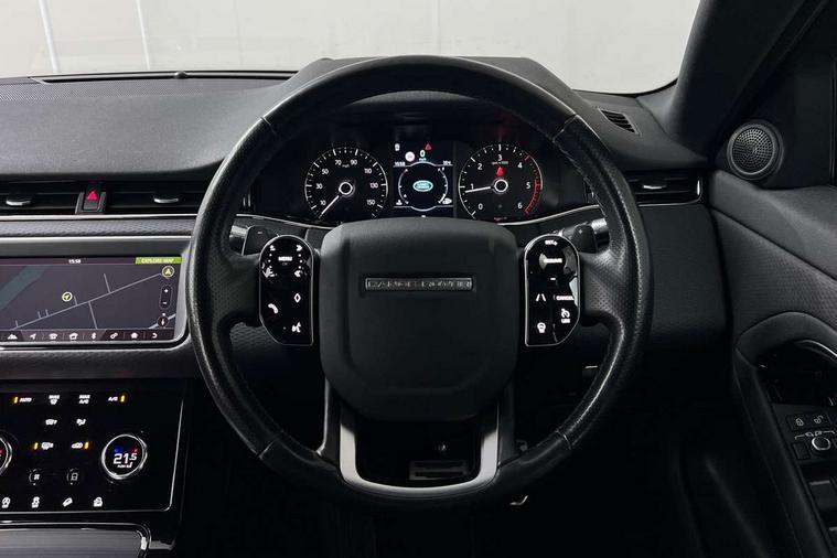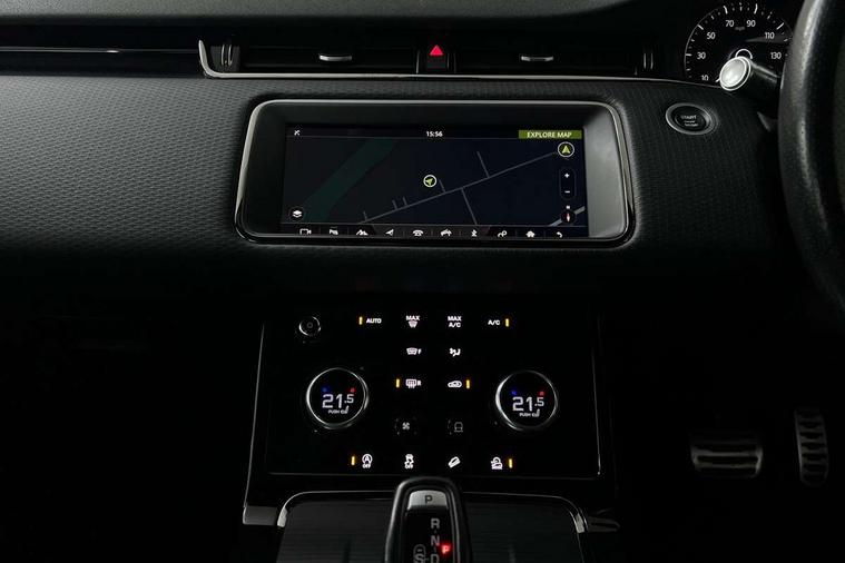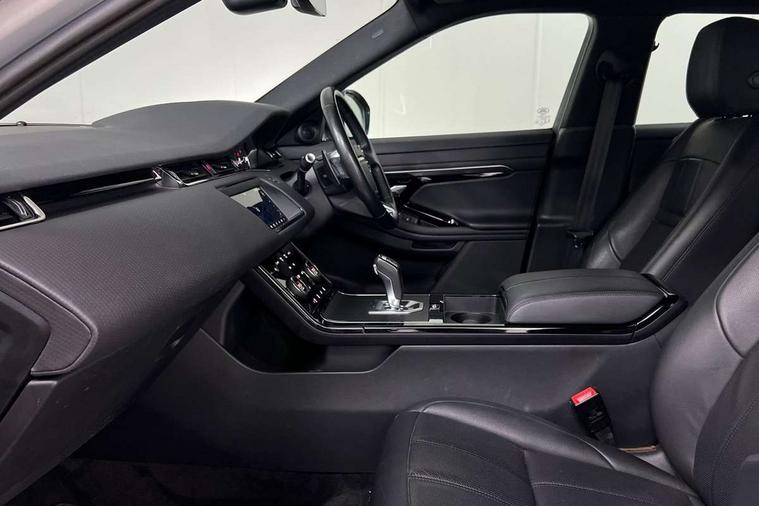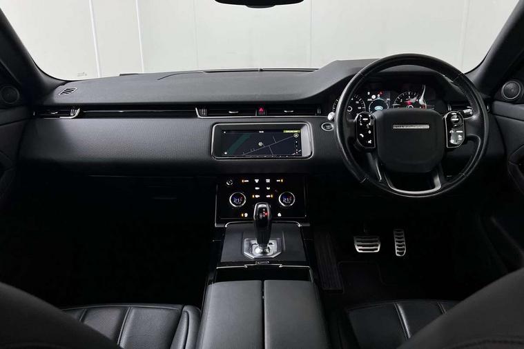 Android Auto, Apple car play, Bluetooth connectivity, Brake pad wear indicator warning light, Driver condition monitor, Electronic power assisted steering (EPAS), InControl remote, Land Rover InControl apps, Lane keep assist, Navigation pro system, Pro services and wifi hotspot, Push button starter, Smart settings, Traffic sign recognition with adaptive speed limiter, Voice control system, All terrain progress control, Efficient Driveline, Passive suspension, Terrain Response 2 Auto, Digital Audio Broadcast radio-DAB, Steering wheel mounted controls, Electric windows with one touch open/close and anti trap, Evoque and R-Dynamic badge, Flush deployable exterior door handles, Heated rear window with timer, Heated washer jets, Heated windscreen, Rain sensing windscreen wipers, Rear fog lights, Shadow atlas bonnet and tailgate script, Tailgate spoiler, 40:20:40 split folding rear seats, Black gearshift paddles, Bright metal pedals, Isofix system on outer rear seats, Overhead lighting console, Overhead stowage for sunglasses, Passive front head restraints, Rear air vents, Rear centre headrest, Sunvisors with illuminated vanity mirrors, Twin front cupholders with cover, Twin sliding front centre armrest, Two zone climate control, Anti-lock braking system (ABS), Customer configurable autolock, DSC - Dynamic Stability Control, Electronic brake force distribution, Electronic parking brake, Electronic traction control, Front and rear seatbelt reminder, Hill descent control, Hill launch assist, Low traction launch, Power operated child locks, Roll stability control, Six airbags - Driver and passenger airbags/driver knee airbag/front side airbag and curtain airbags, Torque vectoring brake, Tyre pressure monitoring system, Alarm, Immobiliser, Intrusion sensor, Locking wheel nuts,