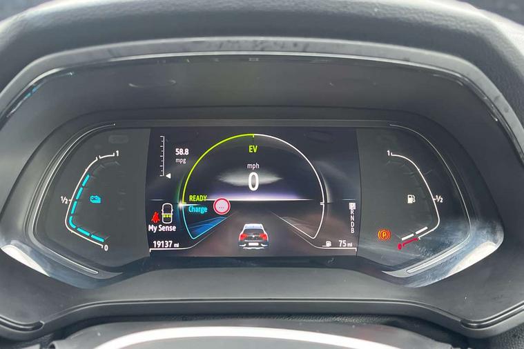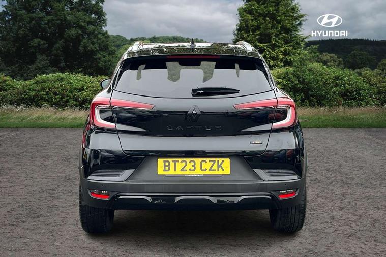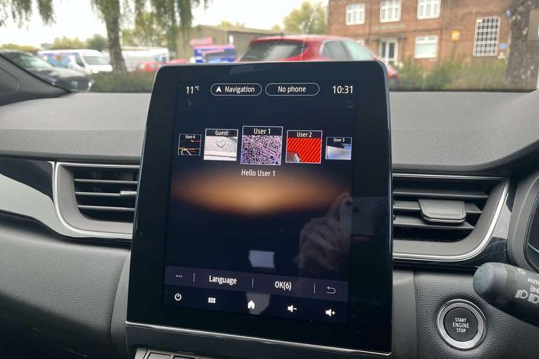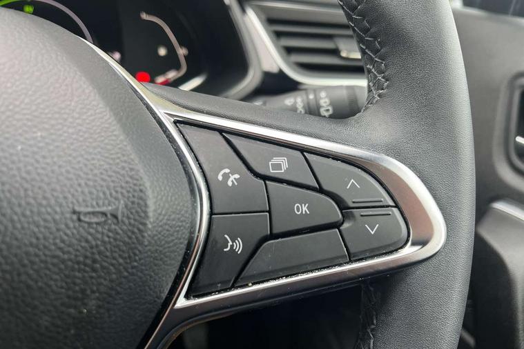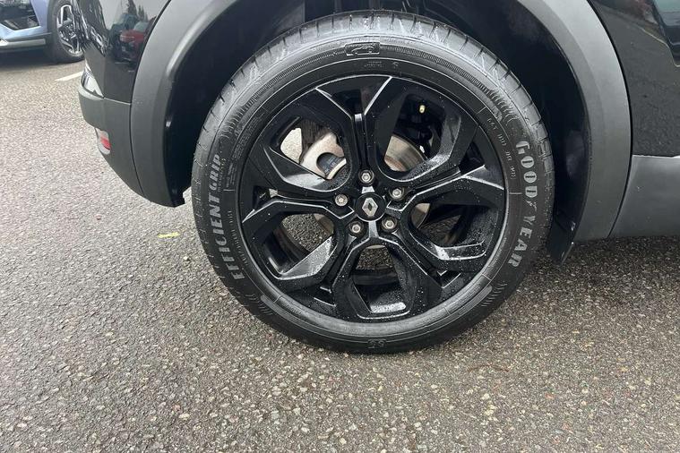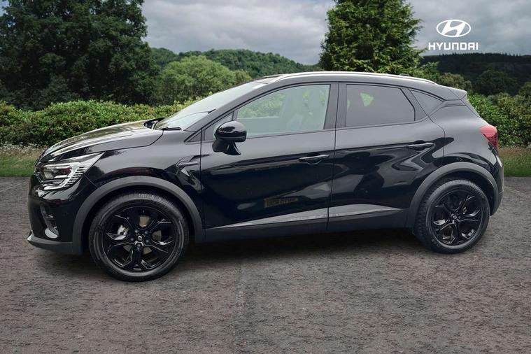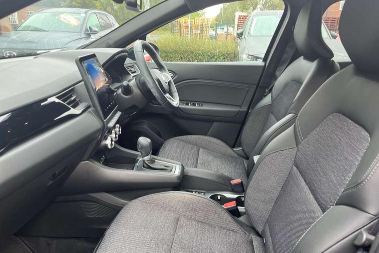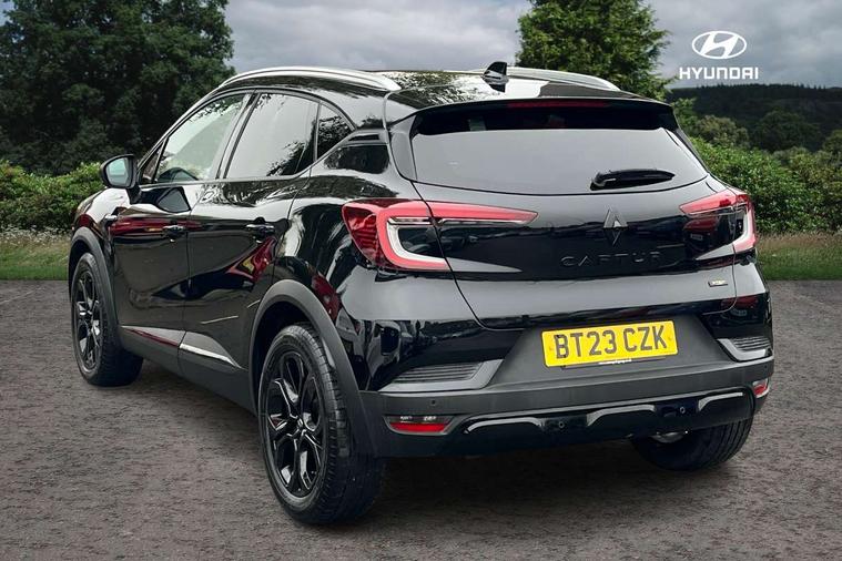 7" TFT Driver information display, Cruise control + speed limiter, EasyLink 9.3" portrait touchscreen with navigation, google search and traffic information, Eco mode, EV button to activate pure mode, Front and rear parking distance sensors, Gear change indicator, Lane departure warning system, Lane keep assist, Multisense with 3 driving modes + 8 ambient lighting colours, Rear view camera, Renault automatic emergency assist, Smartphone integration compatible with Apple CarPlay and Android Auto, Traffic sign recognition with over speed prevention, Trip computer, Variable assistance power steering, DAB Radio with Bluetooth and USB, 2 reverse gear LED lamps and 1 rear LED fog lamp in the bumper, Auto dimming rear view mirror, Automatic front wipers with rain sensors, Automatic headlights, Automatic high/low beam, Black 'Renault' logo at the front and rear with black 'CAPTUR' naming on tailgate, Body colour door handles, Body coloured bumpers, Body coloured door mirrors, C Shaped LED front and rear lighting signatures with 3D effect on the rear lights, Day time running light, Drivers one touch window with anti-pinch feature, Extra tinted glass in rear windows and tailgate, Front and rear electric windows, Front fenders decopart with shinny black insert, Front grille with shiny black upper trim, Full LED headlights with LED rear lights, Gloss black front air intakes surrounds, Gloss black lower door protection, LED high level brake lights, LED rear fog lights, LED turn indicators on door mirrors, Longitudinal roof bars, Rear side wing doors, Rear wiper, Shark fin antenna, Shiny black front and rear skid plate, 12V Accessory socket, 60/40 split and fixed base rear seat bench, Automatic climate control with one touch demist function and air quality regulator, Central rear LED rooflight with 3 reading lights, Dark grey interior roof lining, Front head restraints, Glovebox, Heating system with pollen filter, Height adjustable driver's seat, Height adjustable passenger seat, Height/reach adjust steering wheel, ISOFIX child seat fixing points on rear outermost seats, LED front roof lights, Middle console with armrest and storage, Modular boot floor, Rear air vents, Rear head restraints, Red insert on air vent, Single front passenger seat, Sliding rear bench, Synthetic leather steering wheel, Synthetic leather/cloth upholstery, 3 rear seatbelts, ABS+EBA, AEBS - active emergency braking system, B Brake Mode - One pedal driving with increased regenerative braking, Distance warning alert, Driver and front passenger and 3 rear passengers seatbelt reminder, Driver and front passenger, side, head and curtain airbags, Driver height adjustable seat belt, Electric parking brake with auto hold function, Electronic stability control, Front dash warning indicator in case of heavy braking, Front driver and passenger side airbag deactivation, Hill start assist, Passenger airbag deactivation system, Rear door and window child locking function for rear door, Tyre pressure warning light, Anti drill door locks and locking fuel cap, Central door locking, Deadlocking system, Hands free keycard with push button and start/stop function, RAID (Renault Anti-Intruder Device) automatic door locking, Black soft touch dashboard, Glossy black insert on dashboard, 18" Shiny black pasadena diamond cut alloy wheels,